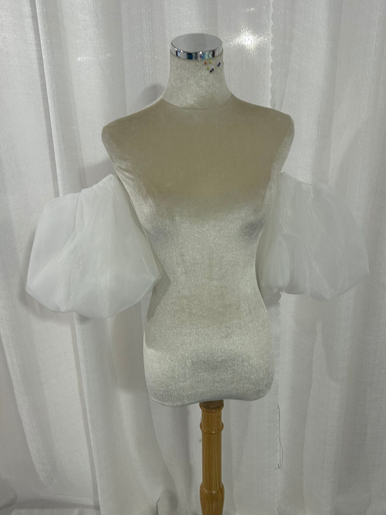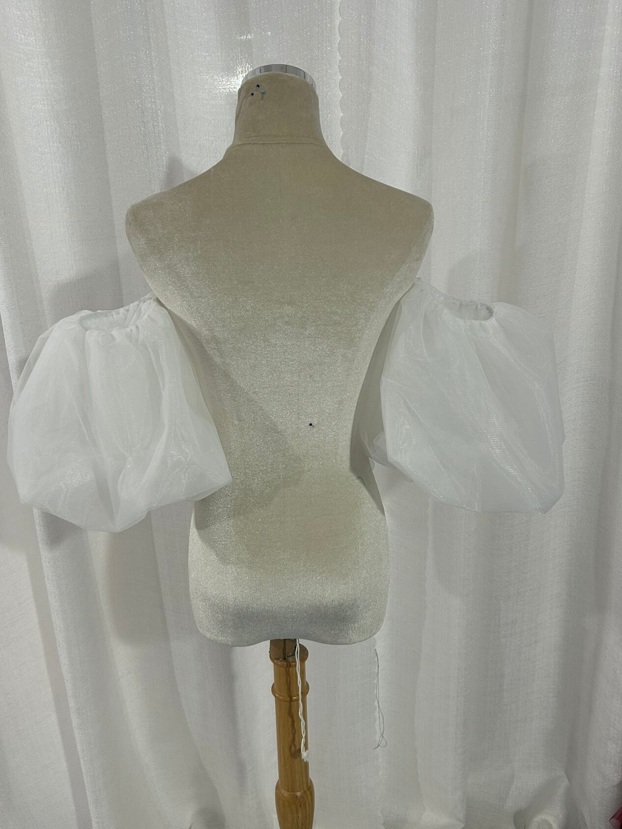 パフスリーブ オーガンジー ソフトチュール ストレッチ オフホワイト 色直し 花嫁/ウェディングドレス 前撮り