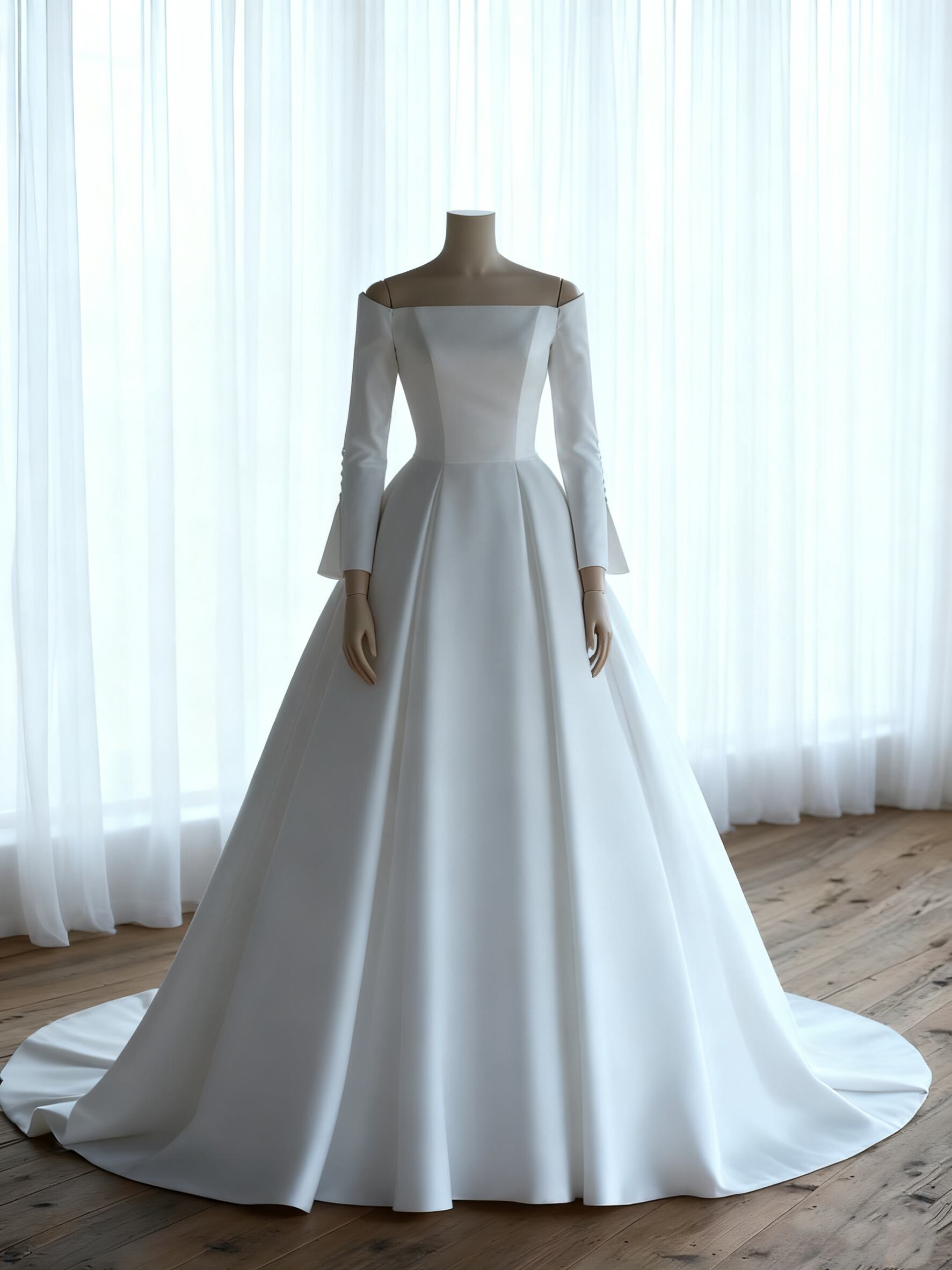 ウェディングドレス オフショルダー ロングスリーブ Aライン オフホワイト スリット 花嫁