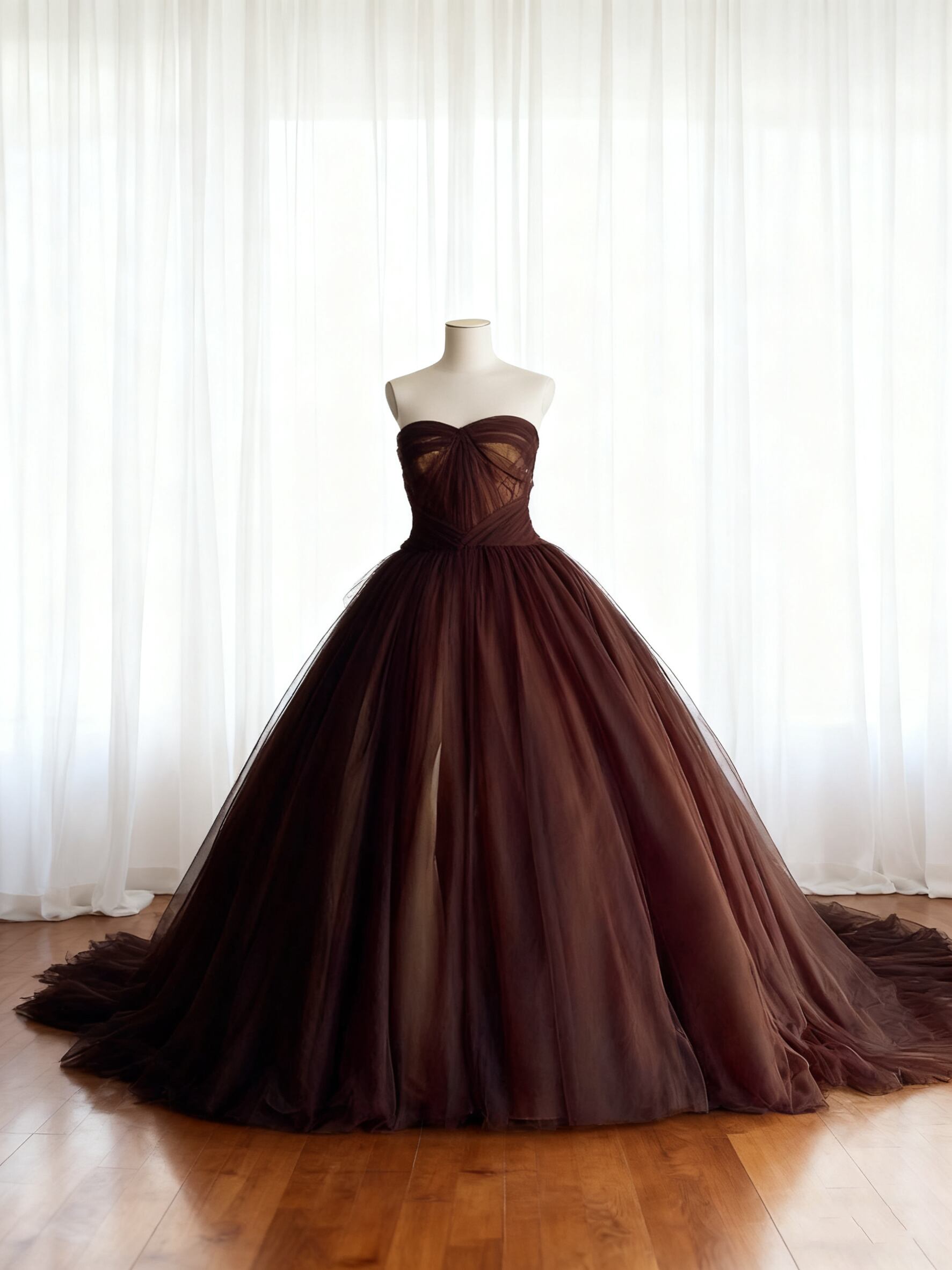 カラードレス ブラウンフレアスカート ビスチェドレス ハンドドレープ エレガント 花嫁/ウェディングドレス