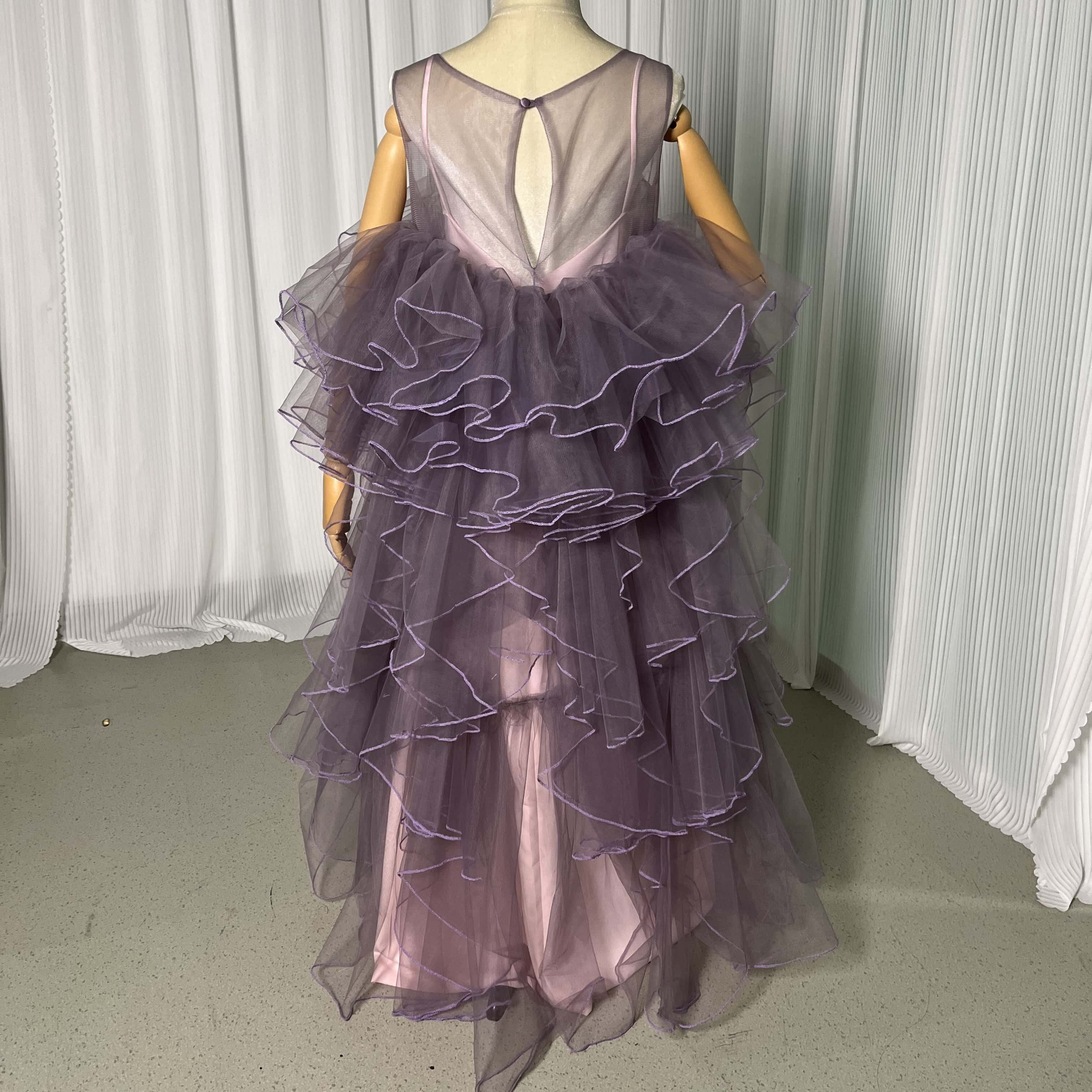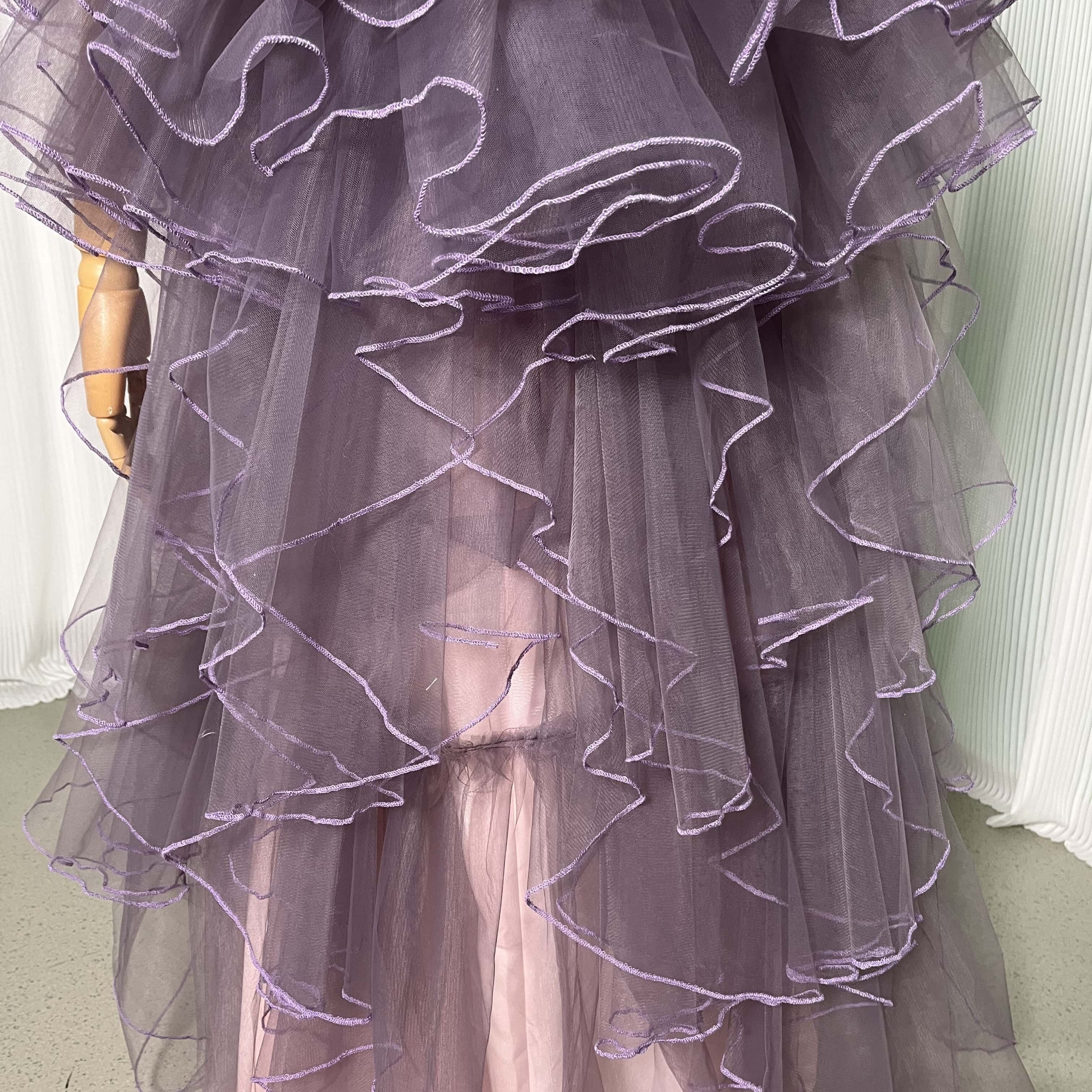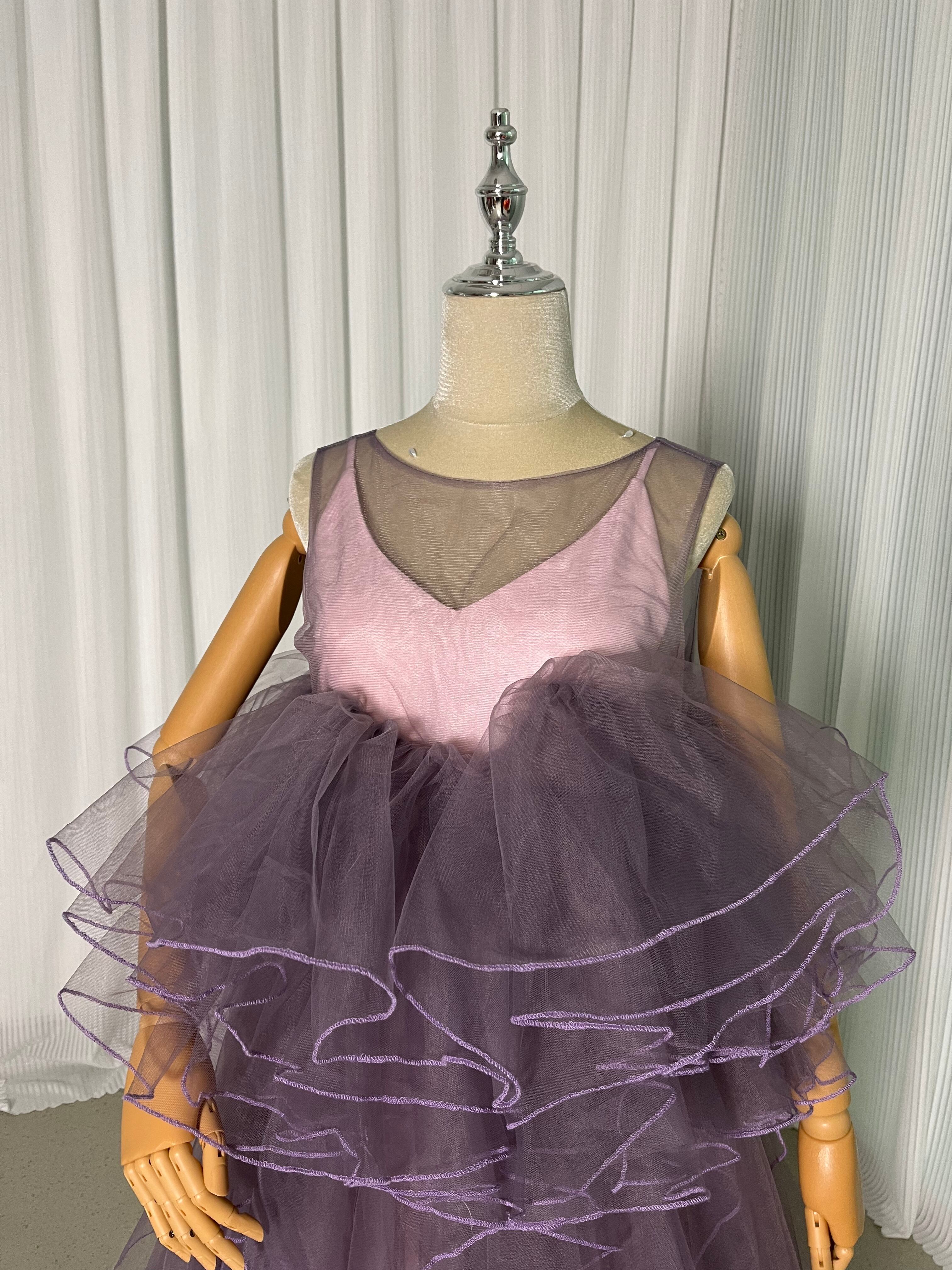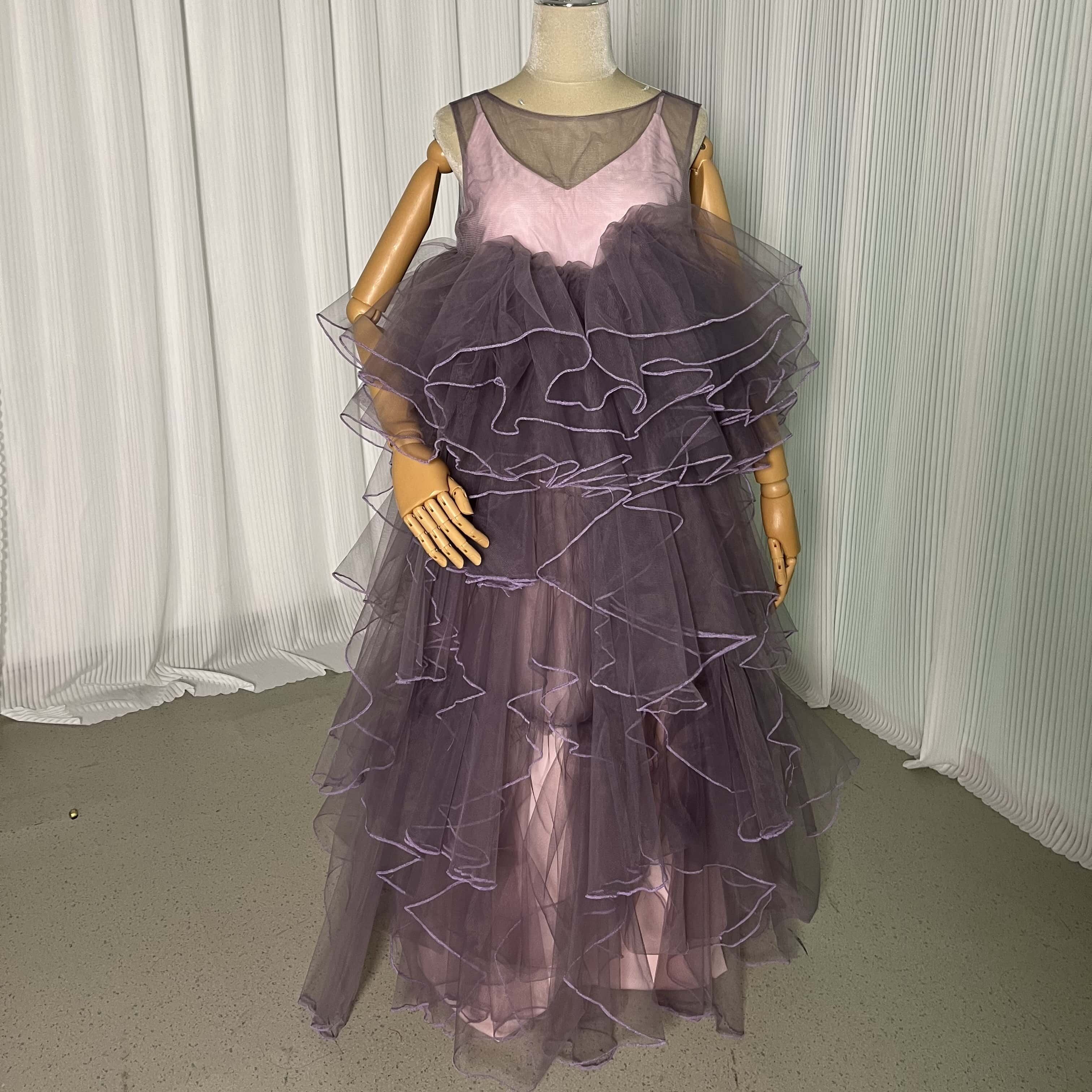 デザイン感 カラードレス パーティードレス ピンク紫 ラッフルフリル ツーピース 二次会 音楽会/発表会など