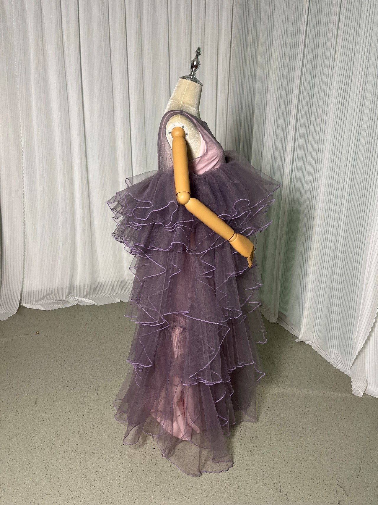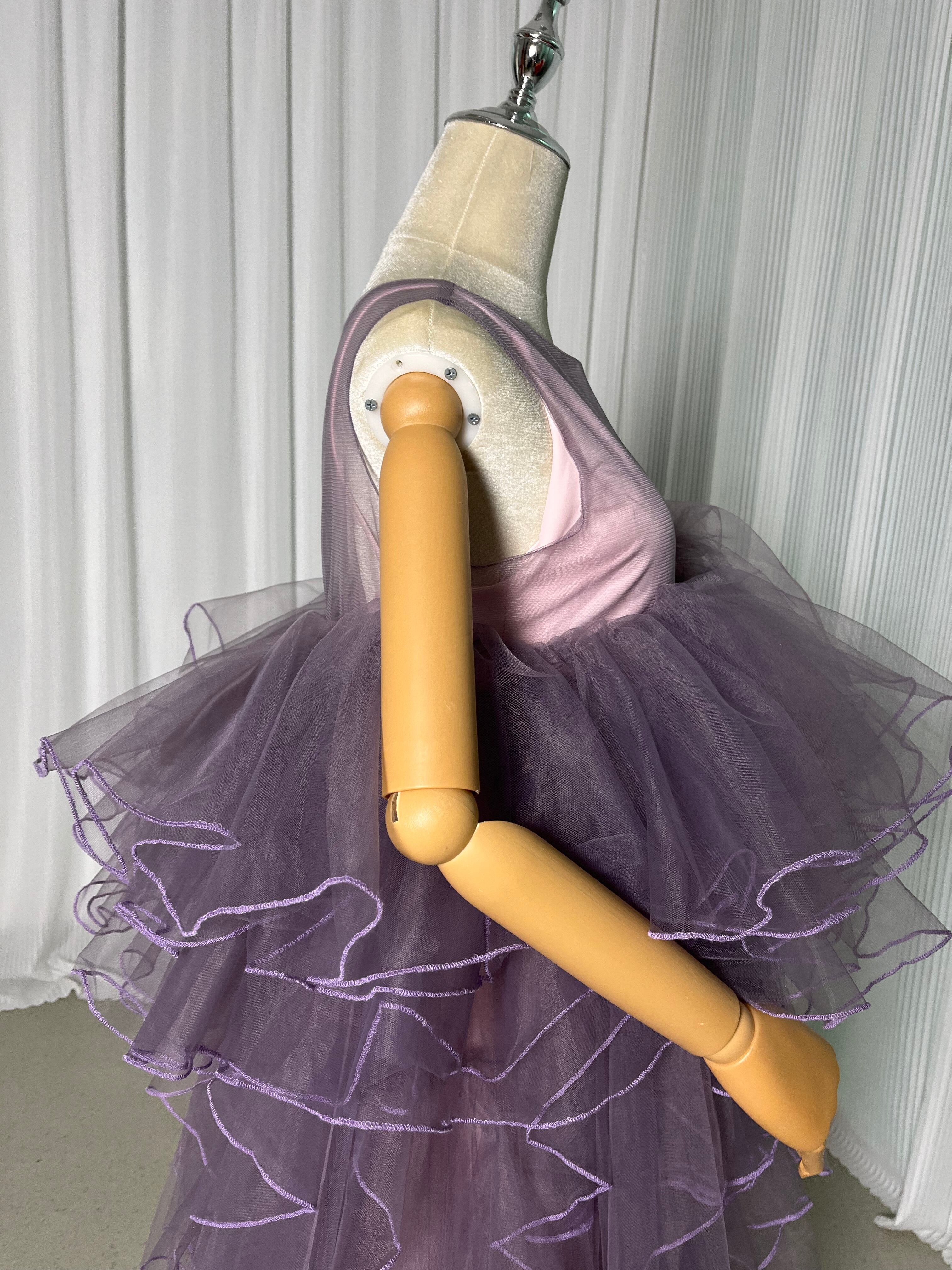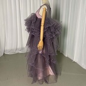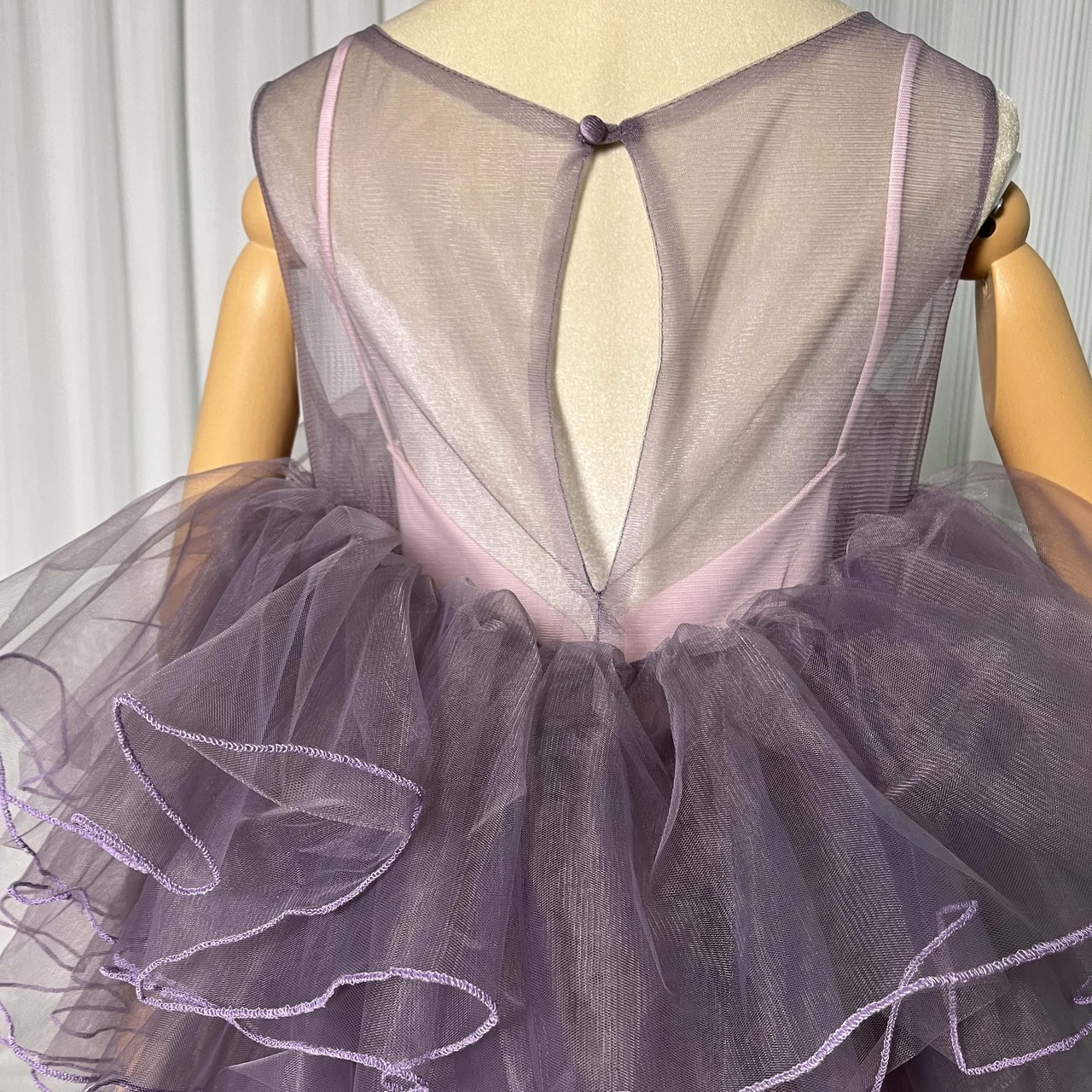デザイン感 カラードレス パーティードレス ピンク紫 ラッフルフリル ツーピース 二次会 音楽会/発表会など