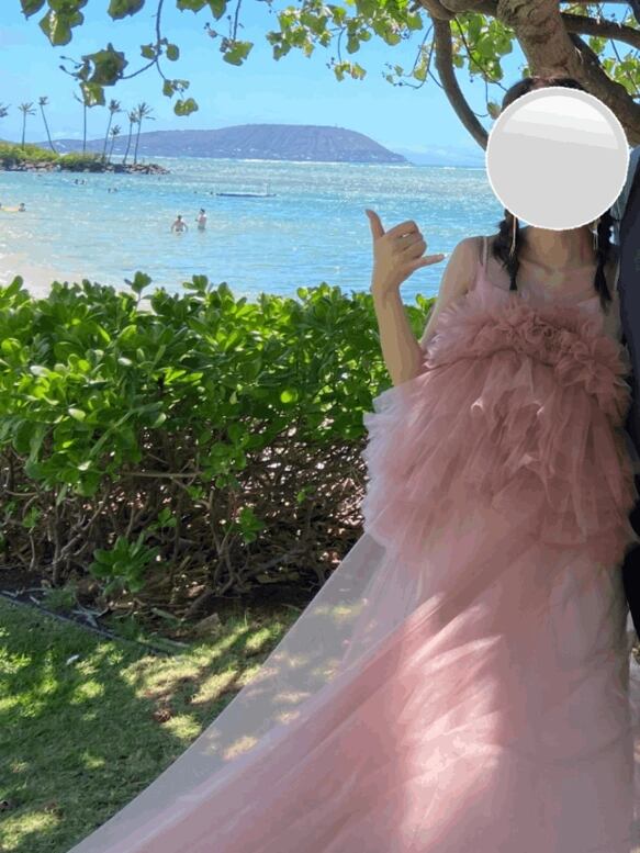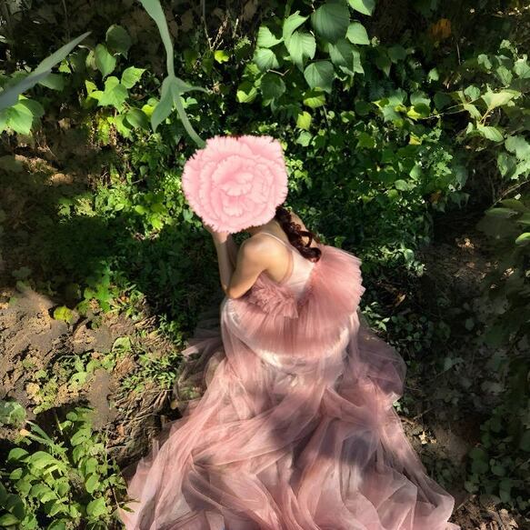 実例写真!パーティードレス キャミソール ツーピース ピンク デザイン感 前撮り 妊婦 2次会