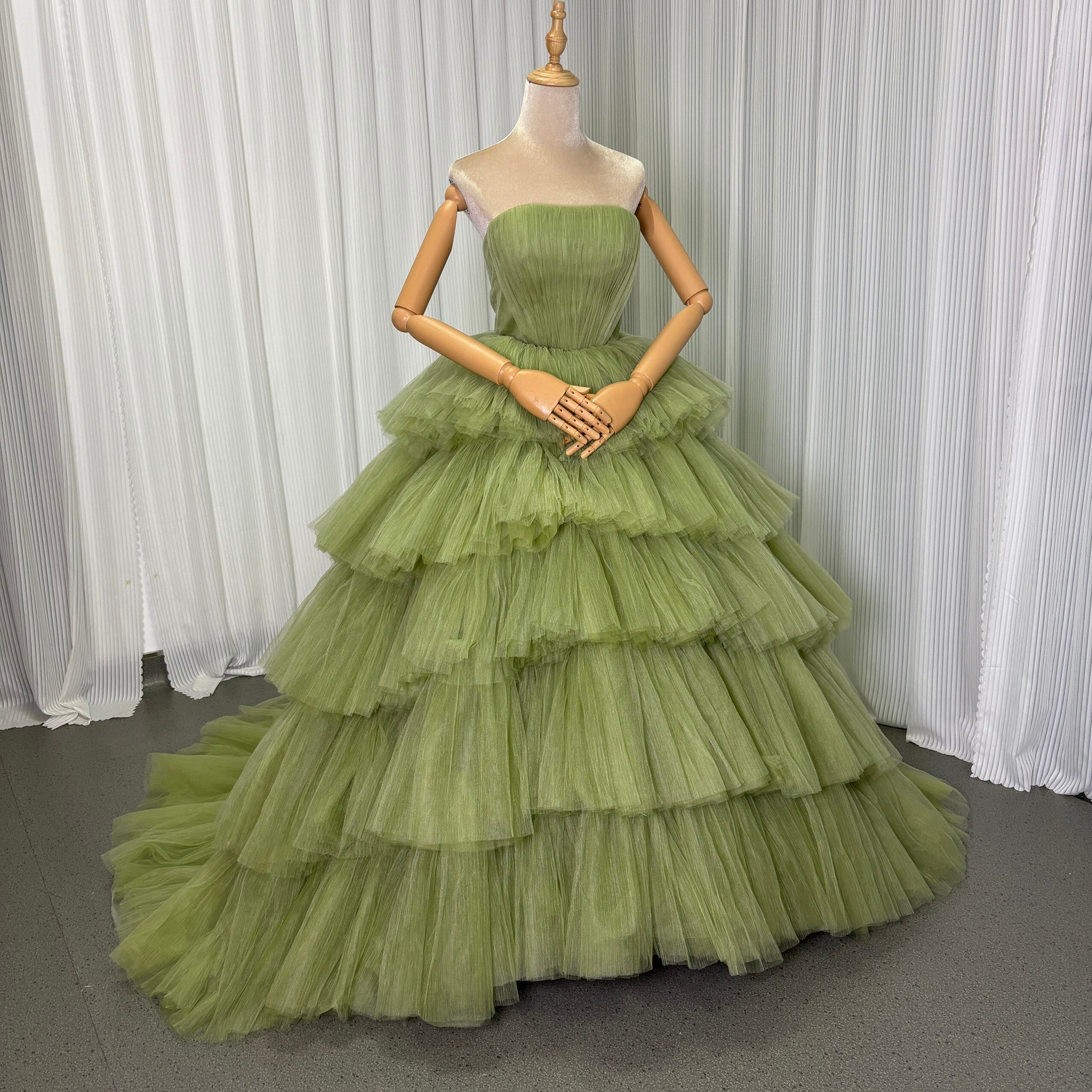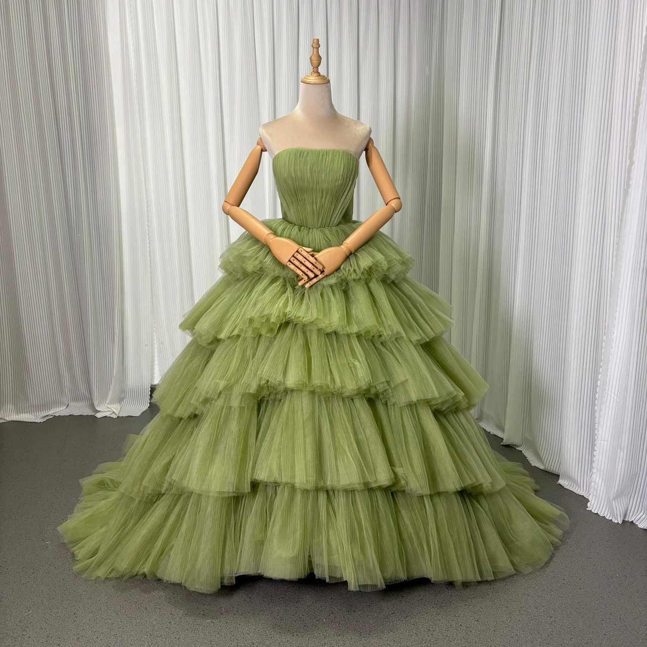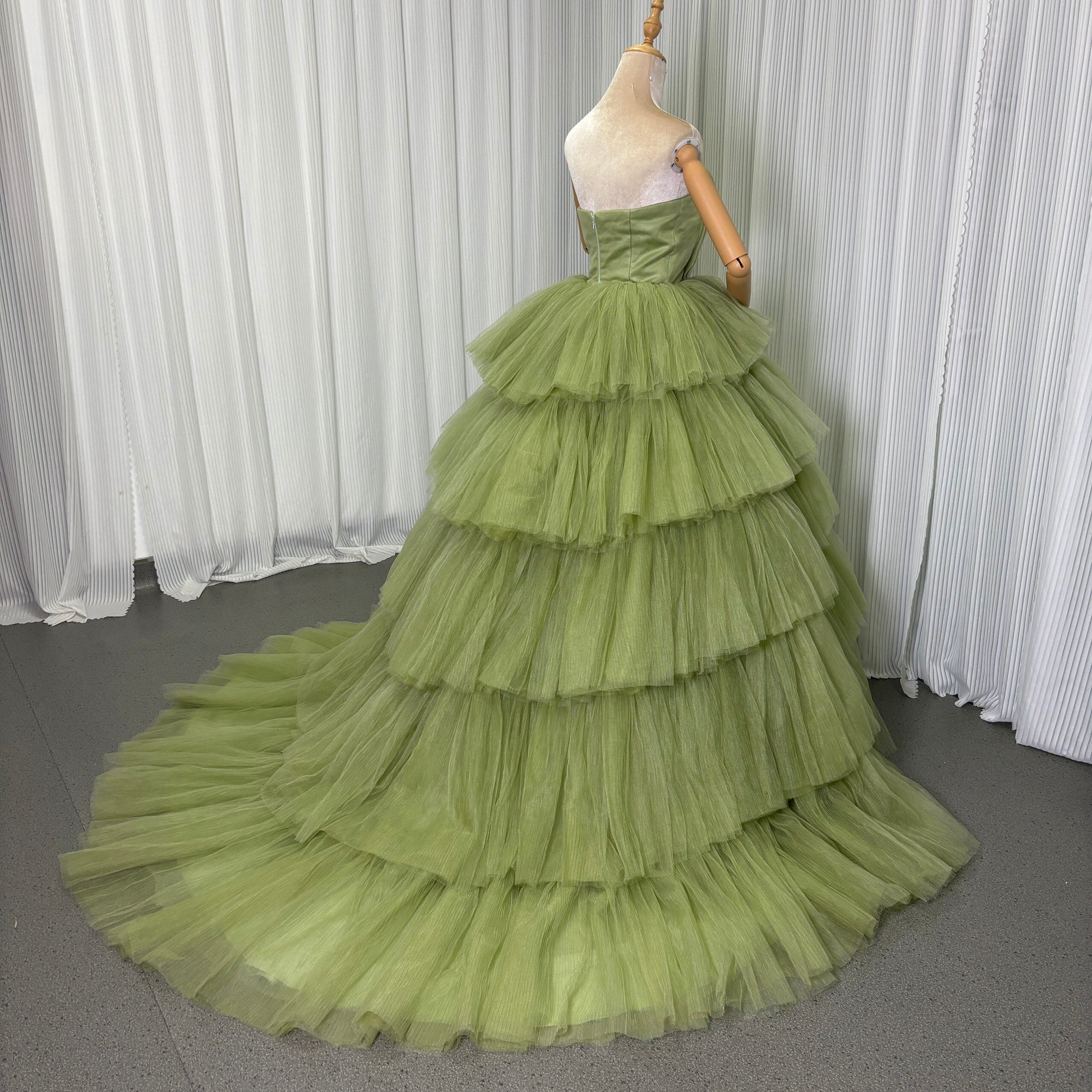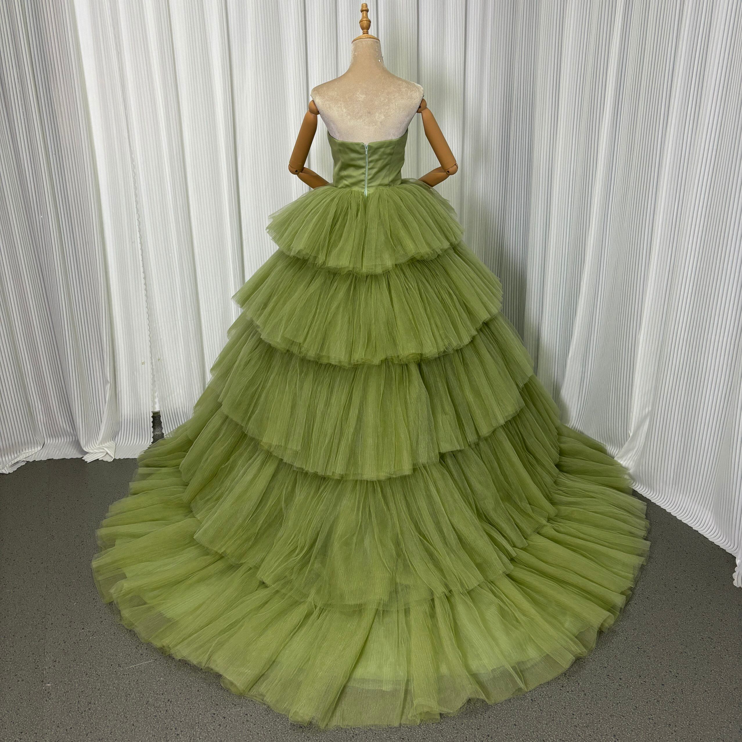 カラードレス プリーツドレス ティアードのドレス ビスチェドレス ファスナー グリーン 結婚式
