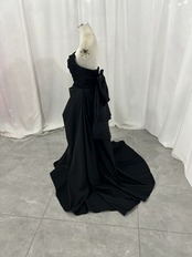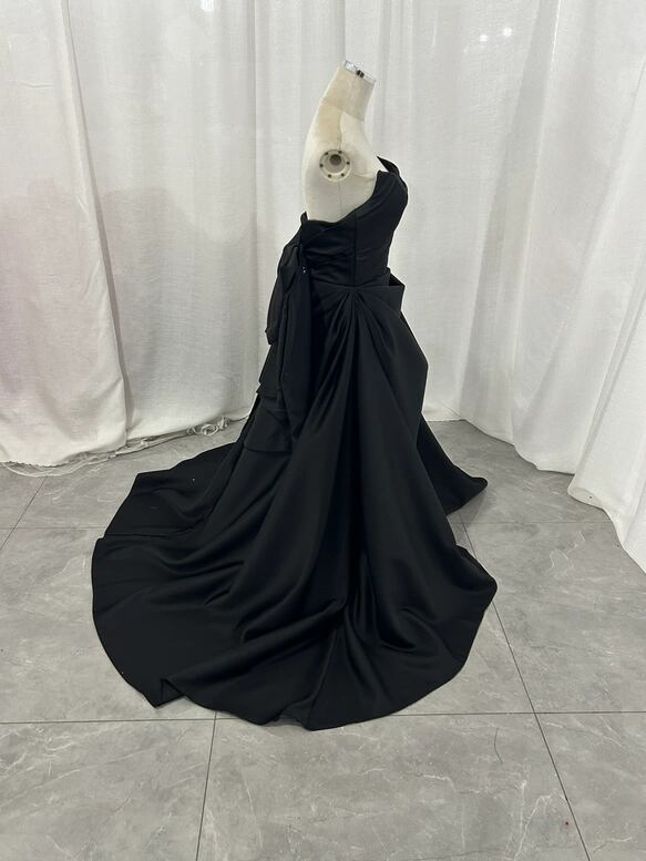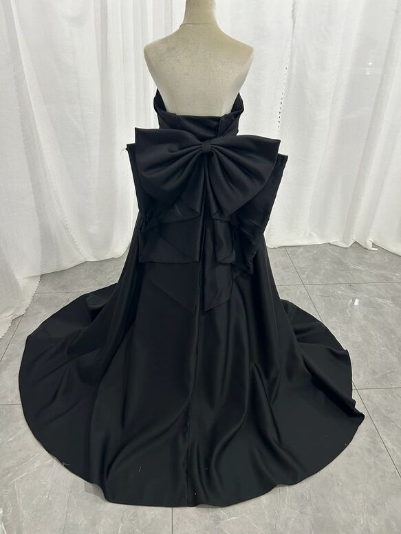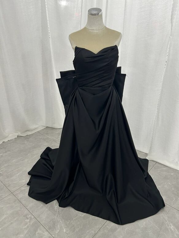 パーティードレス ブラック ミカドサテン 豪華なバックリボン ミニトレーン スレンダーライン 演奏会