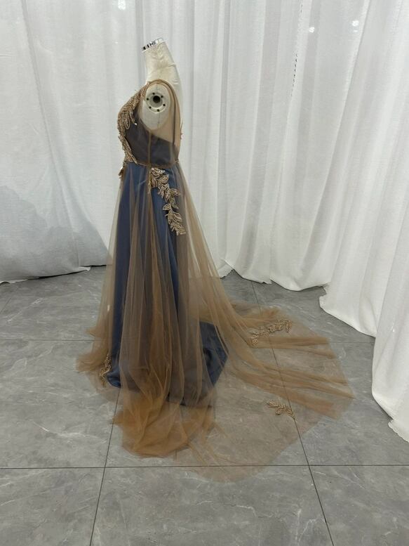人気上昇 青上品レース キャミソール カラードレス +コーヒーの色 オーバードレス 点セット 花嫁