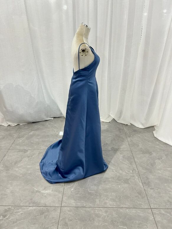 人気上昇 青上品レース キャミソール カラードレス Vネックドレス 背中見せ 光沢サテン 前撮り