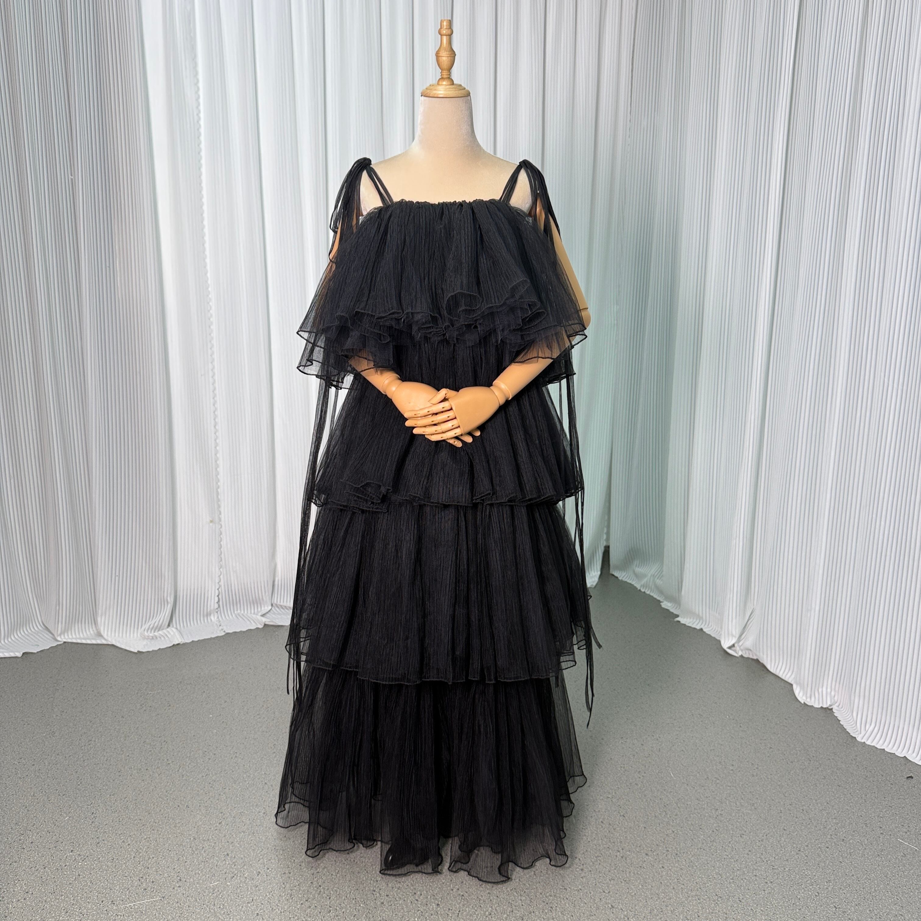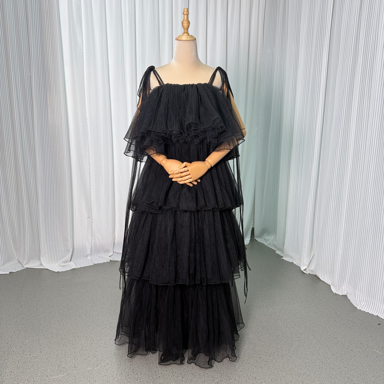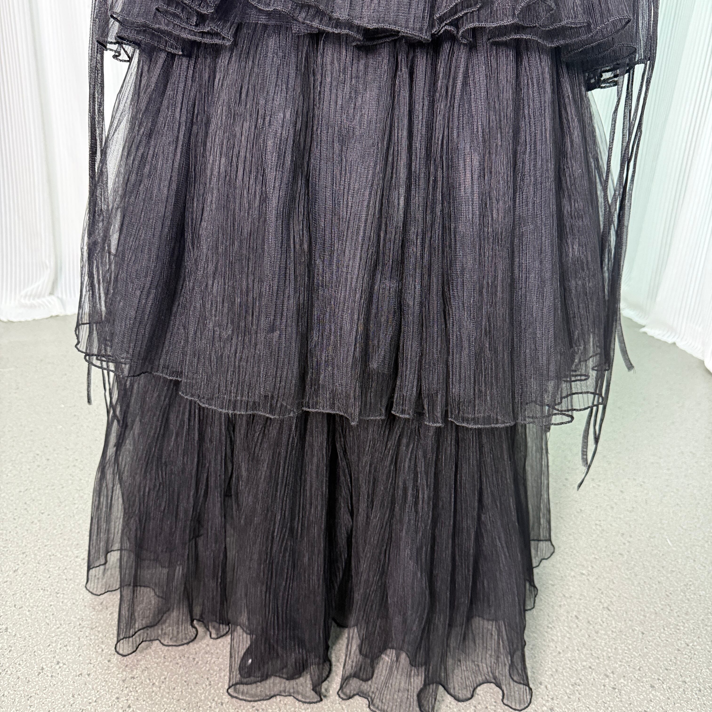 ウエディングドレス オーバードレス キャミソール プリーツドレス ティアードのドレス ブラック 色直し