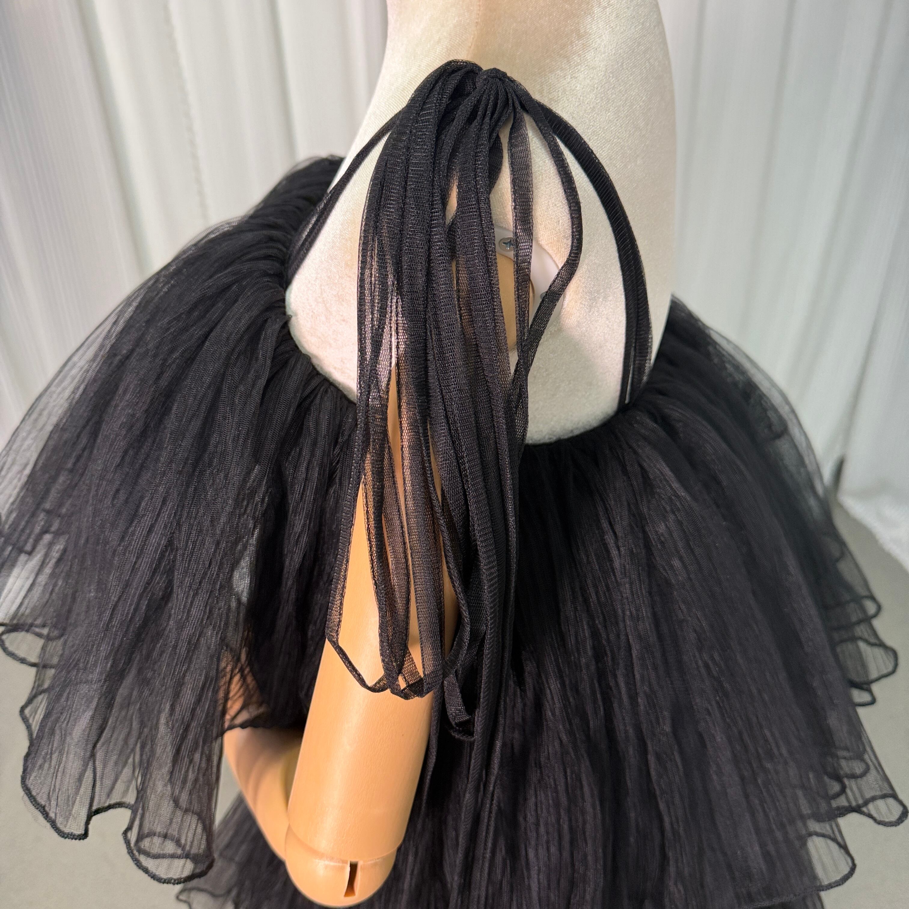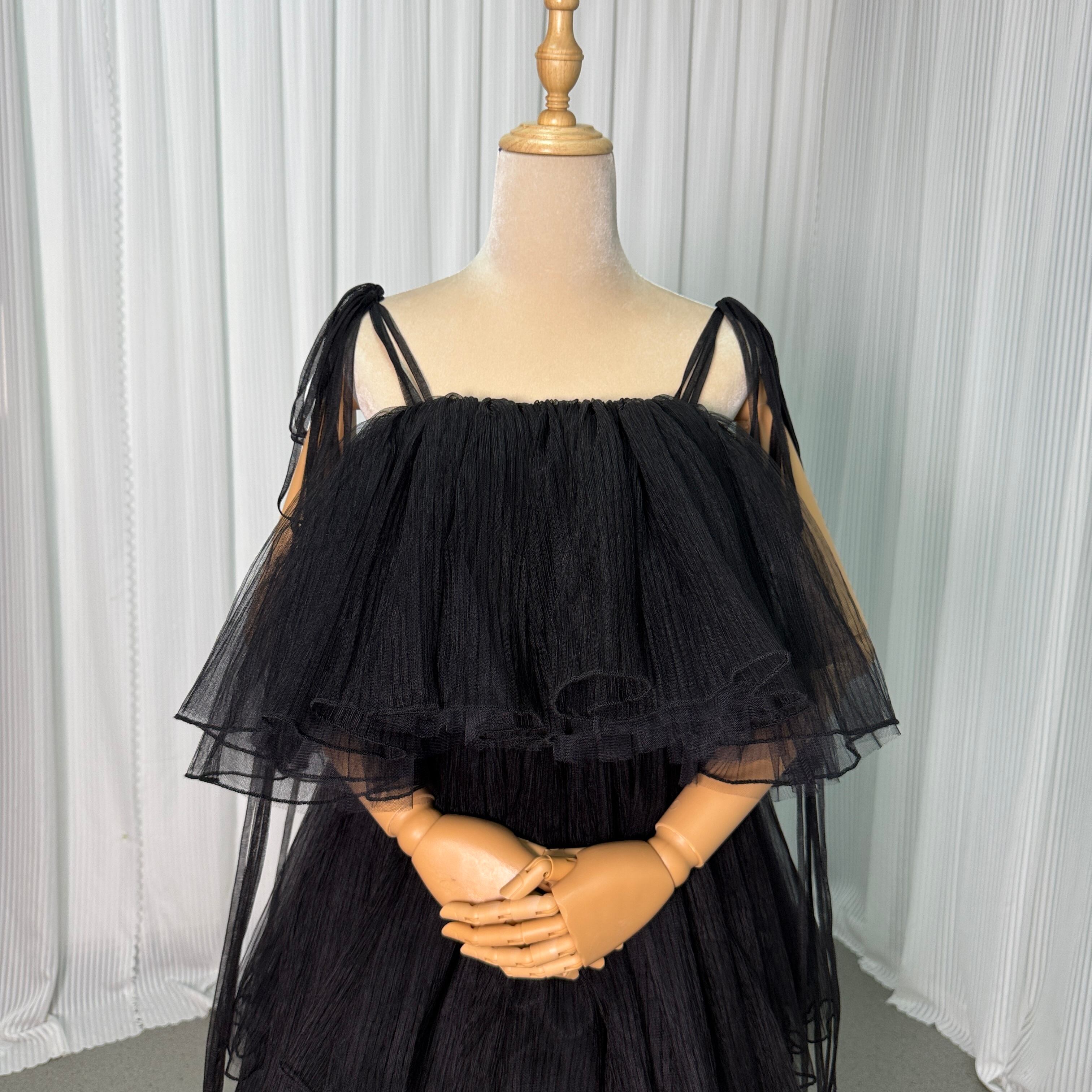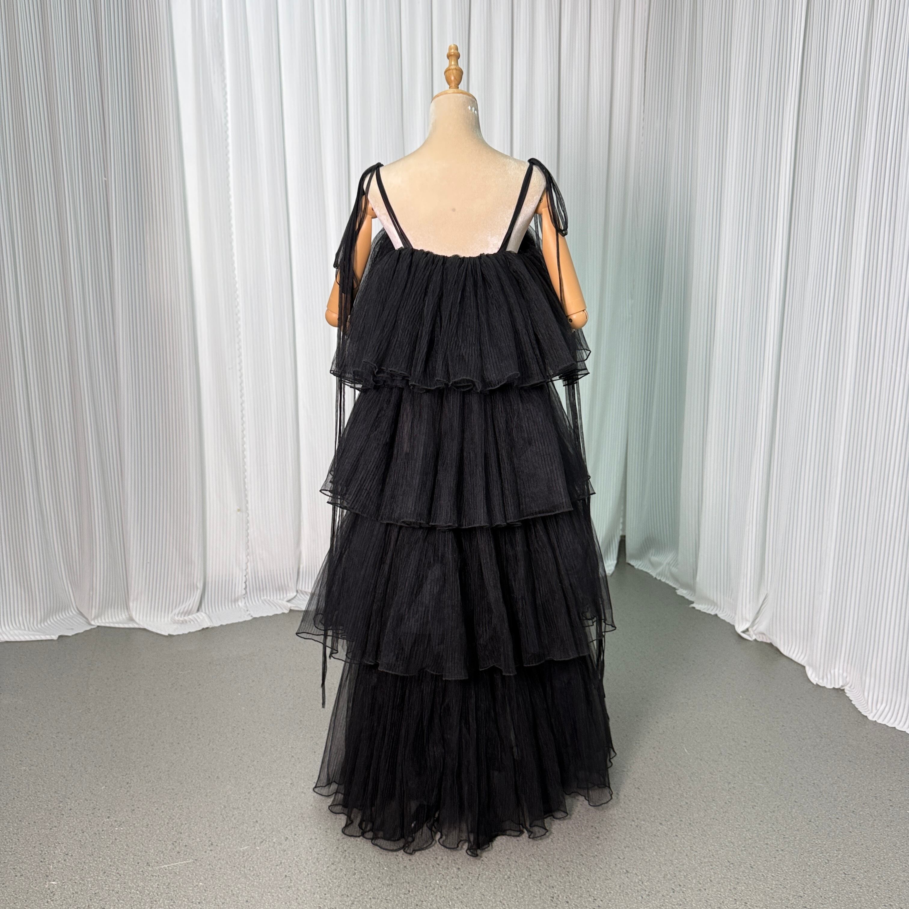ウエディングドレス オーバードレス キャミソール プリーツドレス ティアードのドレス ブラック 色直し
