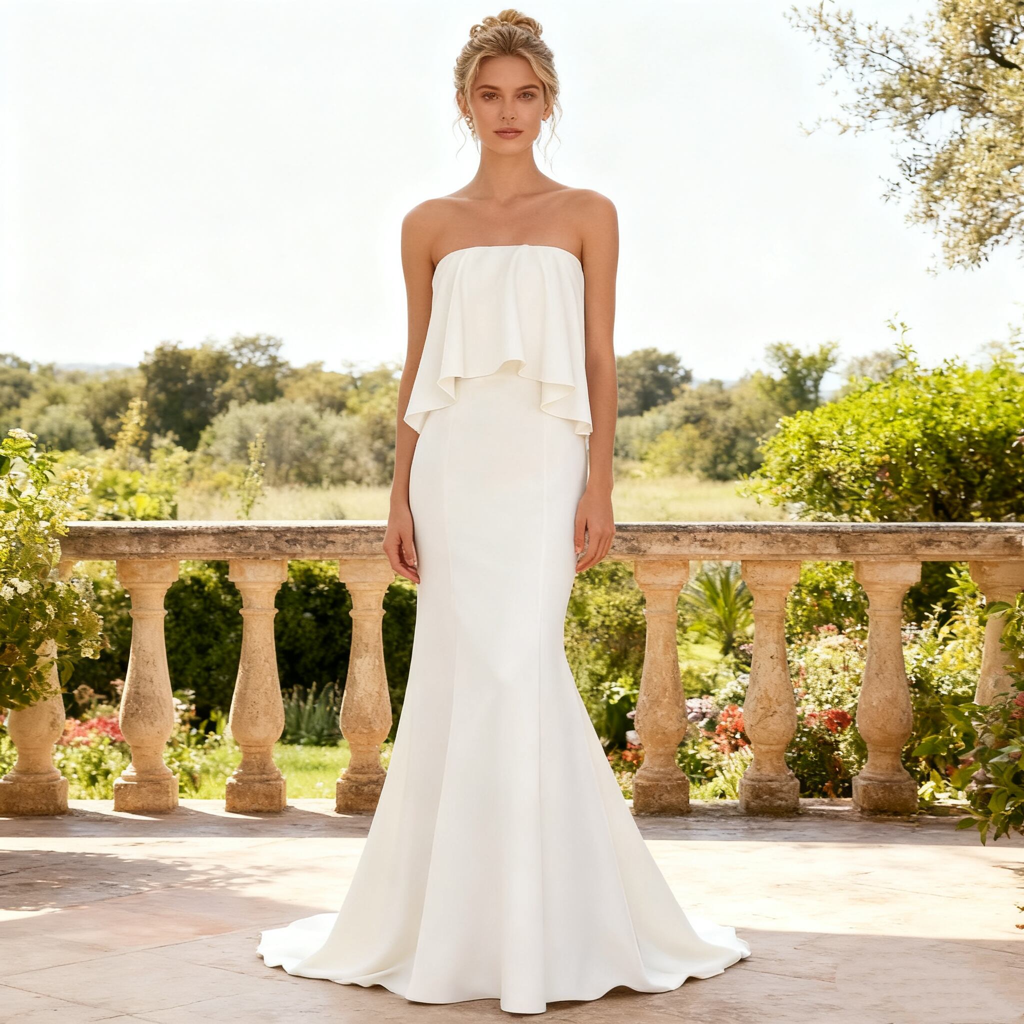 パーティードレス スレンダーライン オフホワイト クレープ生地 マーメイド 優雅なシルエット 前撮り 花嫁