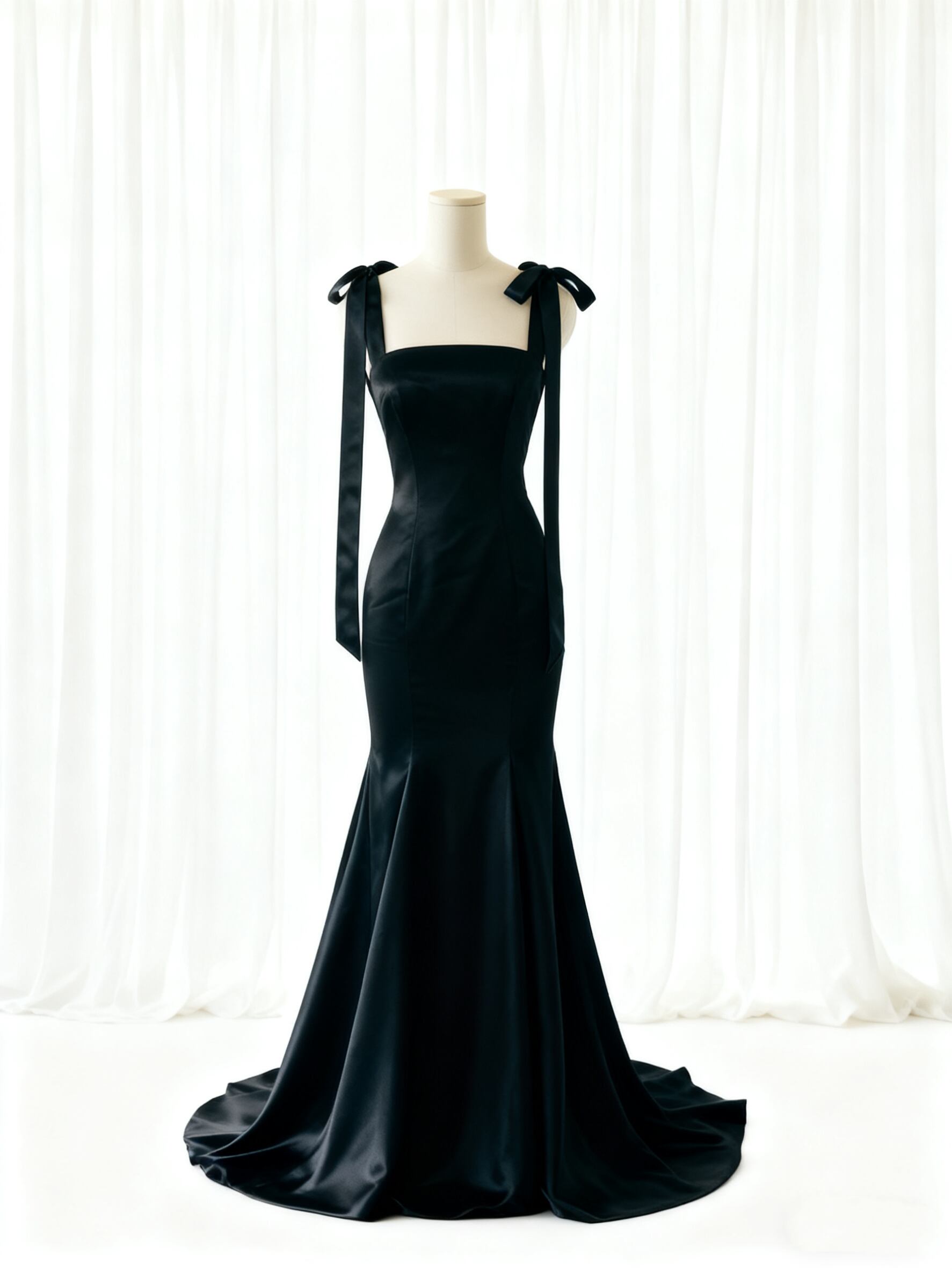 パーティードレス ブラック マーメイドライン 光沢サテン キャミソール エレガント 結婚式 優雅なシルエット