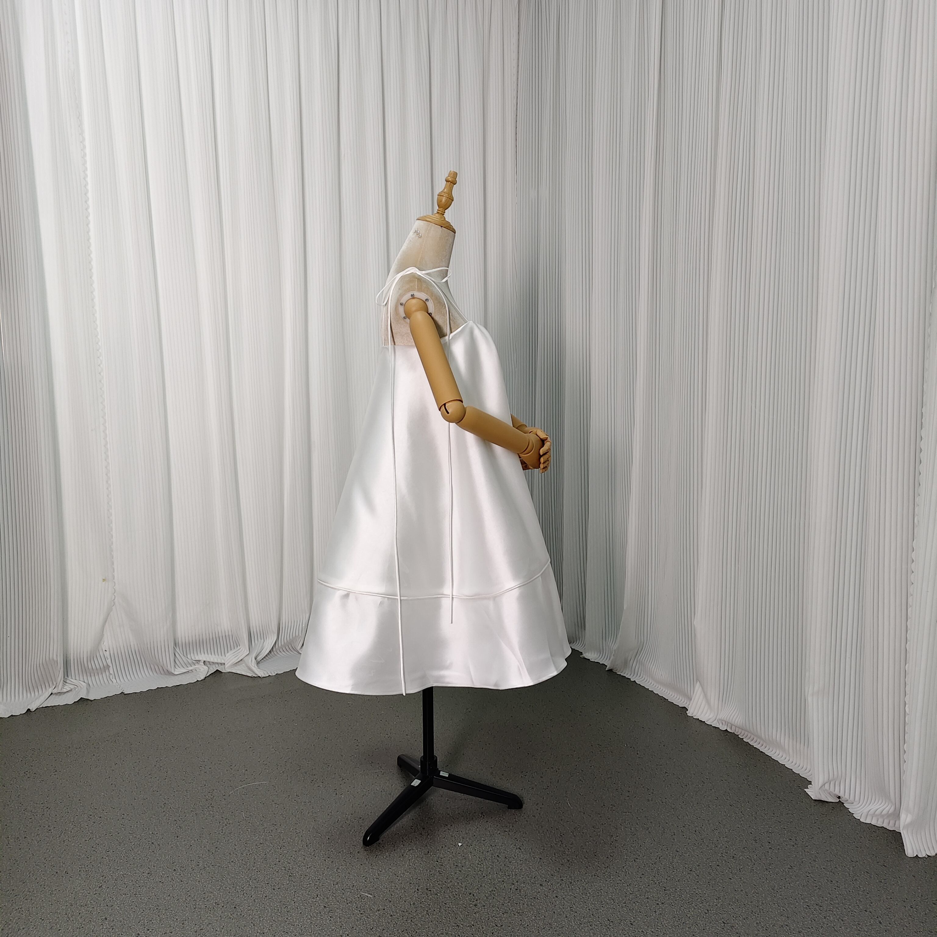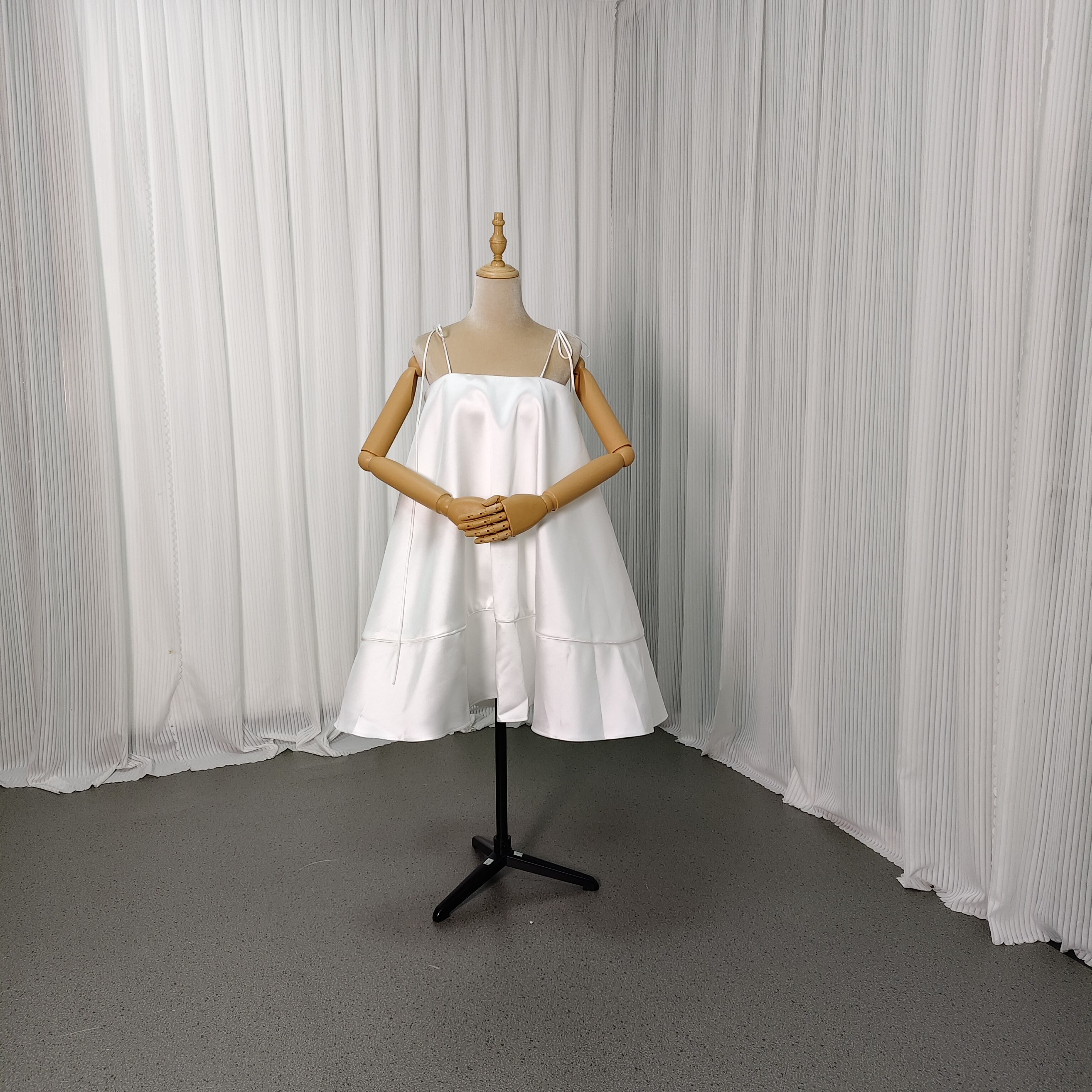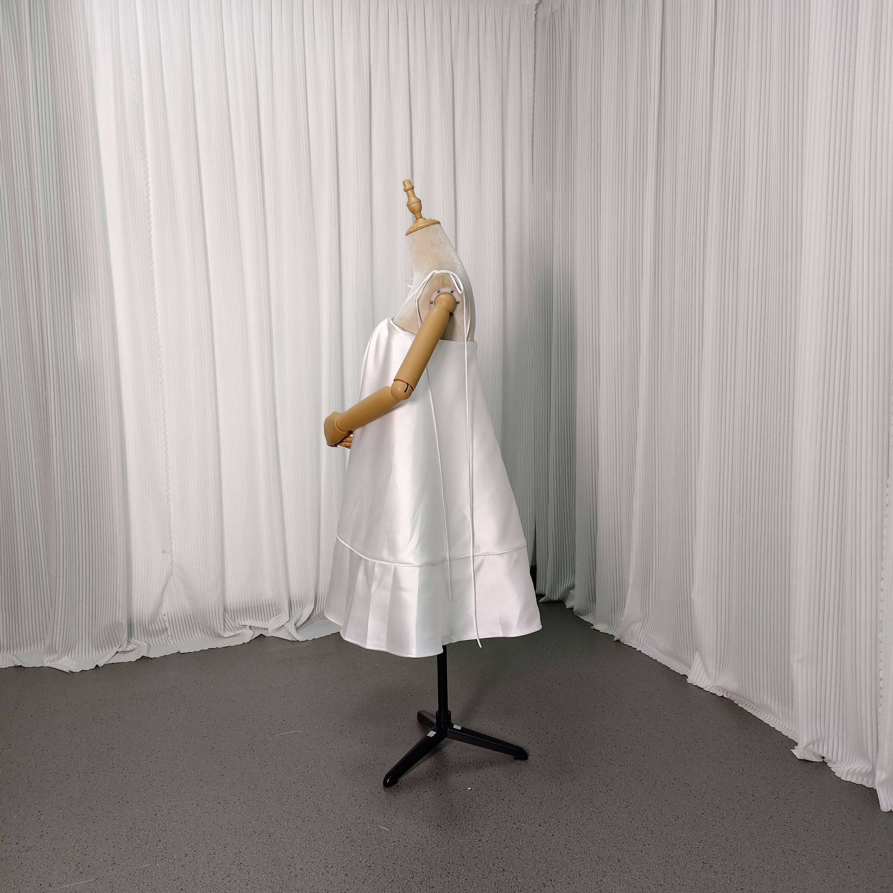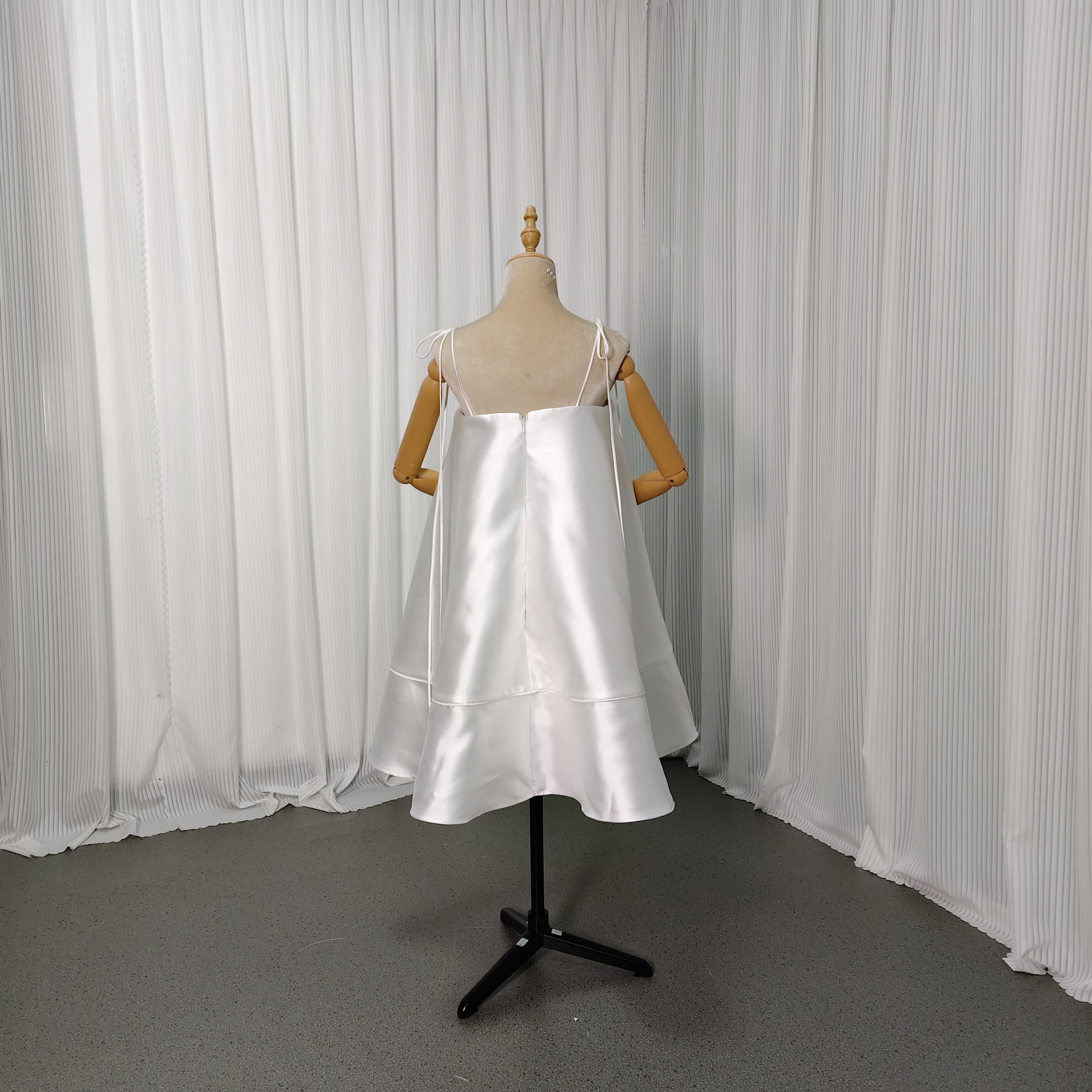 ミニワンピース ミカドサテン キャミソール オフホワイト ファスナー 揺らめく裾 前撮り パーティーワンピース