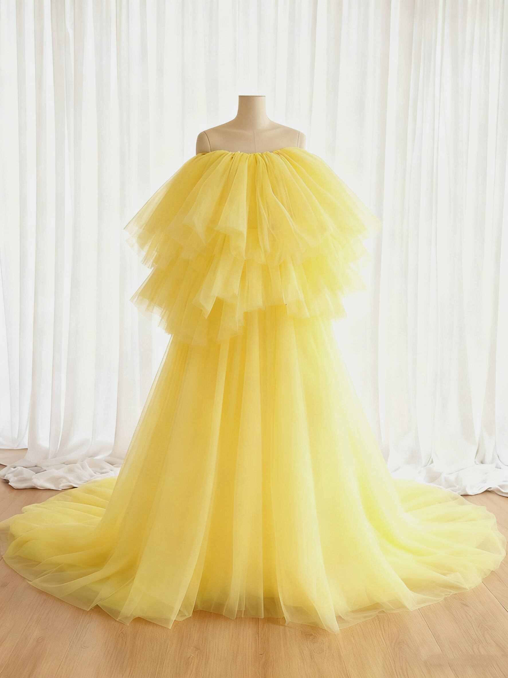 カラードレス 黄色い ビスチェドレス ふわふわドレス 柔らかく重ねたチュールスカート 前撮り