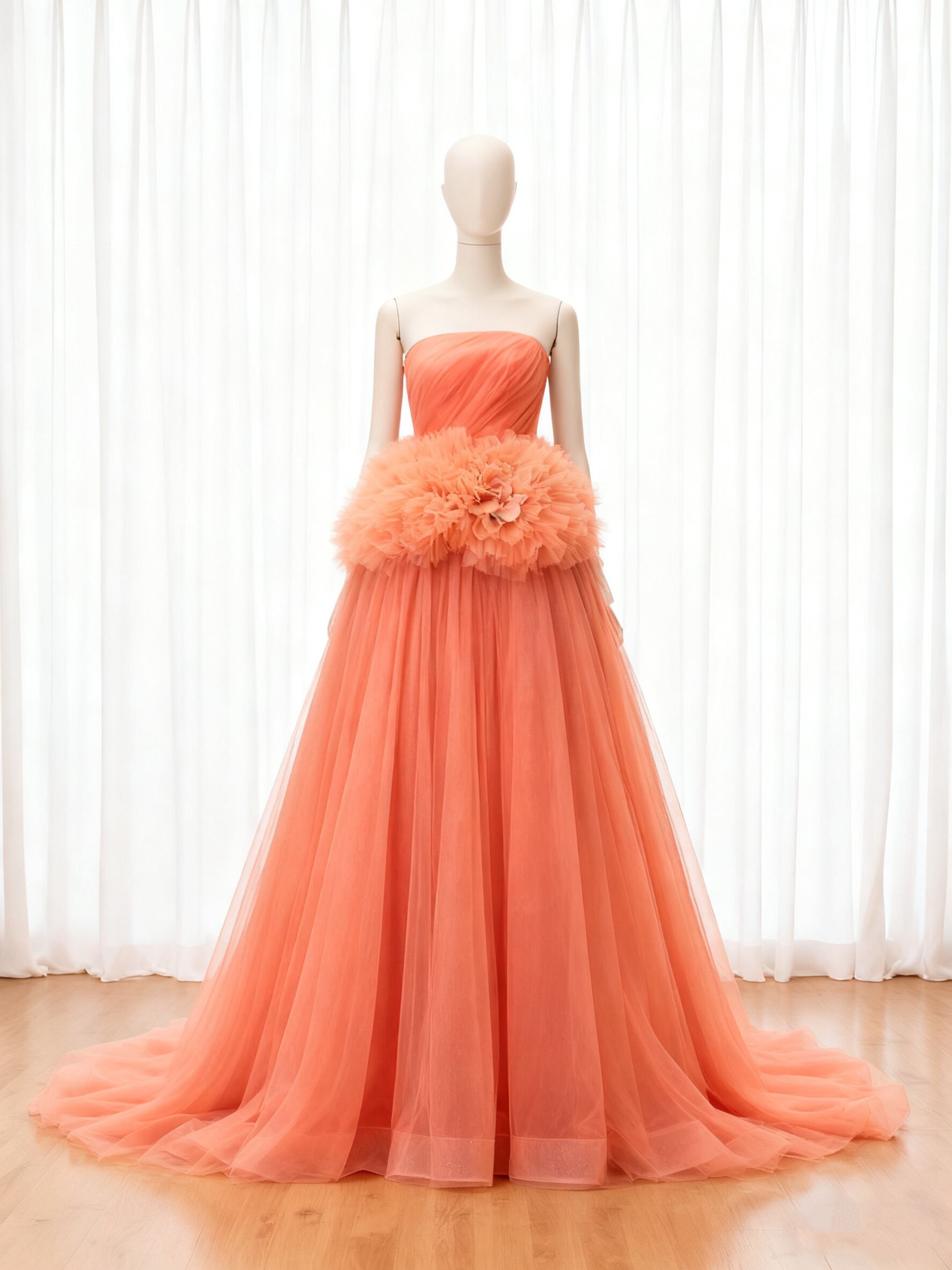 カラードレス オレンジ ふわふわドレス Aライン チュールドレス ビスチェドレス ブライダル エアリー感
