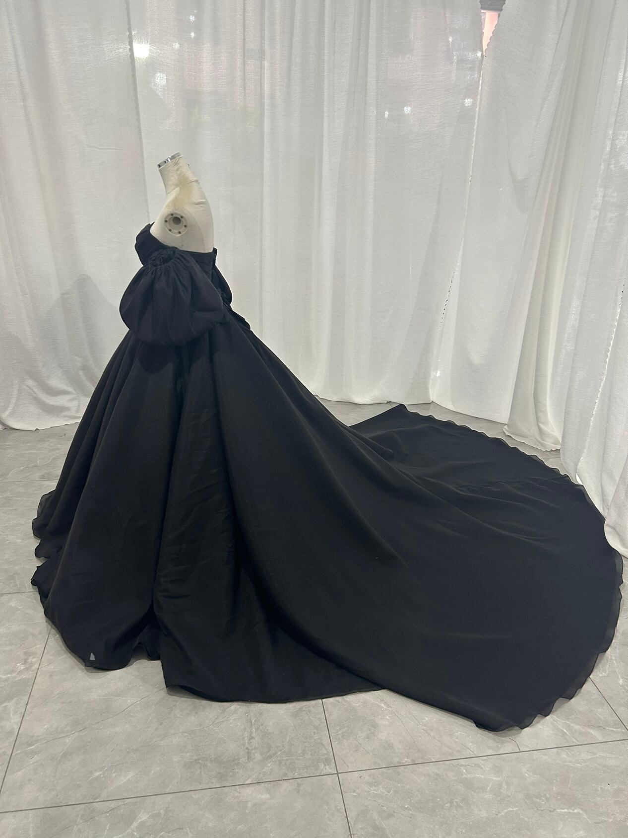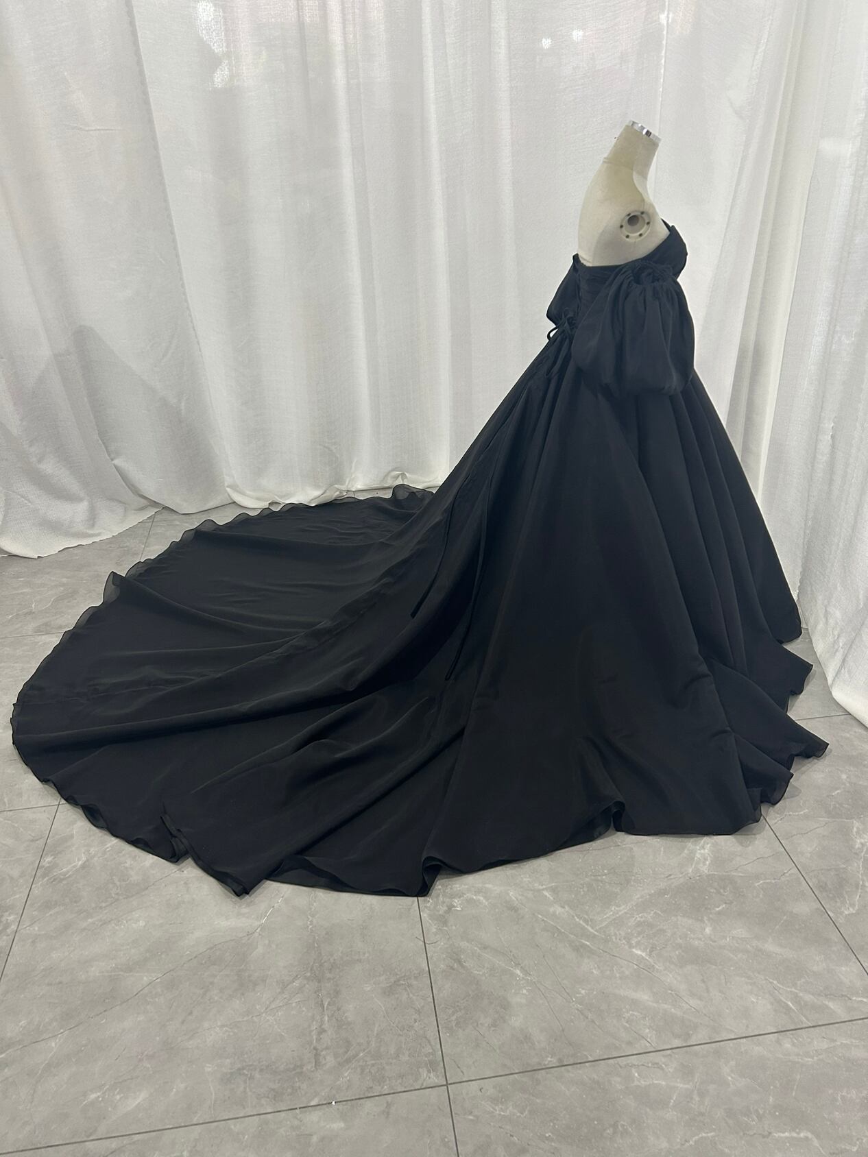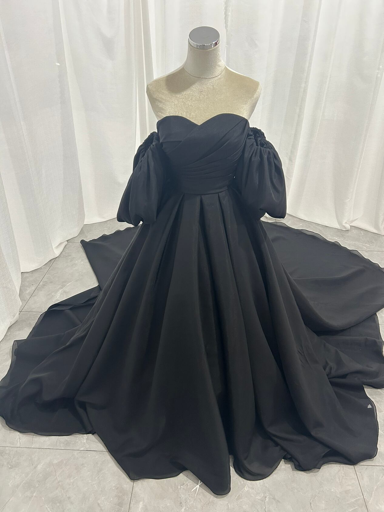 カラードレス ブラック パフスリーブ 編み上げ 楊柳オーガンジー 結婚式 前撮り エレガント