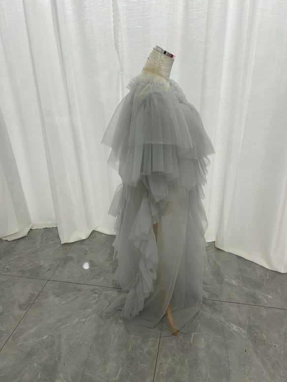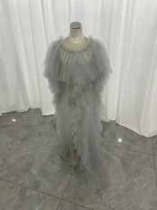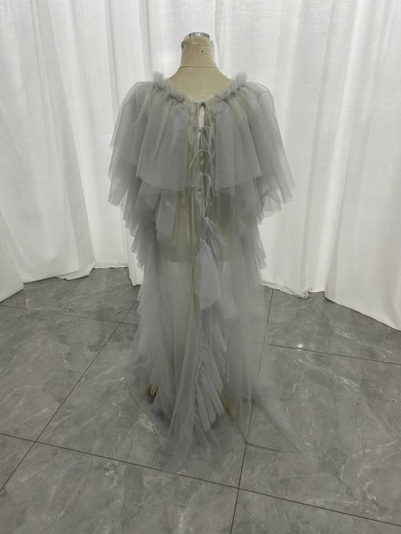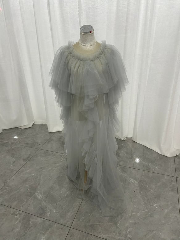 上品 ! グレー 妊婦ドレス マタニティ写真撮影 グレー シースルー ワンピース ソフトチュール