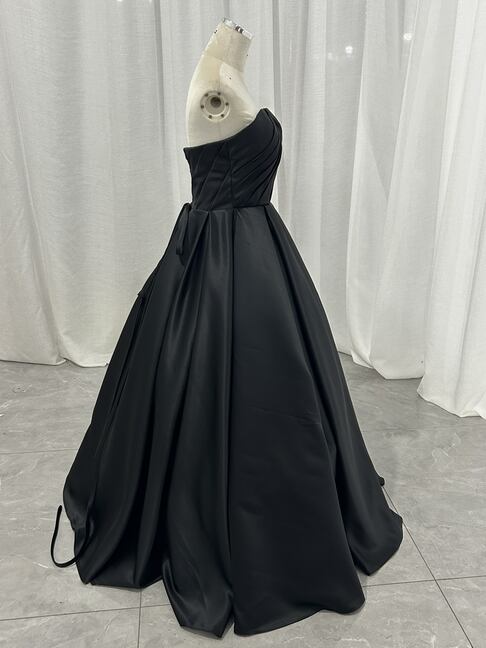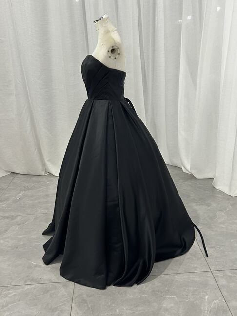 パーティードレス ブラック ベアトップ 床付く 編み上げ ハンドドレープ スレンダーライン ピアノ演奏会