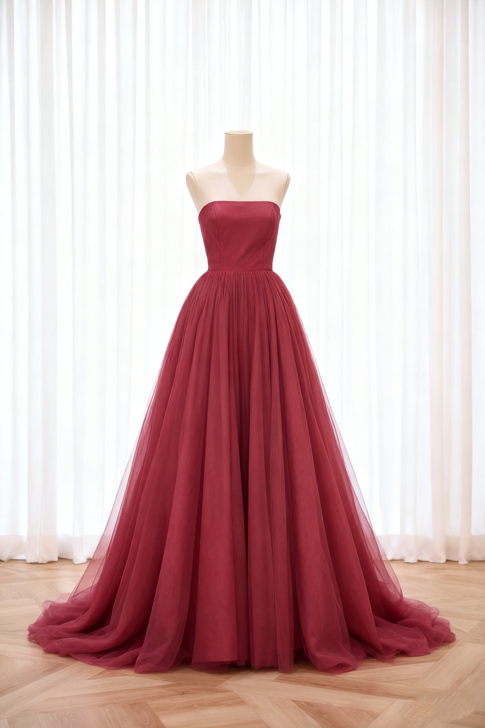 カラードレス ベアトップ Aライン ビビッドピンク プリンセスライン スレンダーライン ブライダル