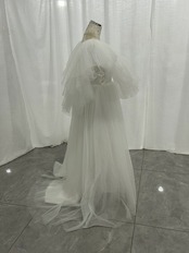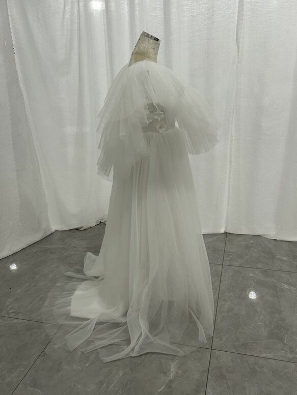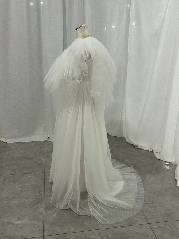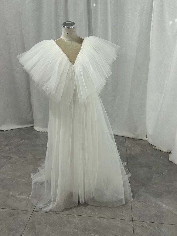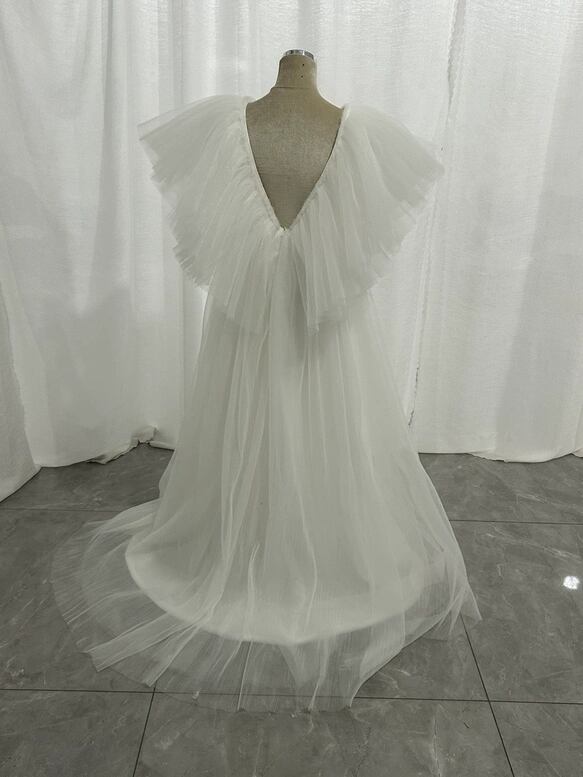 美品!ウエディングドレス Vネック ソフトチュール /短トレーン 結婚式/披露宴