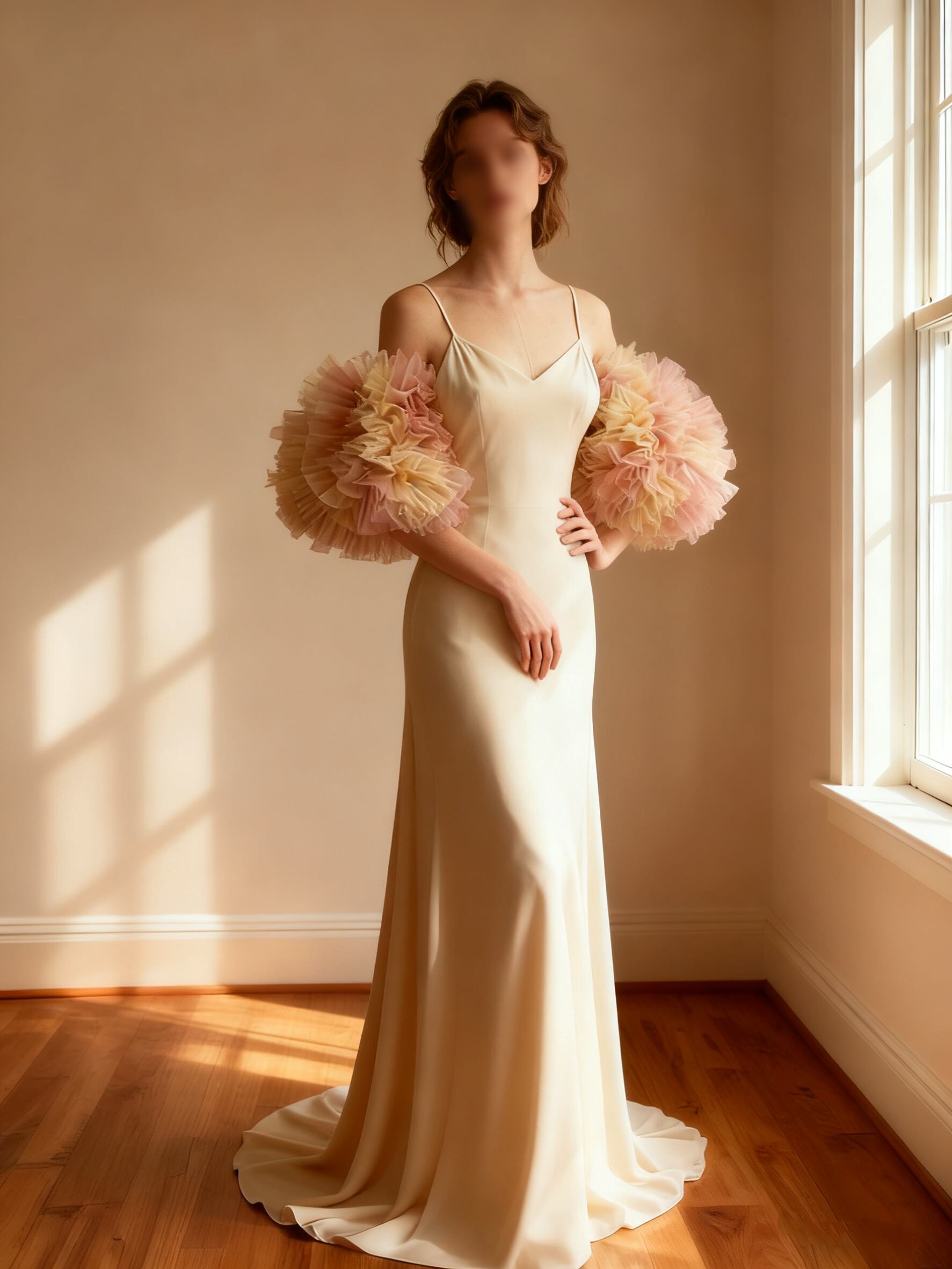 パーティードレス オフホワイト 取り外し可能な付け袖 姫袖 ソフトマーメイドライン 披露宴 二次会