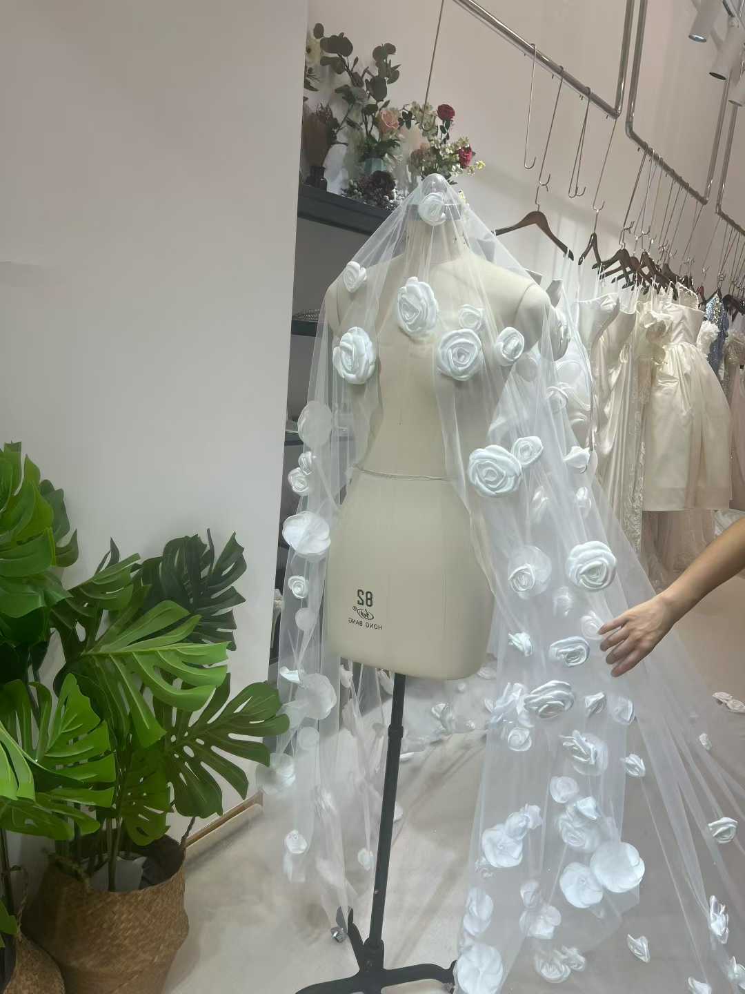 ロングベール バラトレーン ハンドメイド 花嫁/ウェディングドレス 前撮り