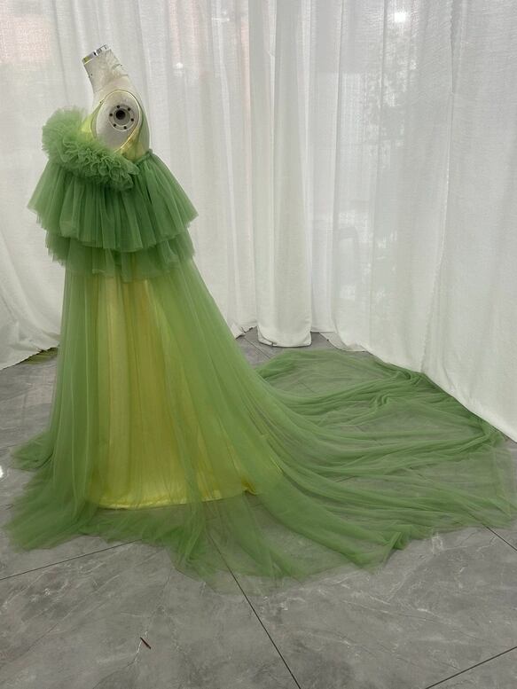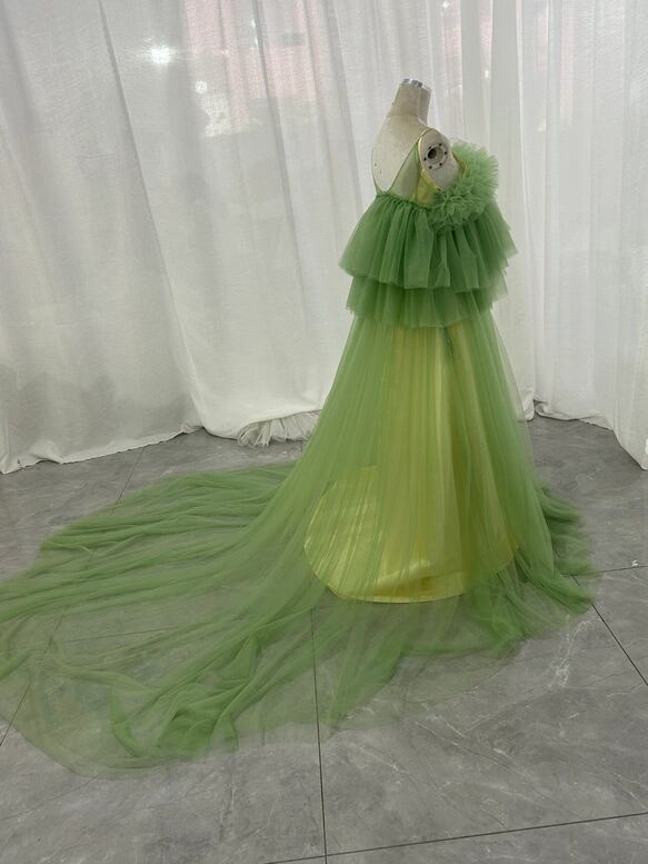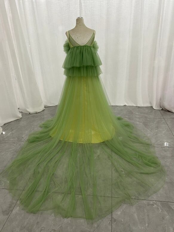 パーティードレス グリーン ソフトチュール ツーピース イエロー キャミソール マタニティ 抜群のおしゃれ見え 前撮り