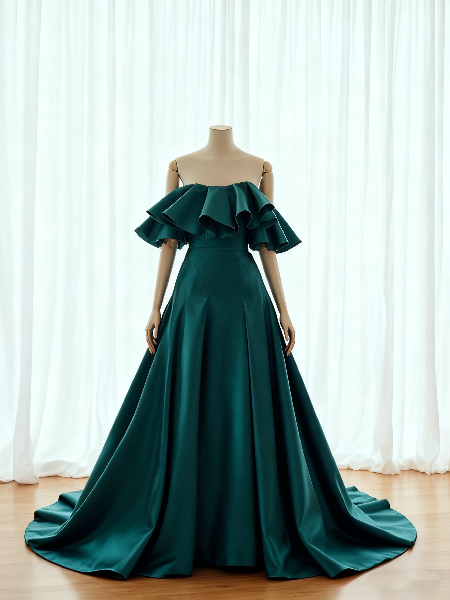 カラードレス グリーン ソフトマーメイドライン ベアトップ ミカドサテン リボントレーン ブライダル