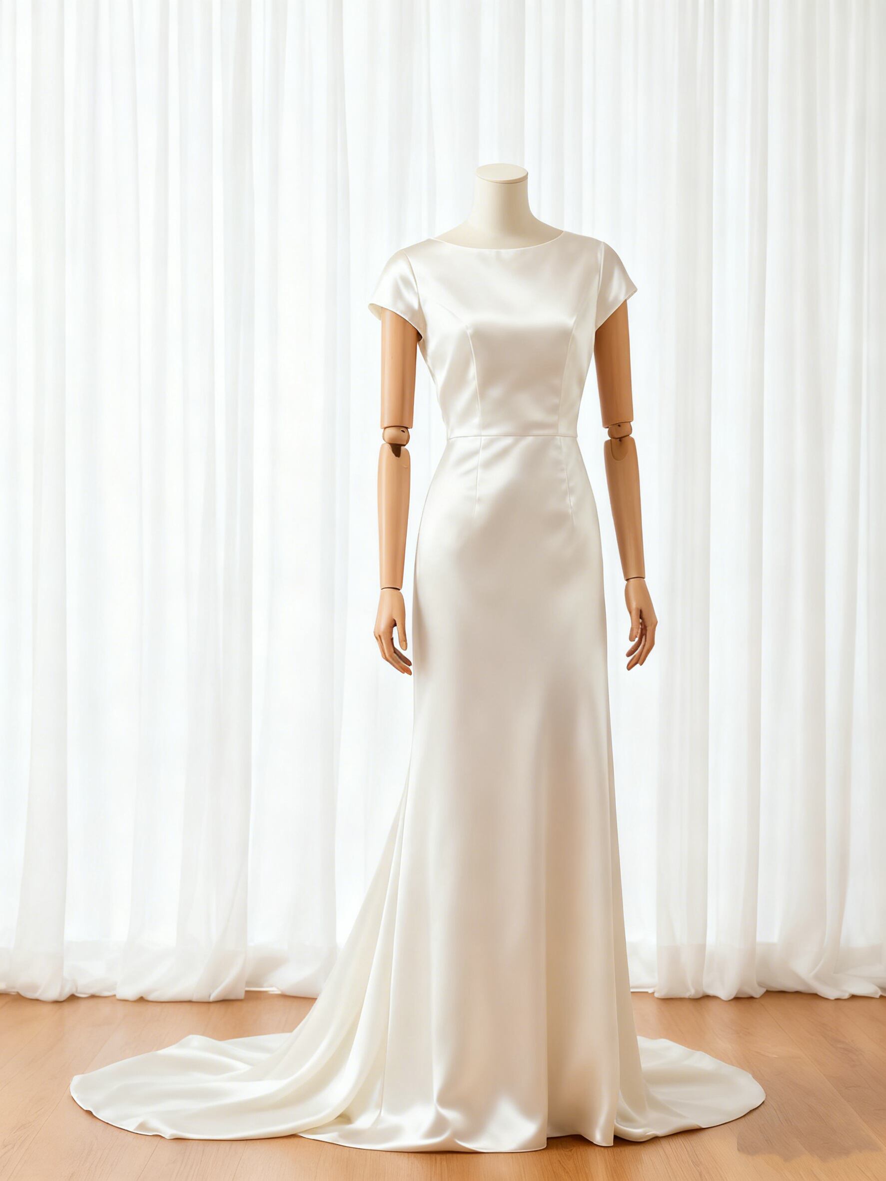 パーティードレス フレンチスリーブ ソフトマーメイドライン オフホワイト ラウンドネック 前撮り