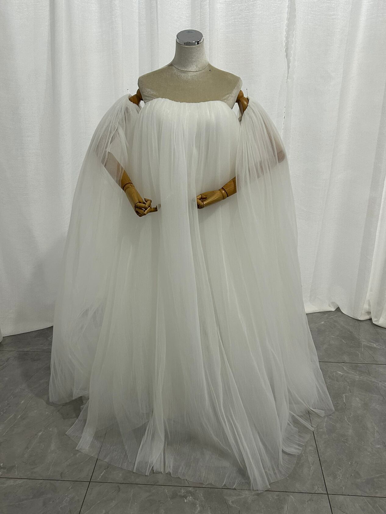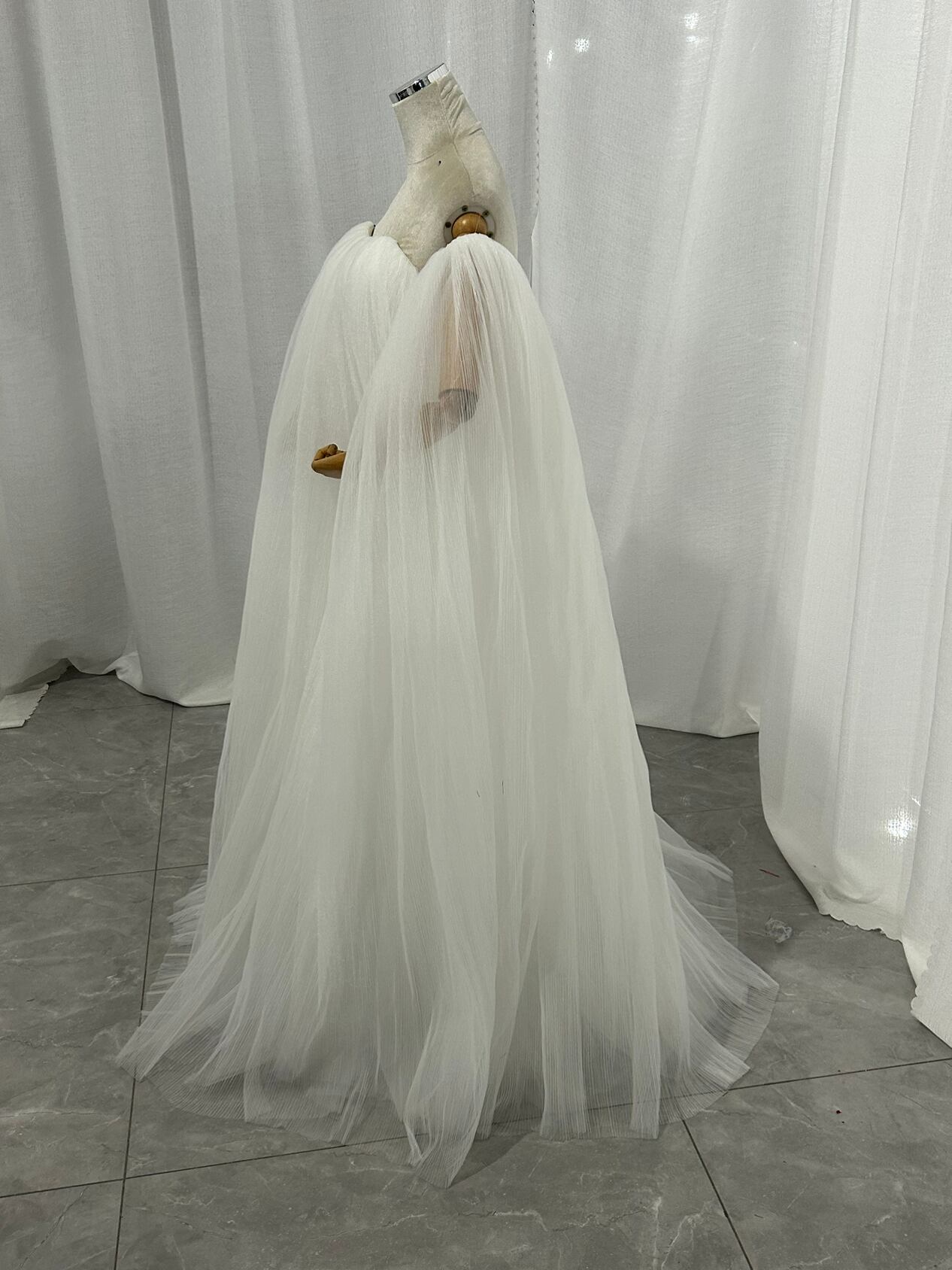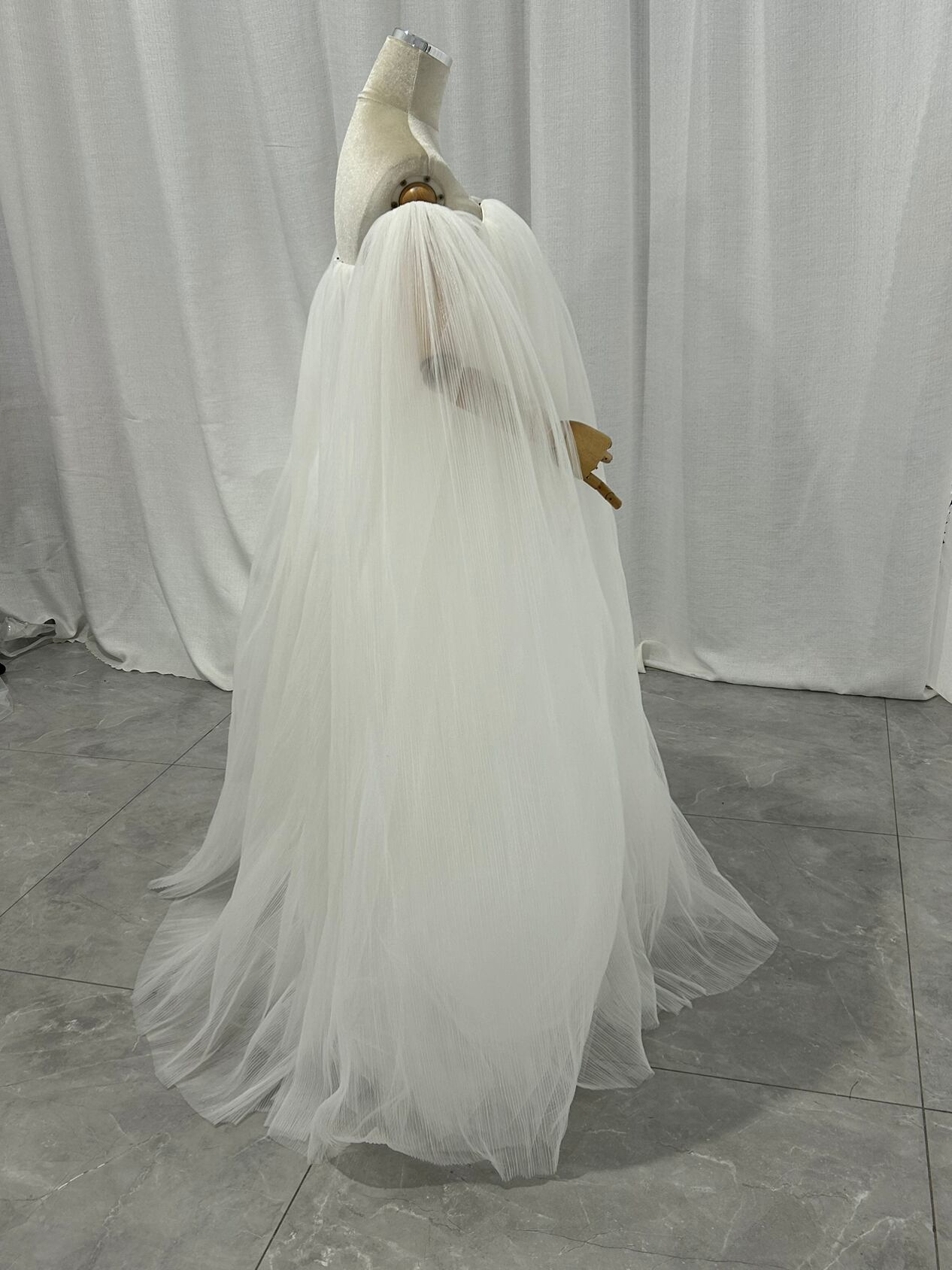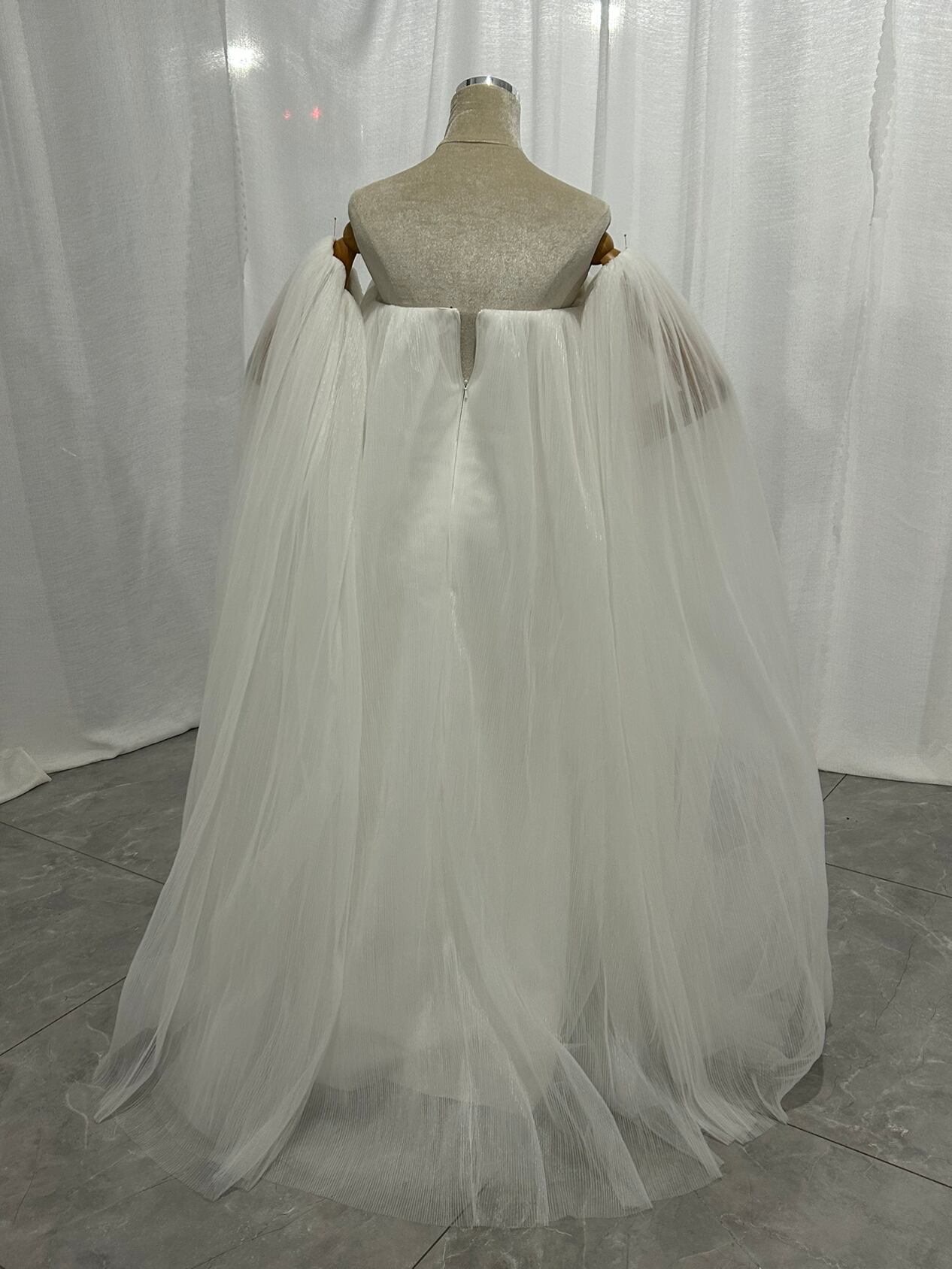 ウエディングドレス 揺らめく裾 ふわふわ袖 ロング プリーツドレス 結婚式 抜群におしゃれ度が際立つ 花嫁