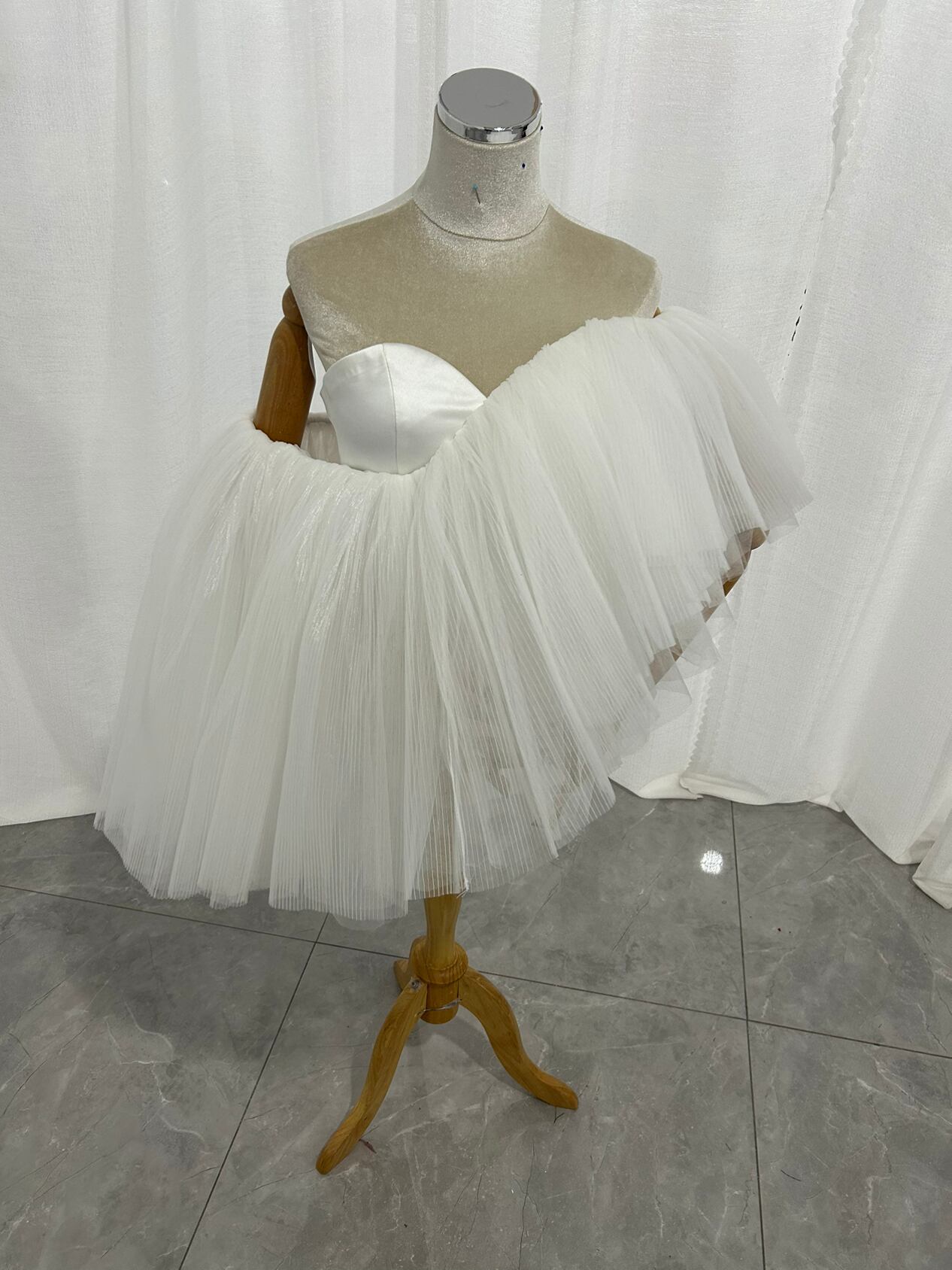 トップス スリット アシンメトリードレス オフホワイト ファスナー オフショルダー 花嫁/ウェディングドレス
