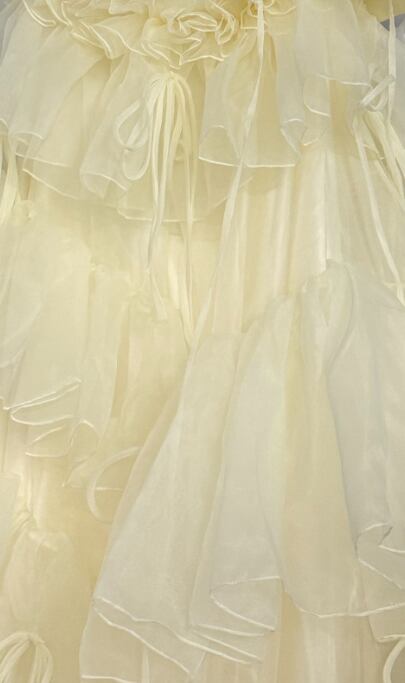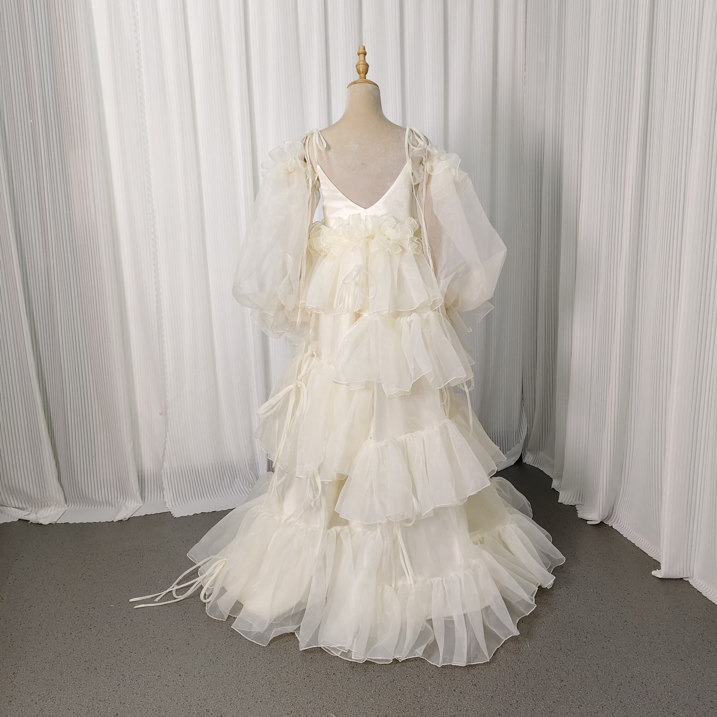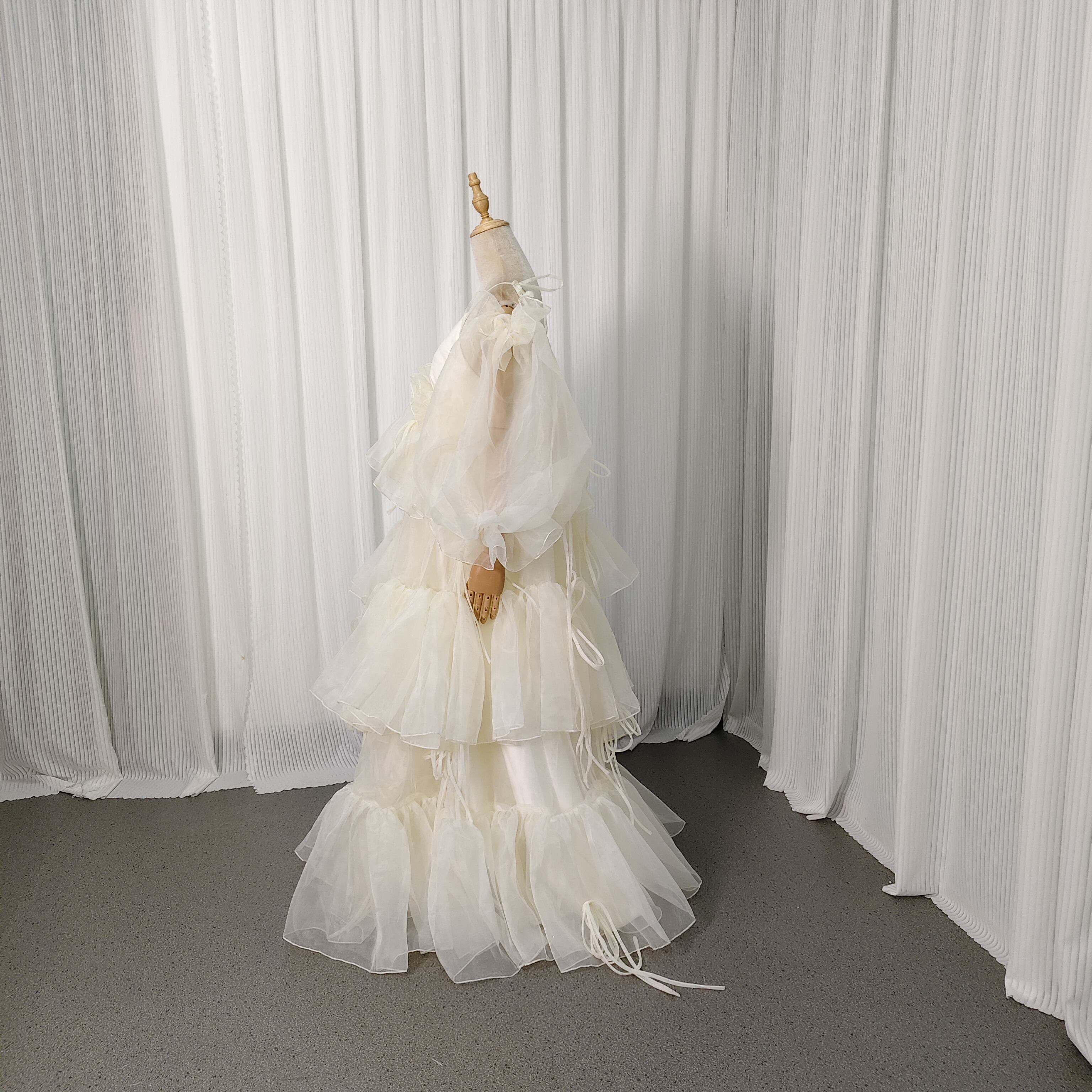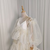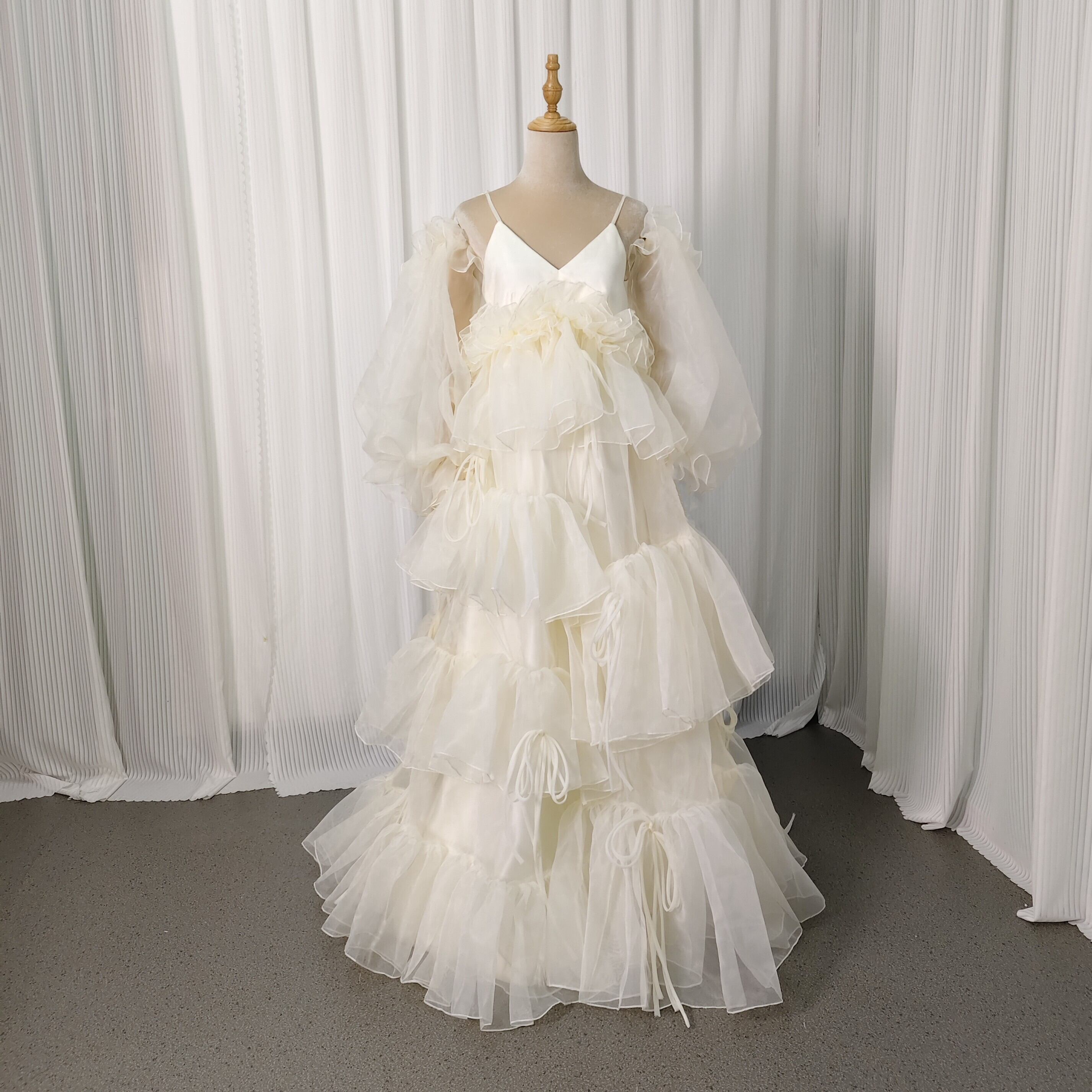 パーティードレス 薄シャンパン色 上質オーガンジー 取り外し可能な付け袖 花嫁 床付く 前撮り 二次会