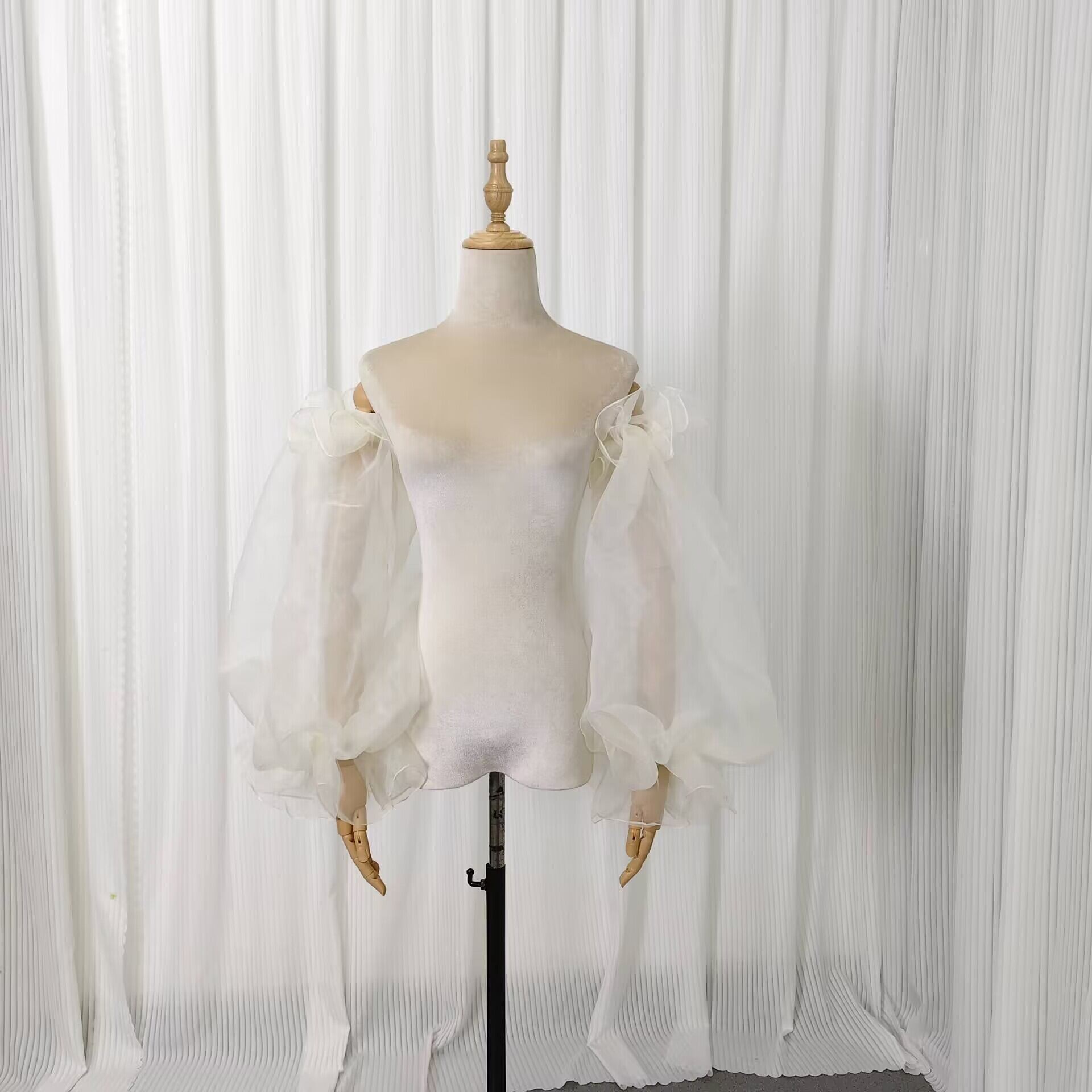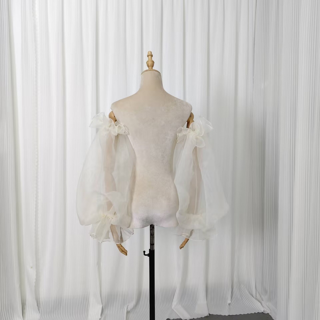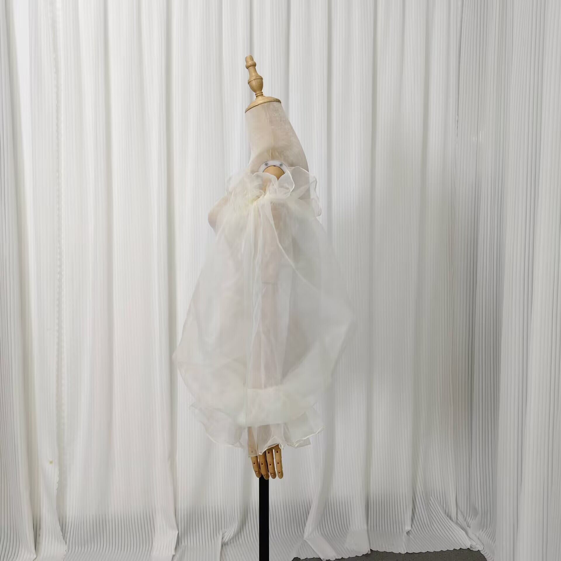 パフスリーブ 取り外し可能な付け袖 薄シャンパン色 上質オーガンジー オーダーメイド ストレッチ 前撮り