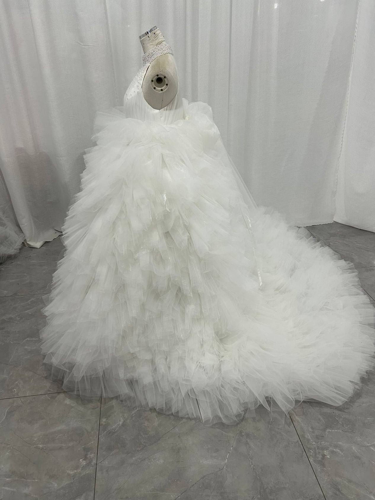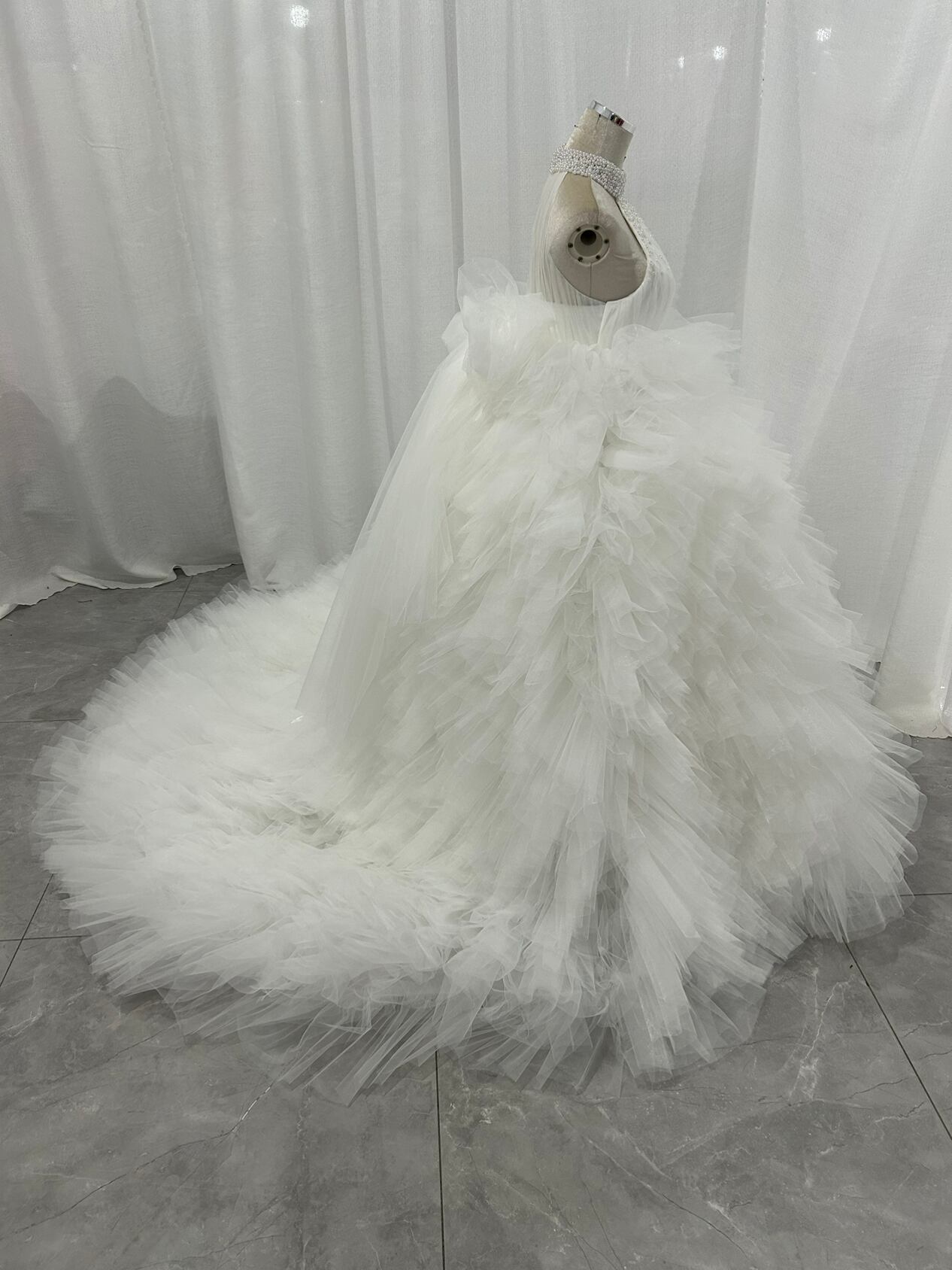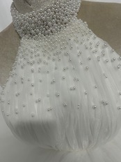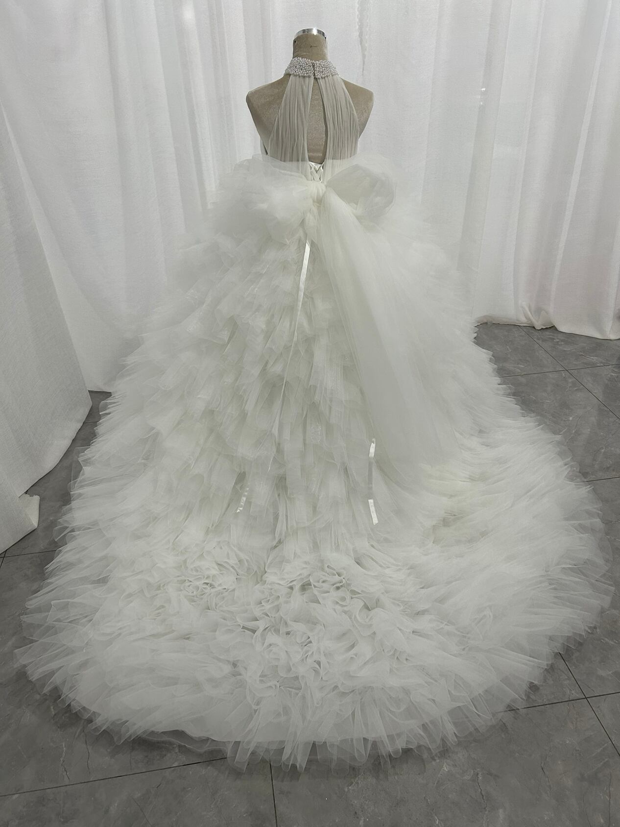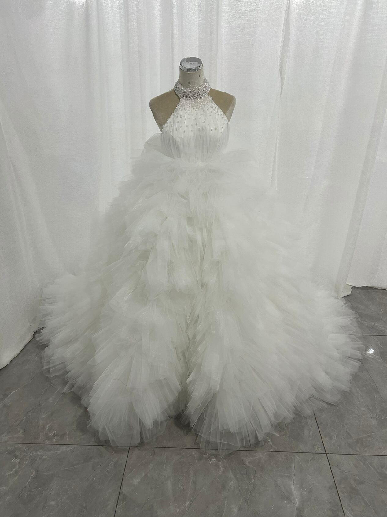 ウェディングドレス アメスリ パール もこもこドレス プリンセスライン ソフトチュール 花嫁 ノースリーブ