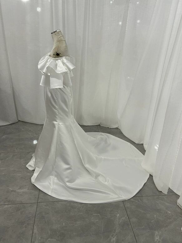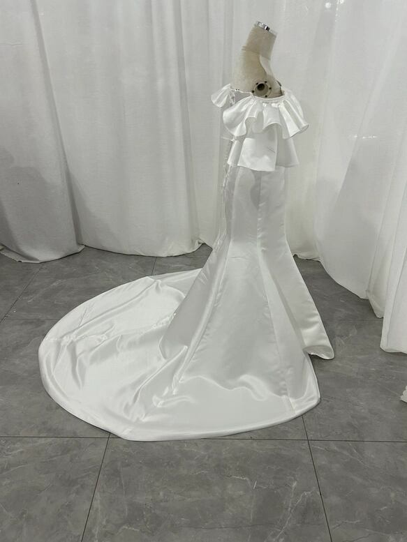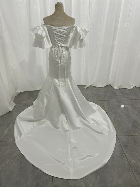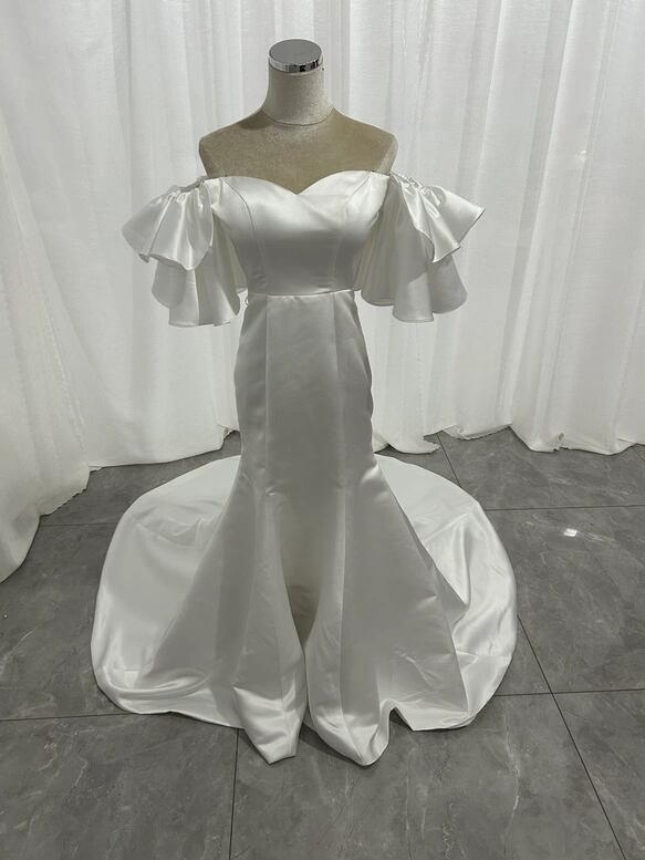 ウェディングドレス オフショルダー マーメイドライン ロングトレーン フリル袖 エレガント 拳式