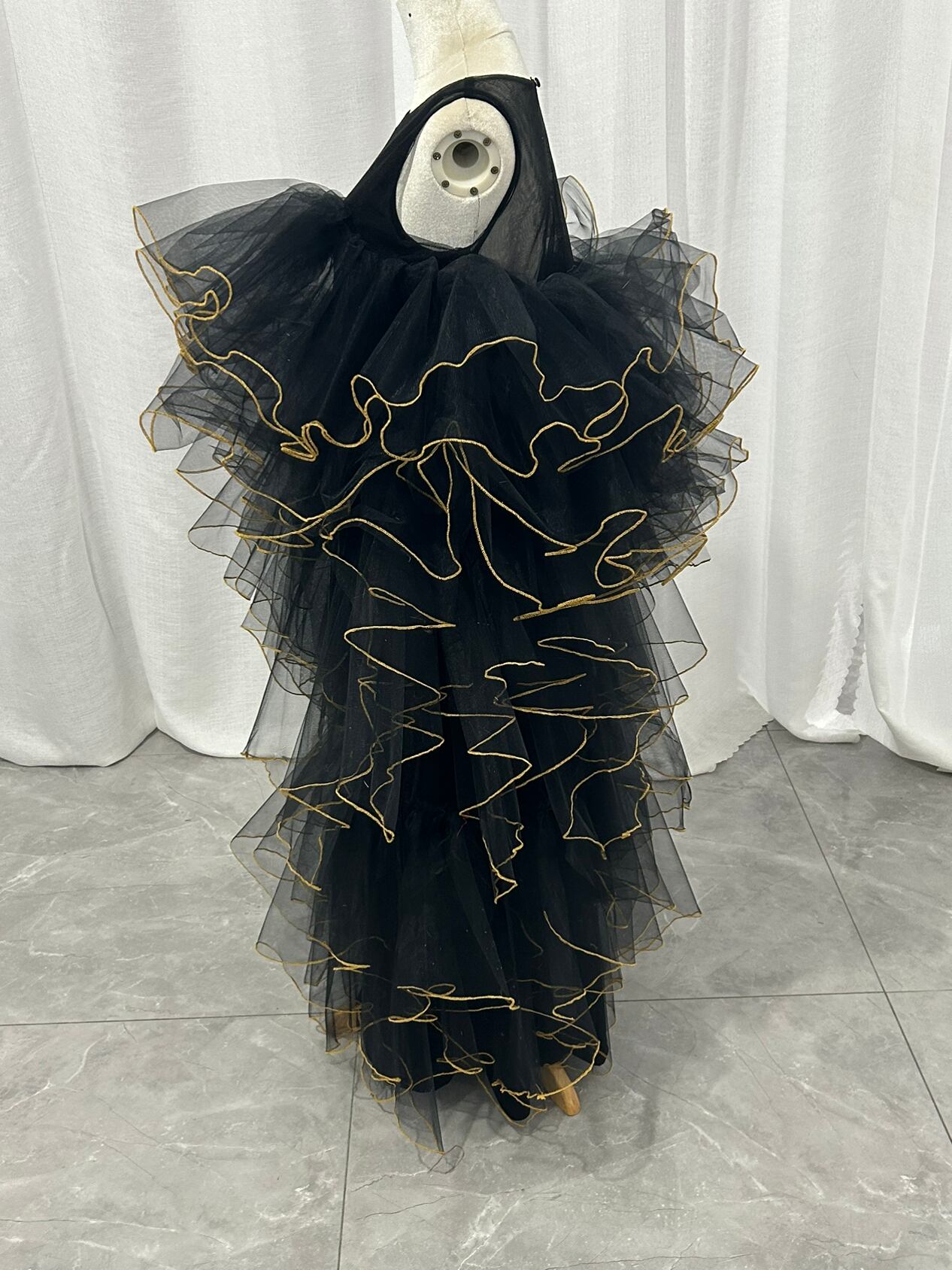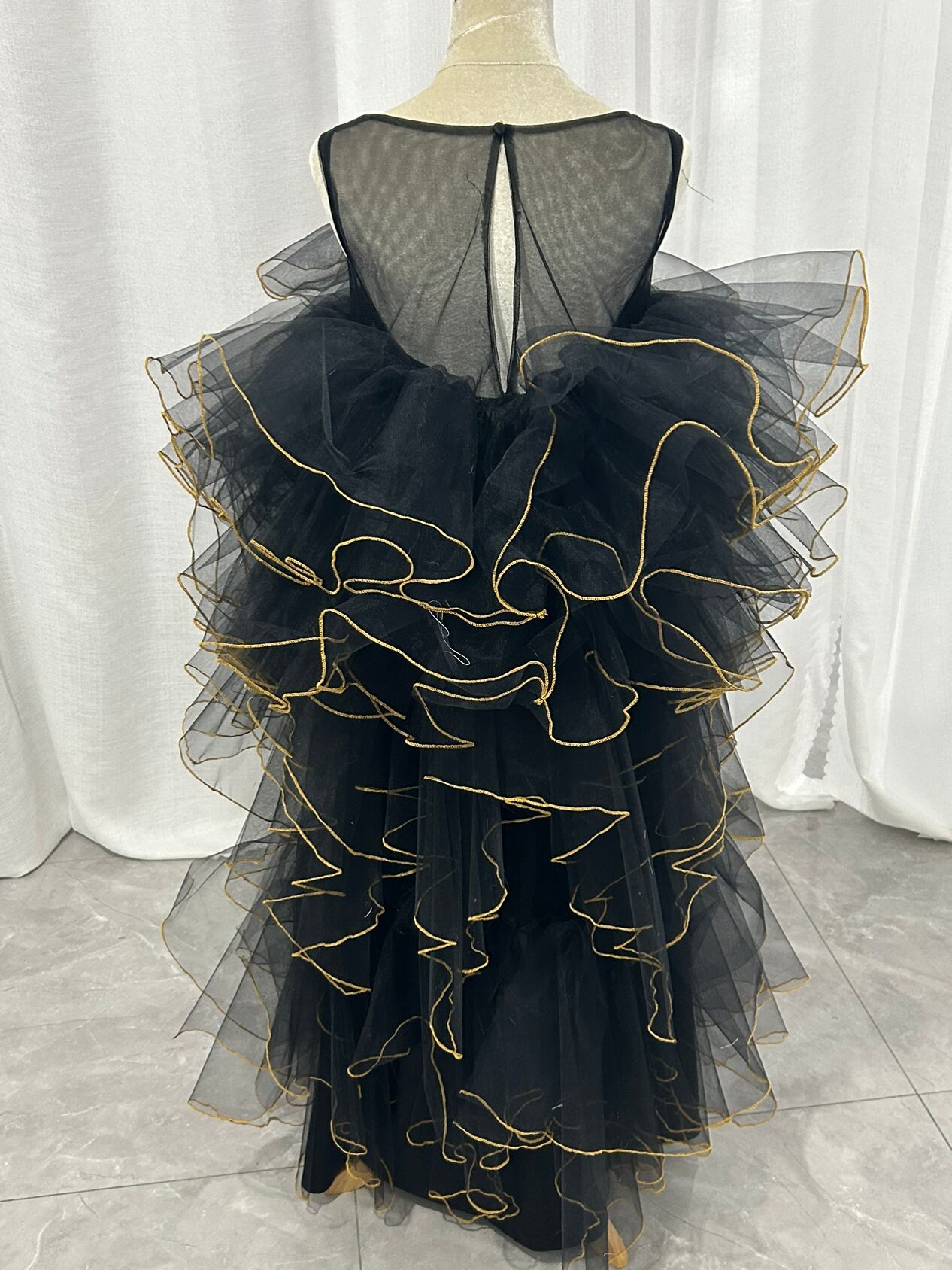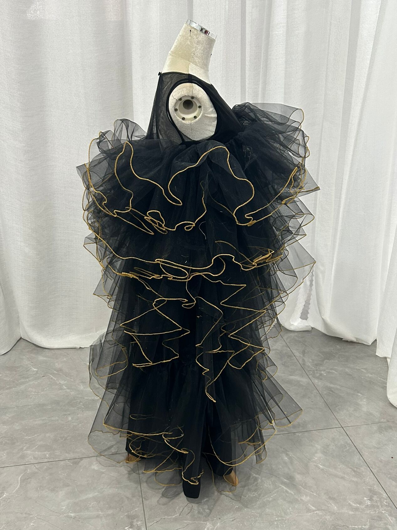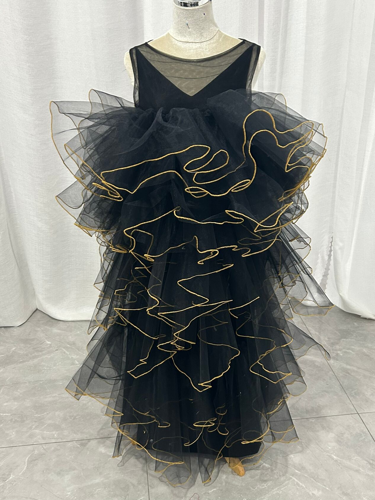 カラードレス パーティードレス ブラック ラッフルフリル ツーピース 二次会 音楽会 前撮り