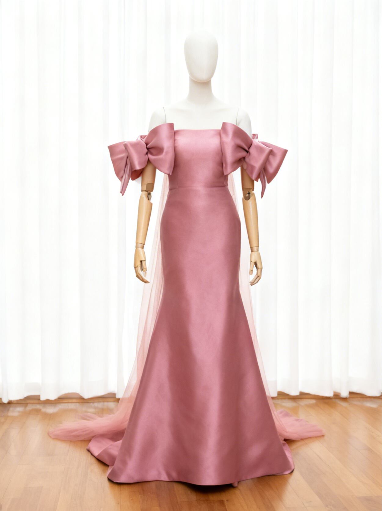 カラードレス フリル袖 マーメイドライン ラベンダーピンク ミカドサテン 優雅なシルエット ブライダル
