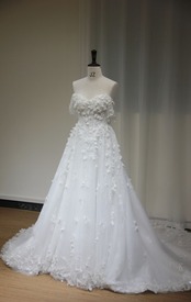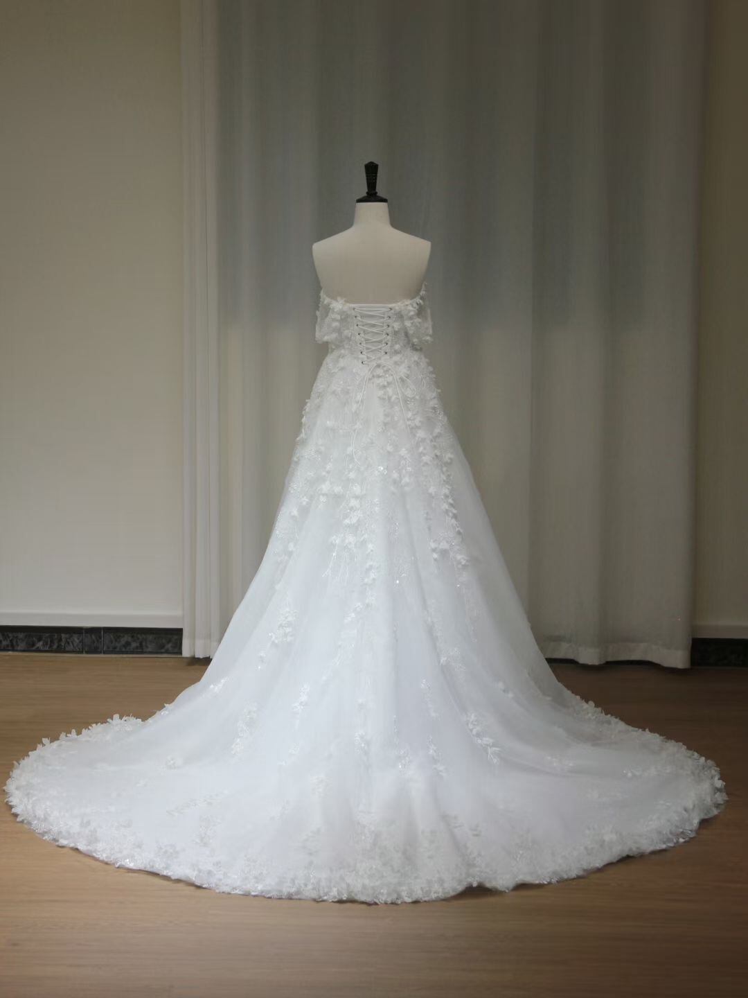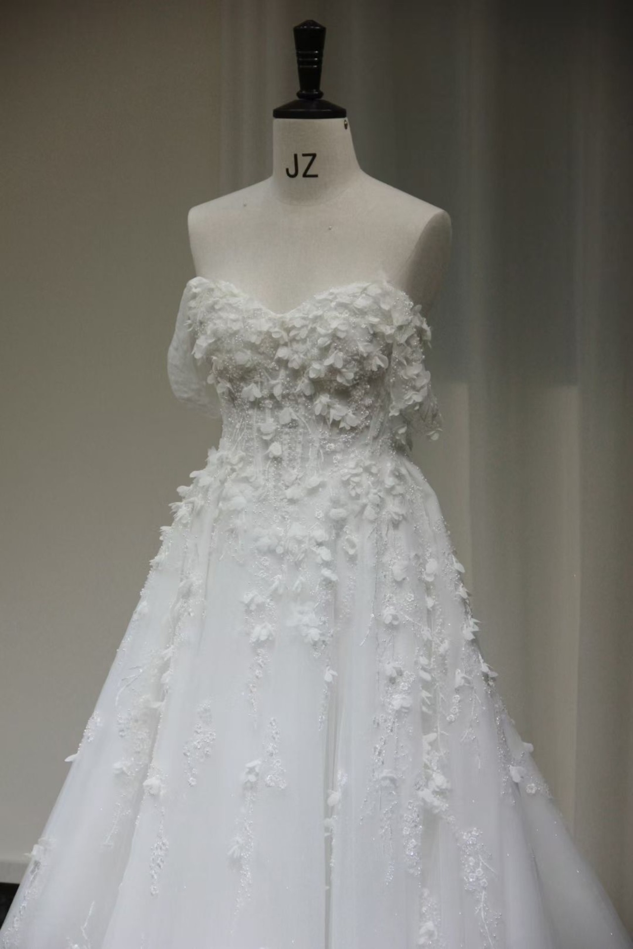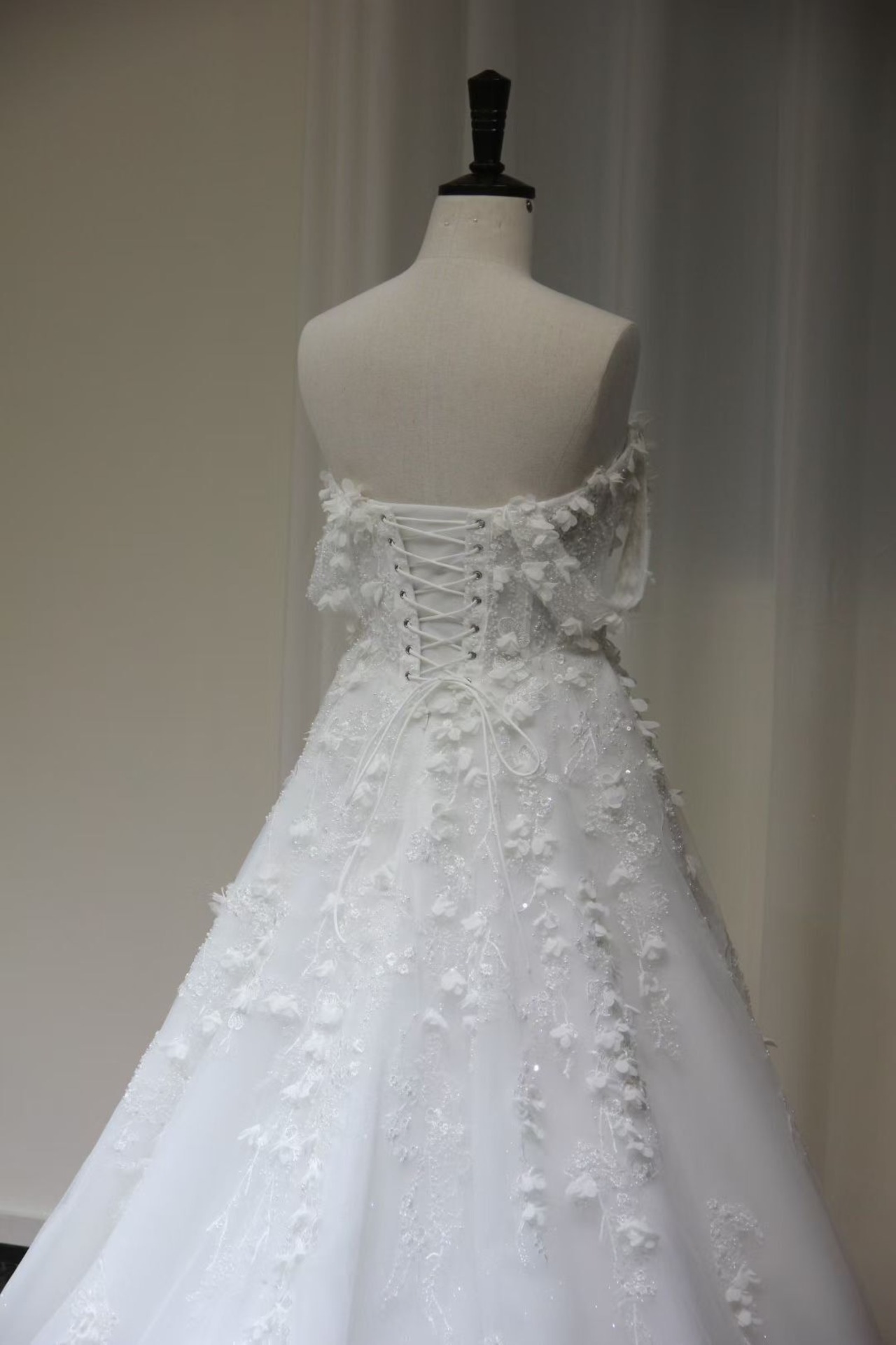 ウェディングドレス オフショルダー 3D立体レース刺繍 Aライン 結婚式/披露宴 プリンセスライン
