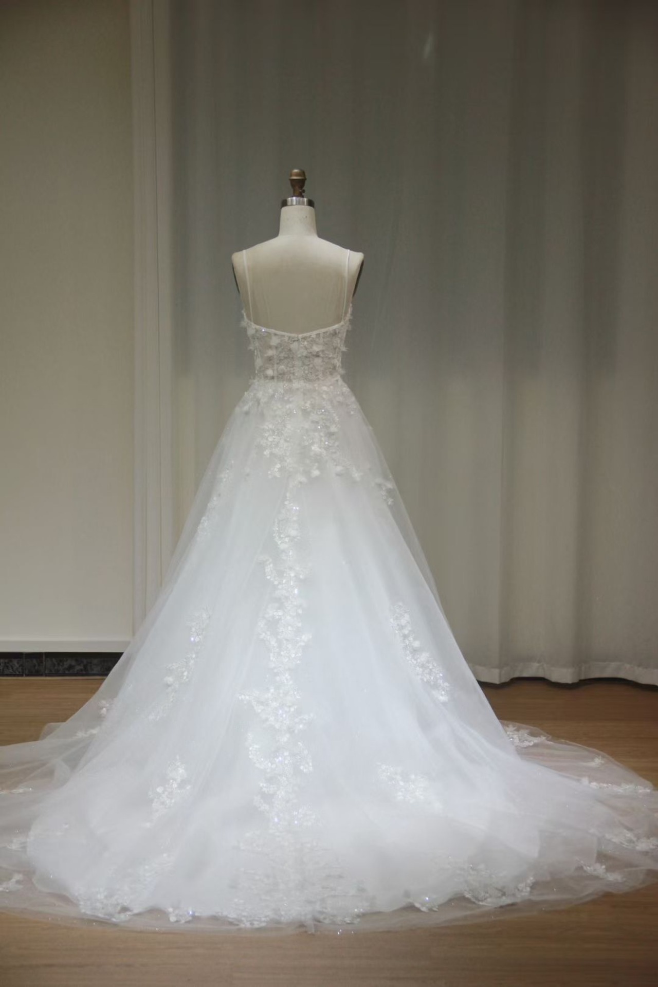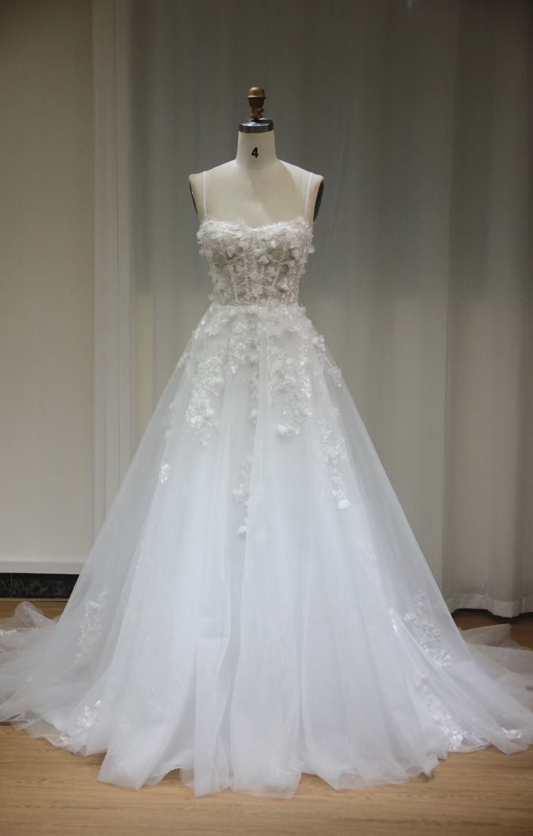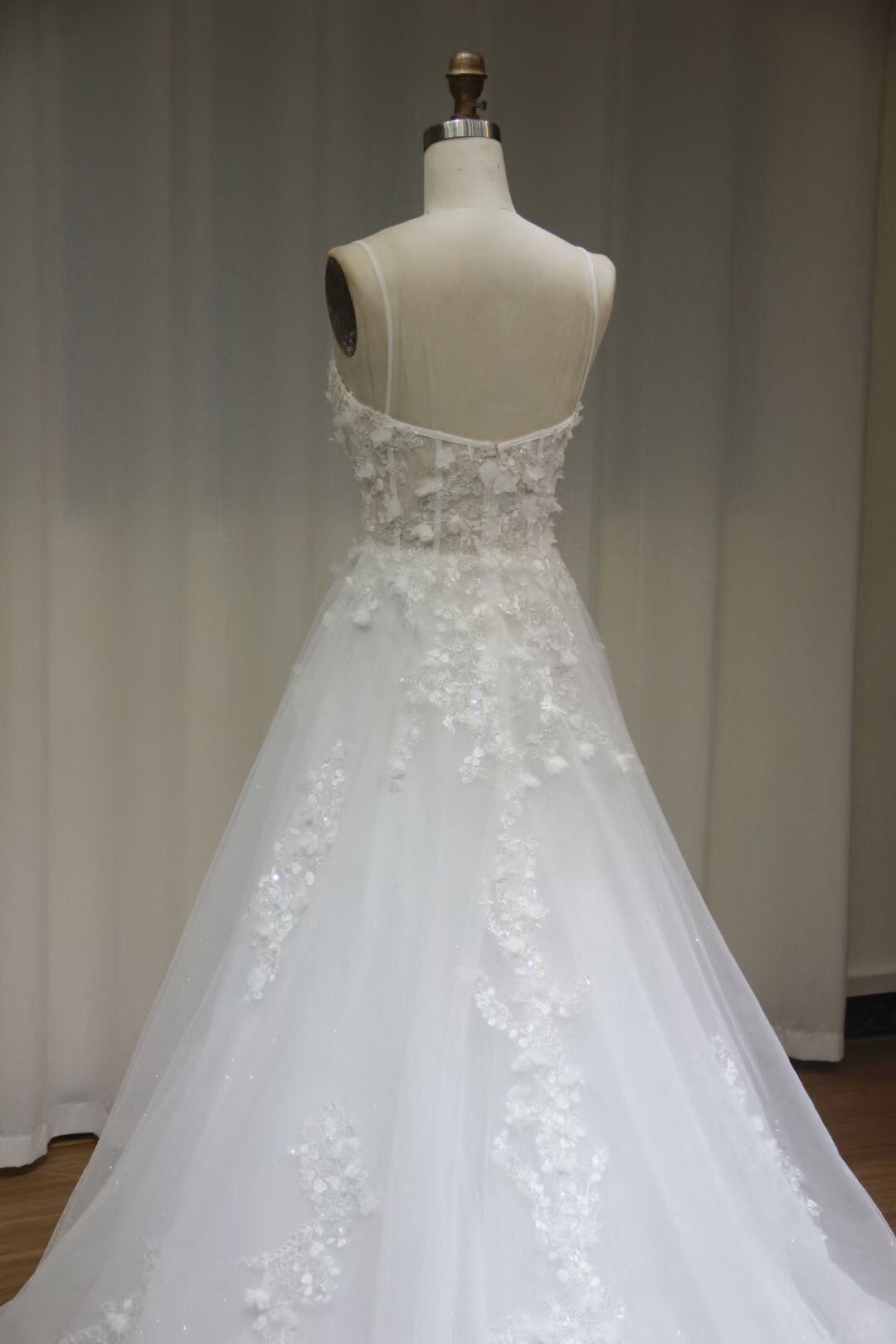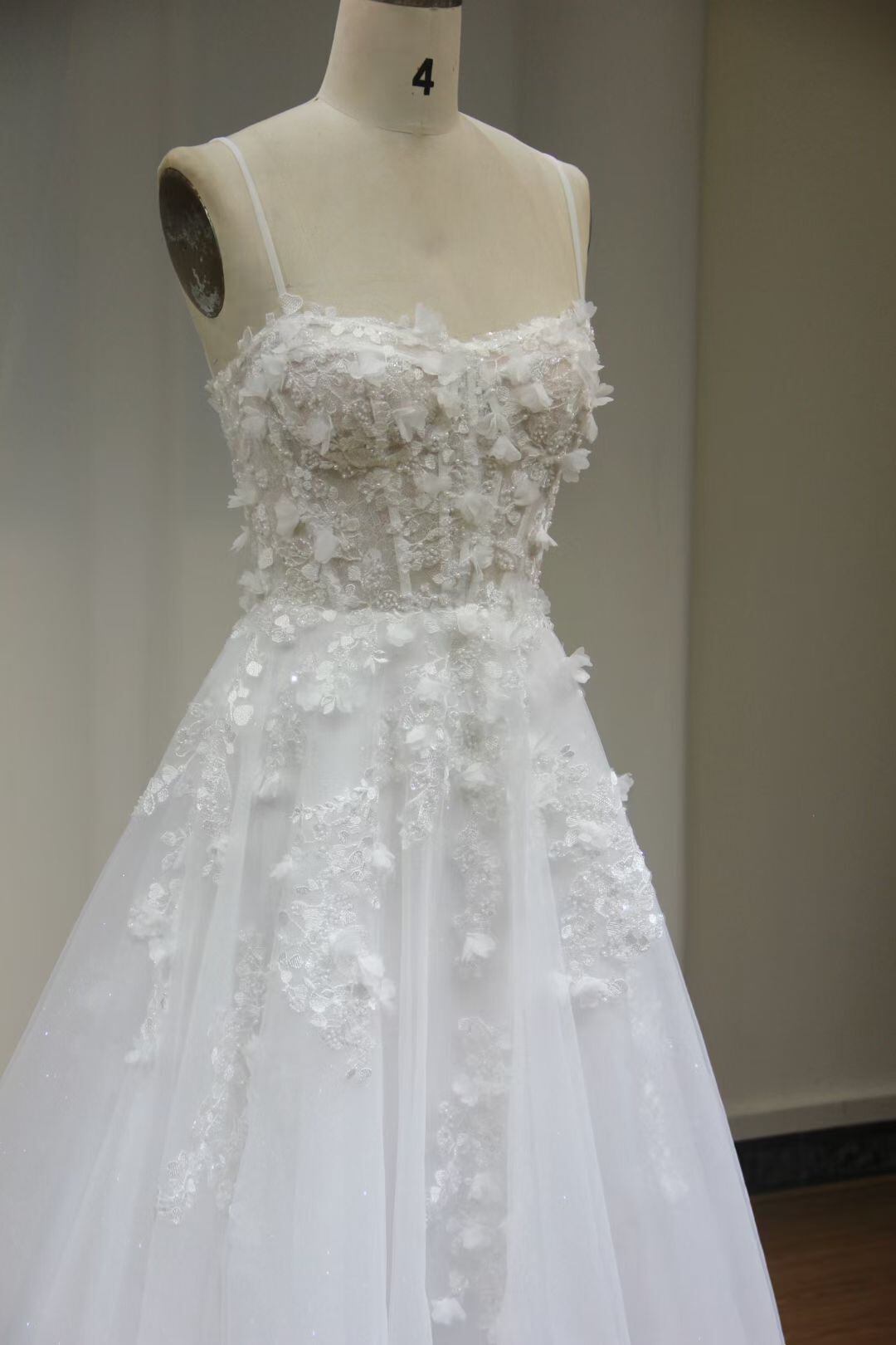 ウェディングドレス キャミソール 花モチーフ チュールスカート 背中見せ 結婚式 憧れのドレス