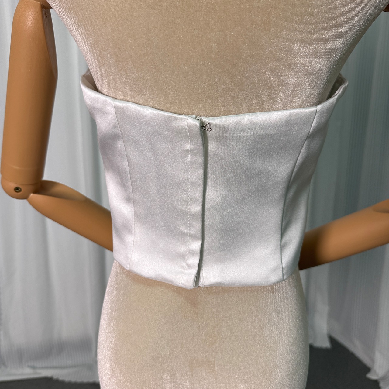 トップス 光沢サテン ベアトップ ファスナー ミニ 花嫁/ウェディングドレス 二次会 前撮り