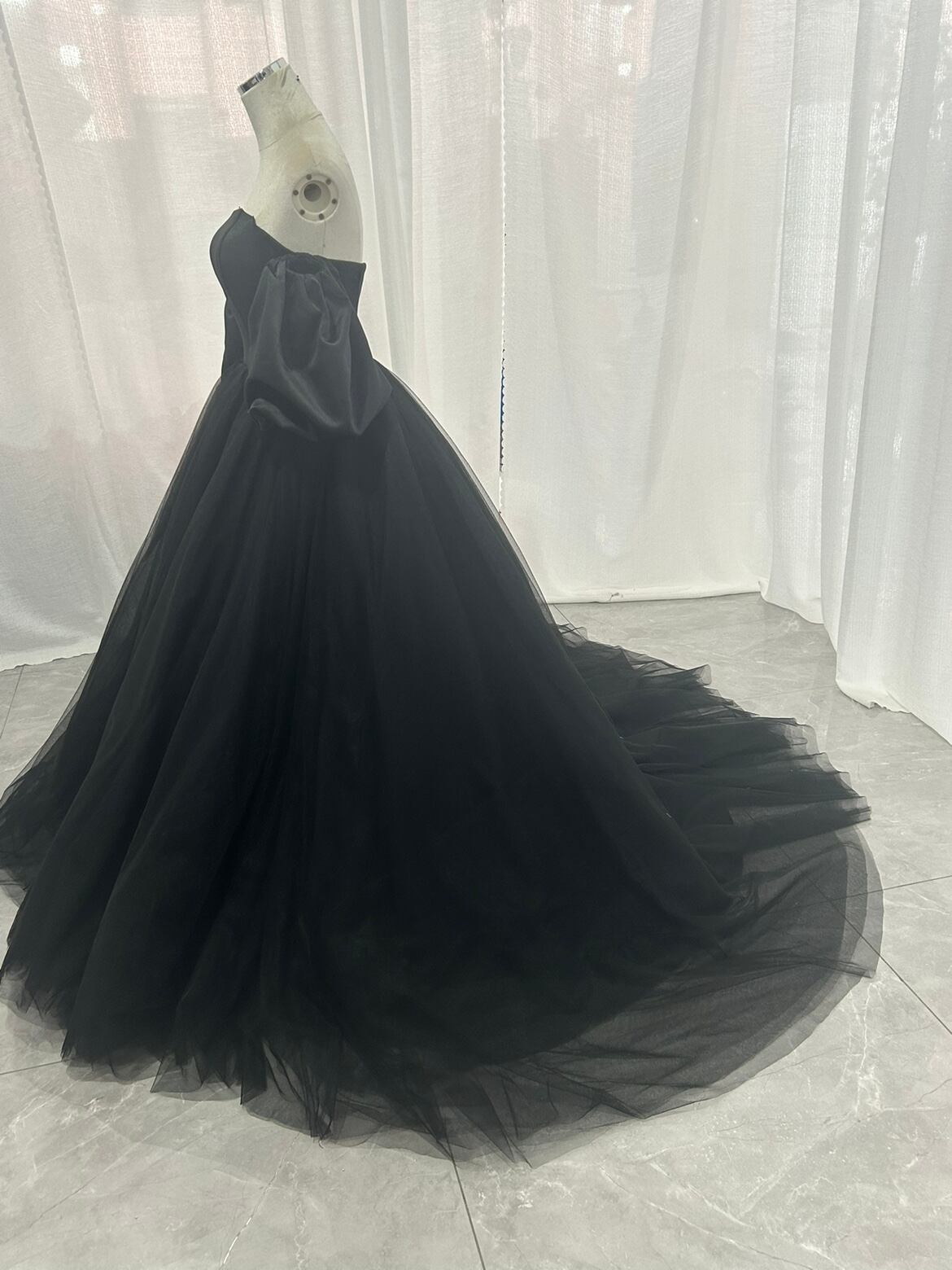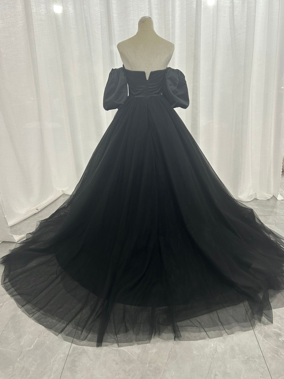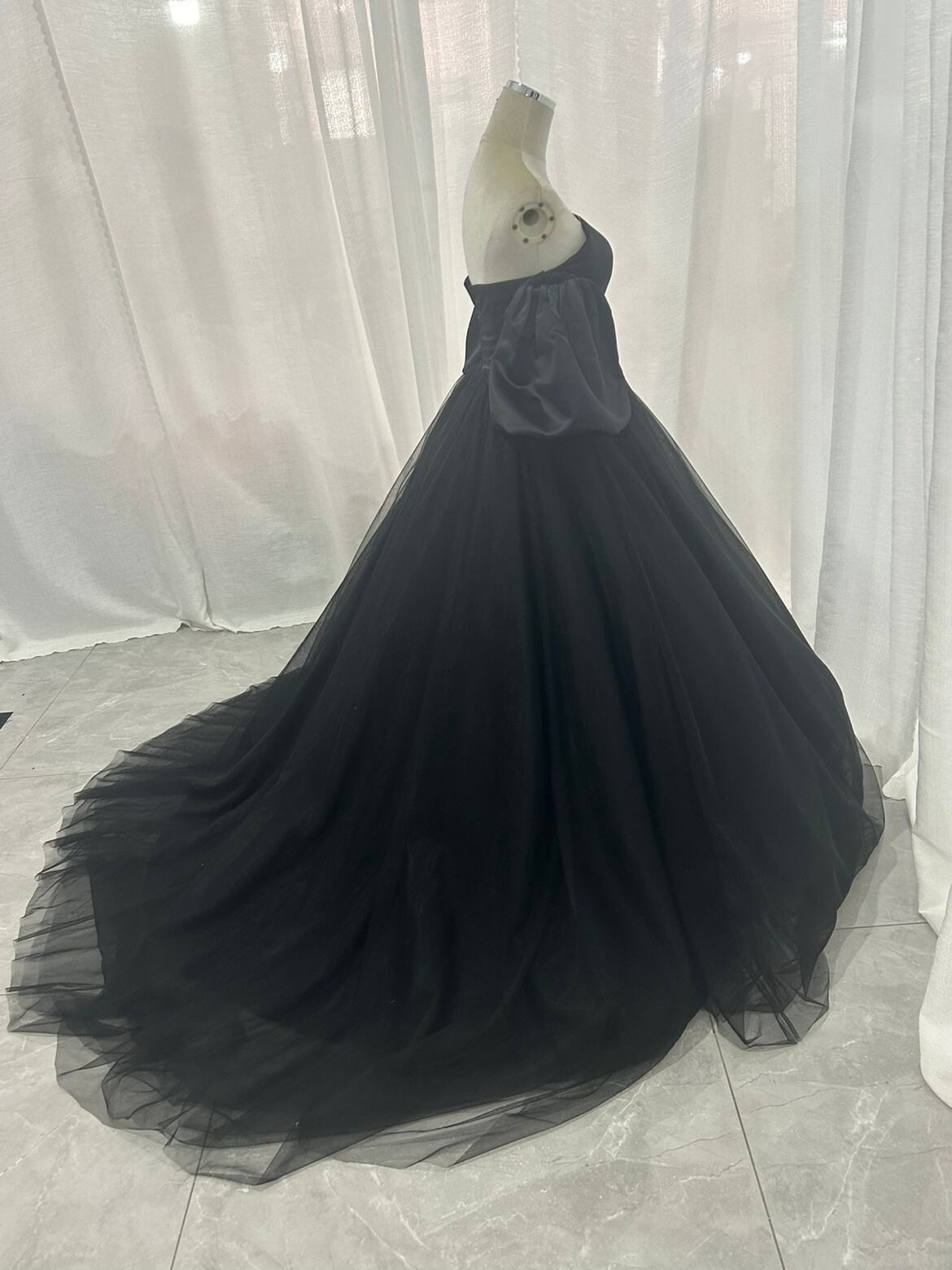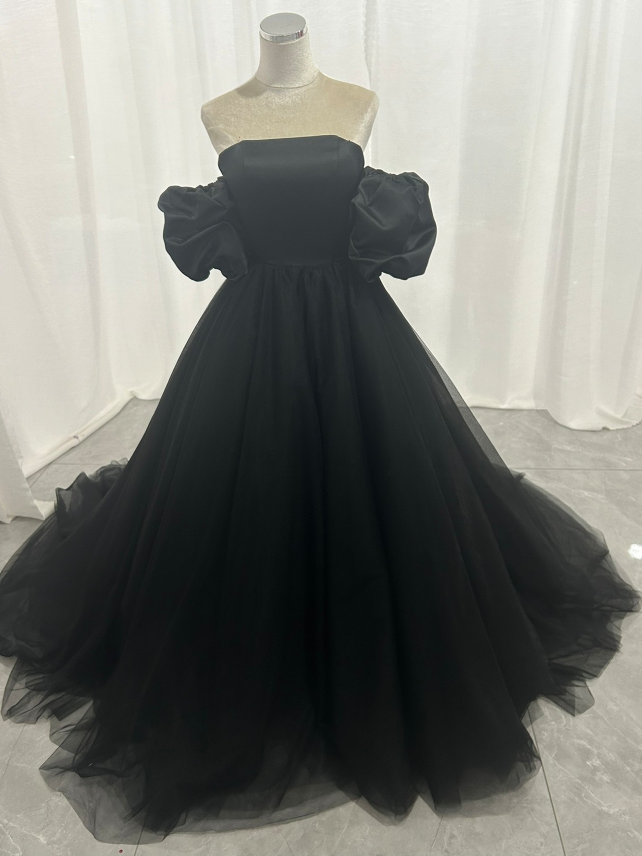 カラードレス パフスリーブ ブラック チュールスカート エレガント 前撮り