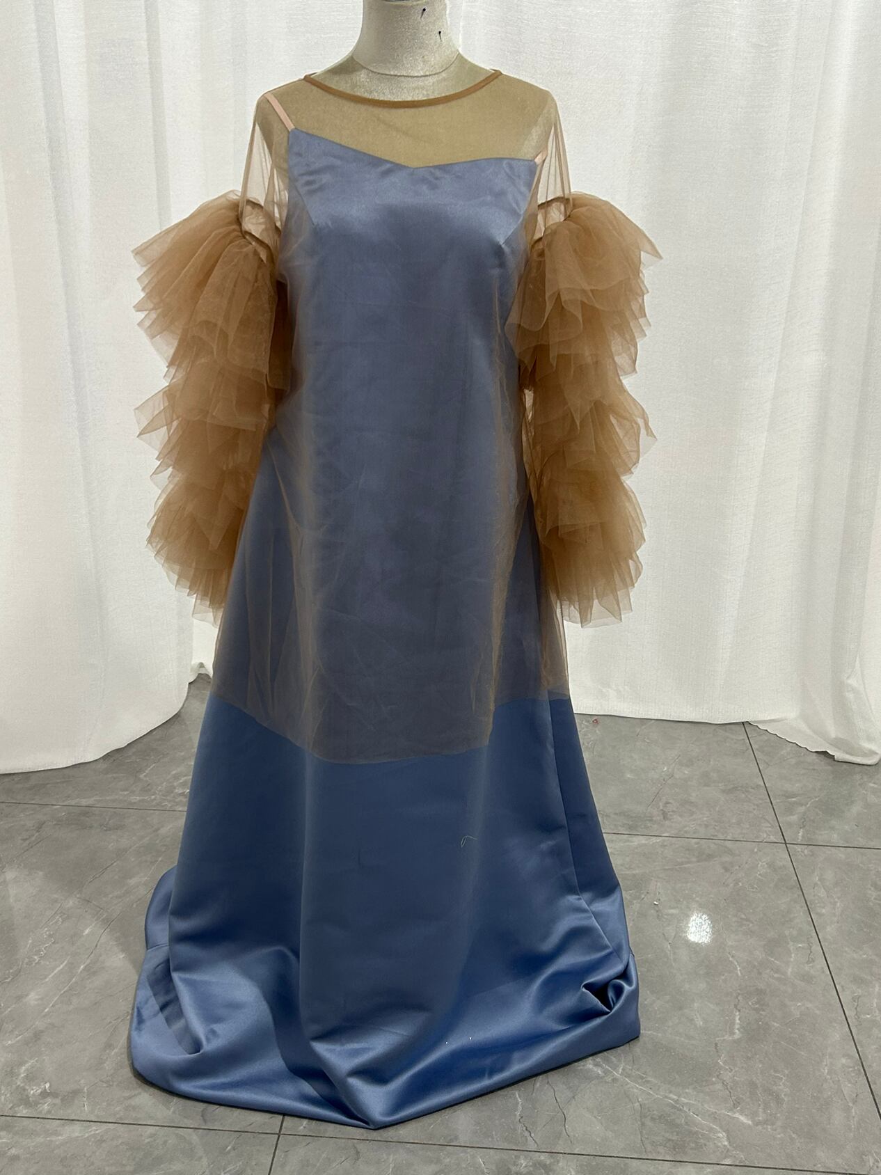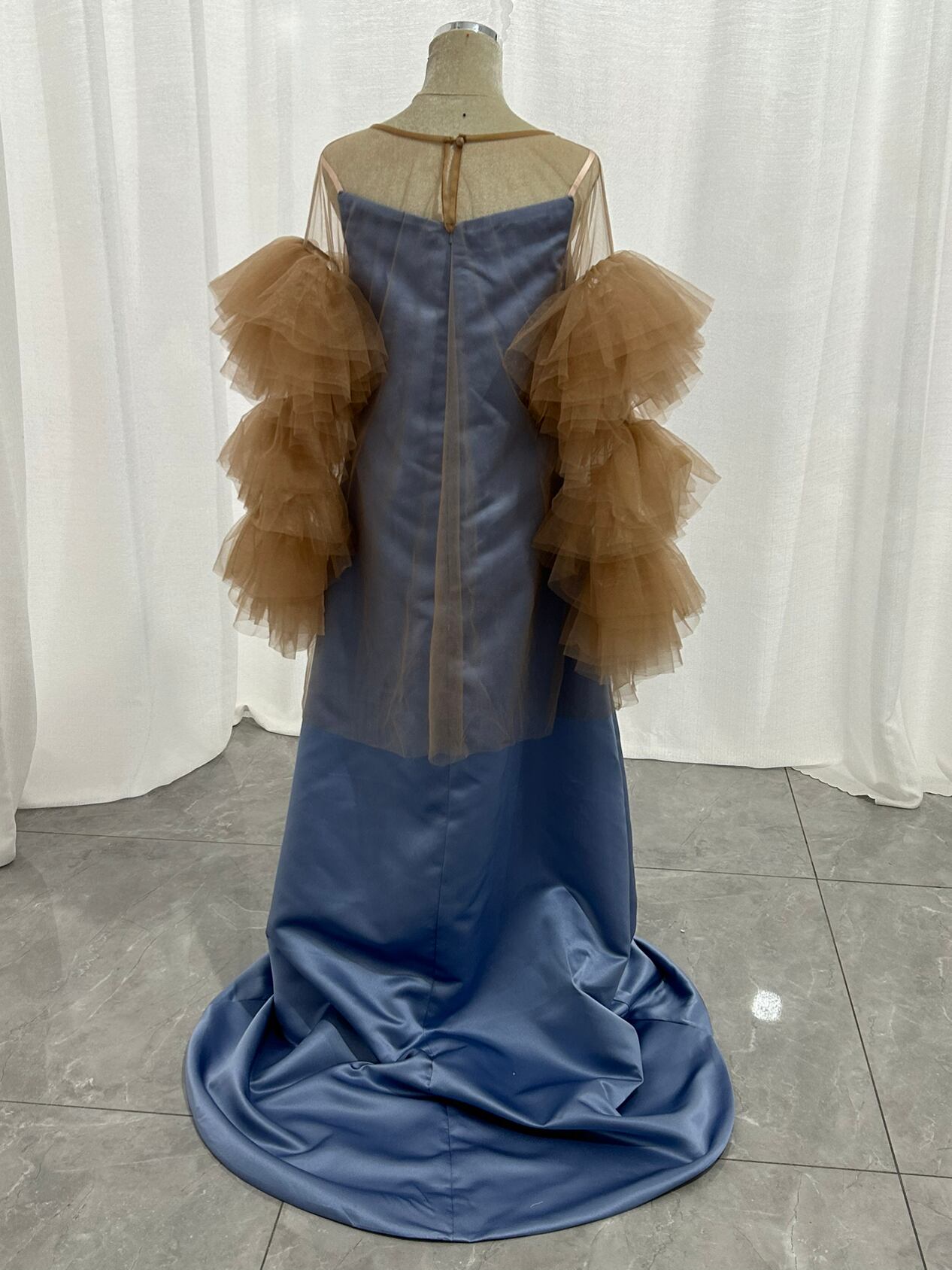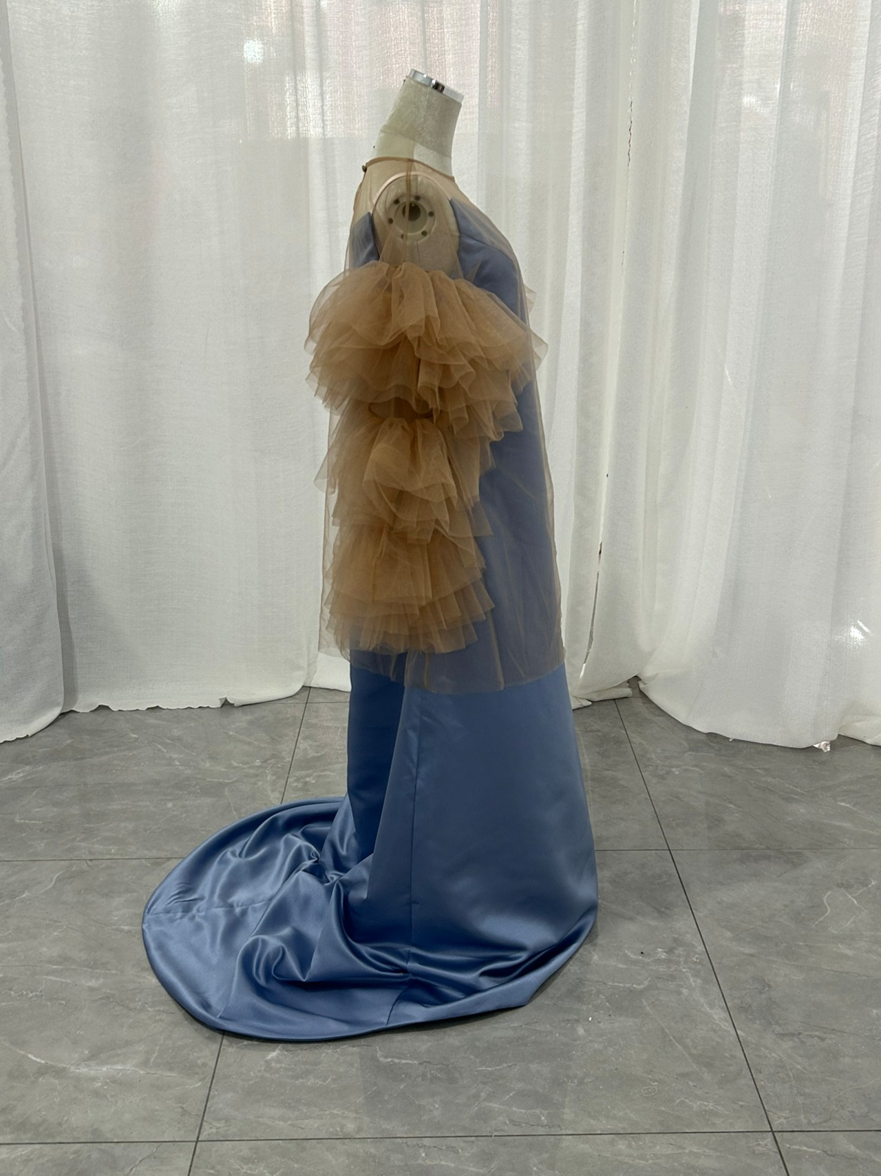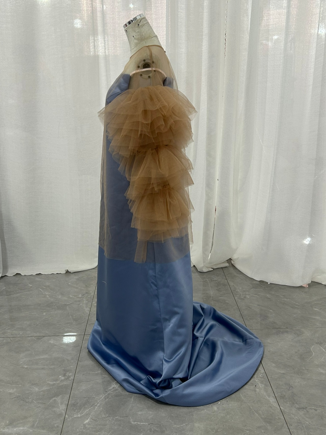 パーティードレス ツーピース 水色 ブラウン 披露宴/結婚式 前撮り 抜群のおしゃれ見え 光沢サテン