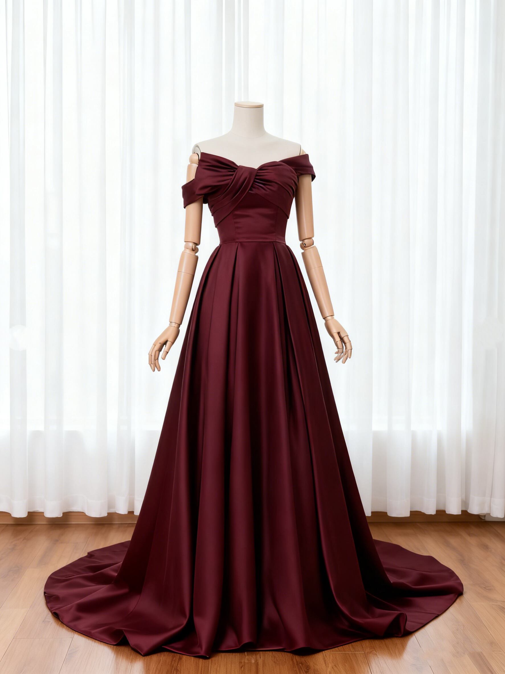 カラードレス ボルドー色 オフショルダー Aライン ハンドドレープ 前撮り ピアノ演奏 エレガント