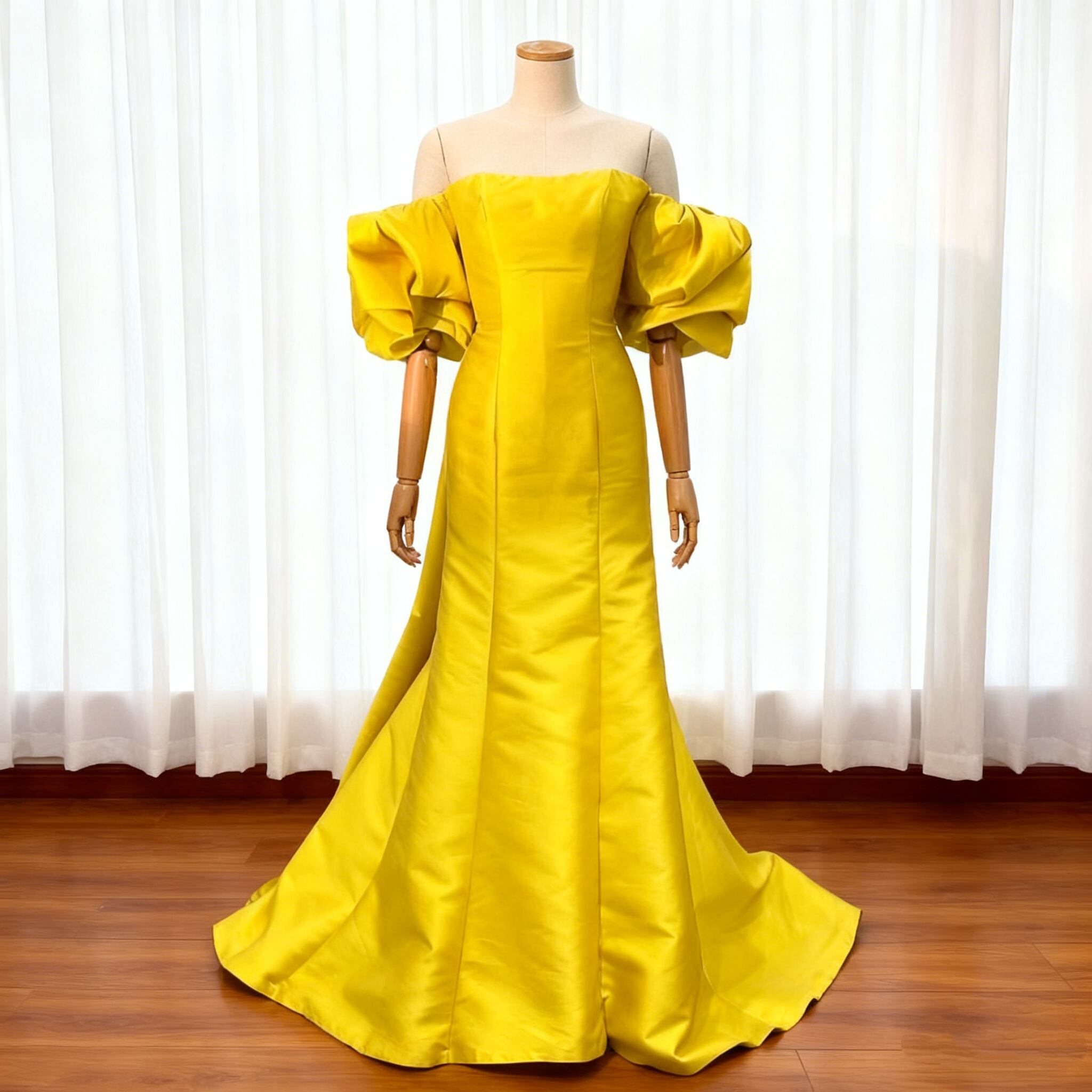 パ ーティードレス イエロー マーメイドライン パフスリーブドレス 抜群におしゃれ度が際立つ 結婚式