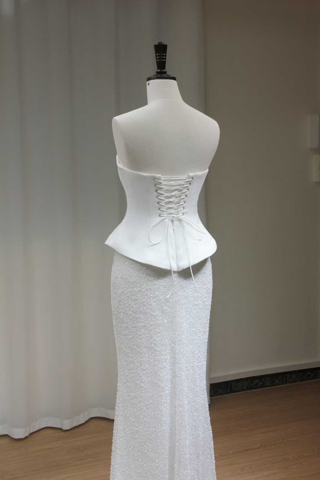 パーティードレス マーメイドライン ベアトップ パール 抜群におしゃれ度が際立つ ミモレ丈 セクシー 2次会