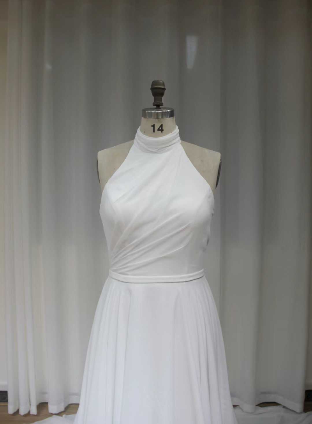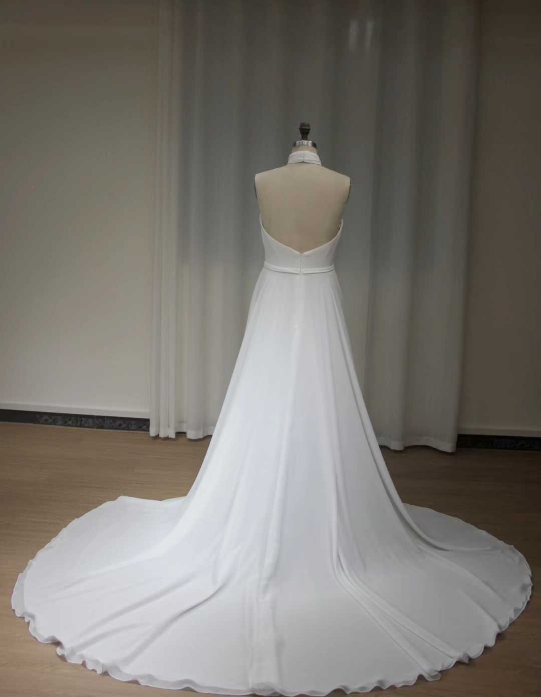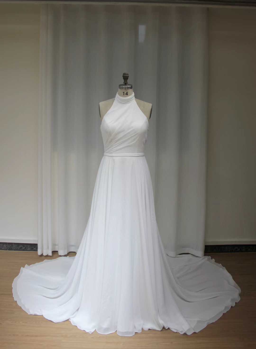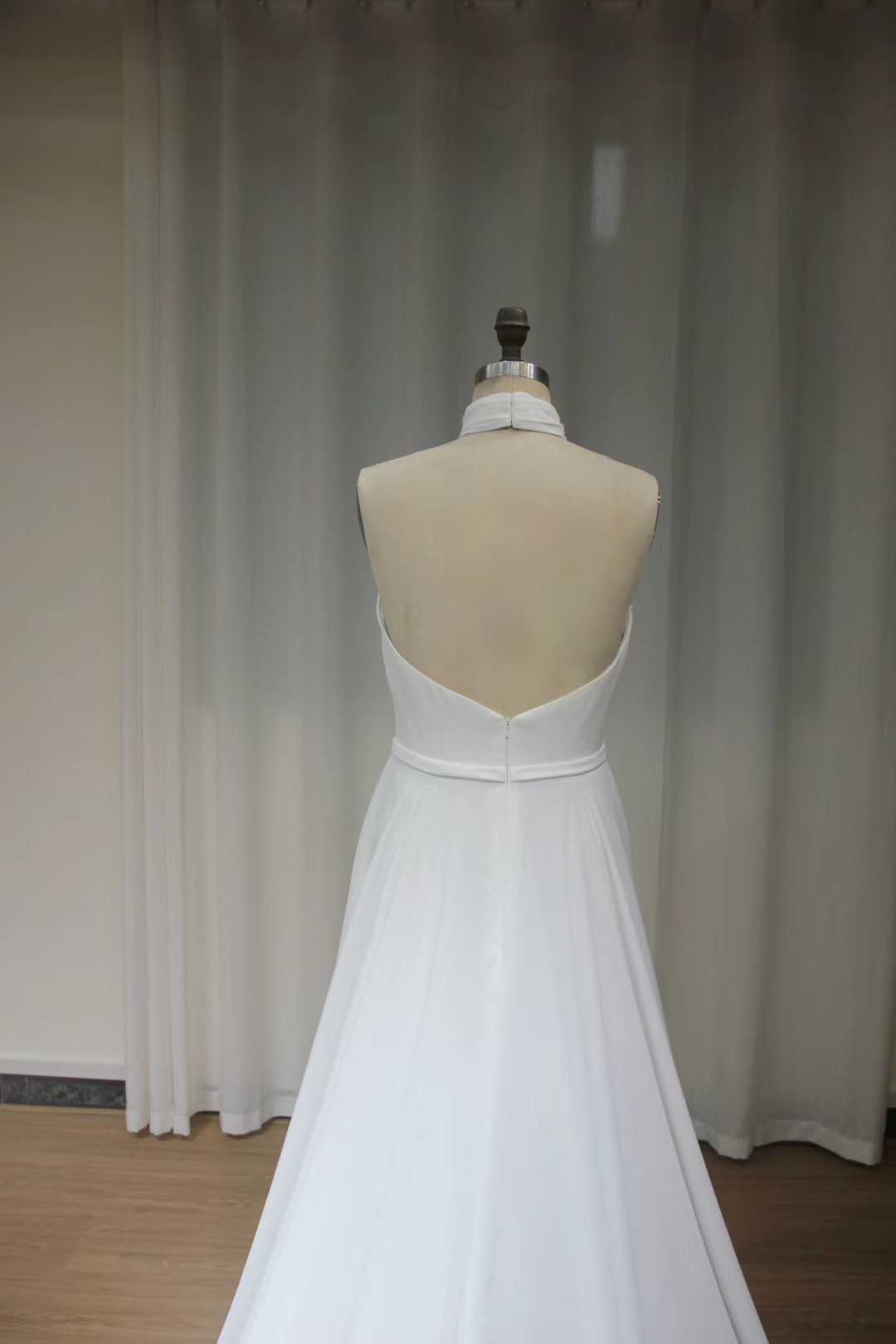 ウェディングドレス ホルターネック バックレス 海外挙式ドレス オフホワイト 前撮り