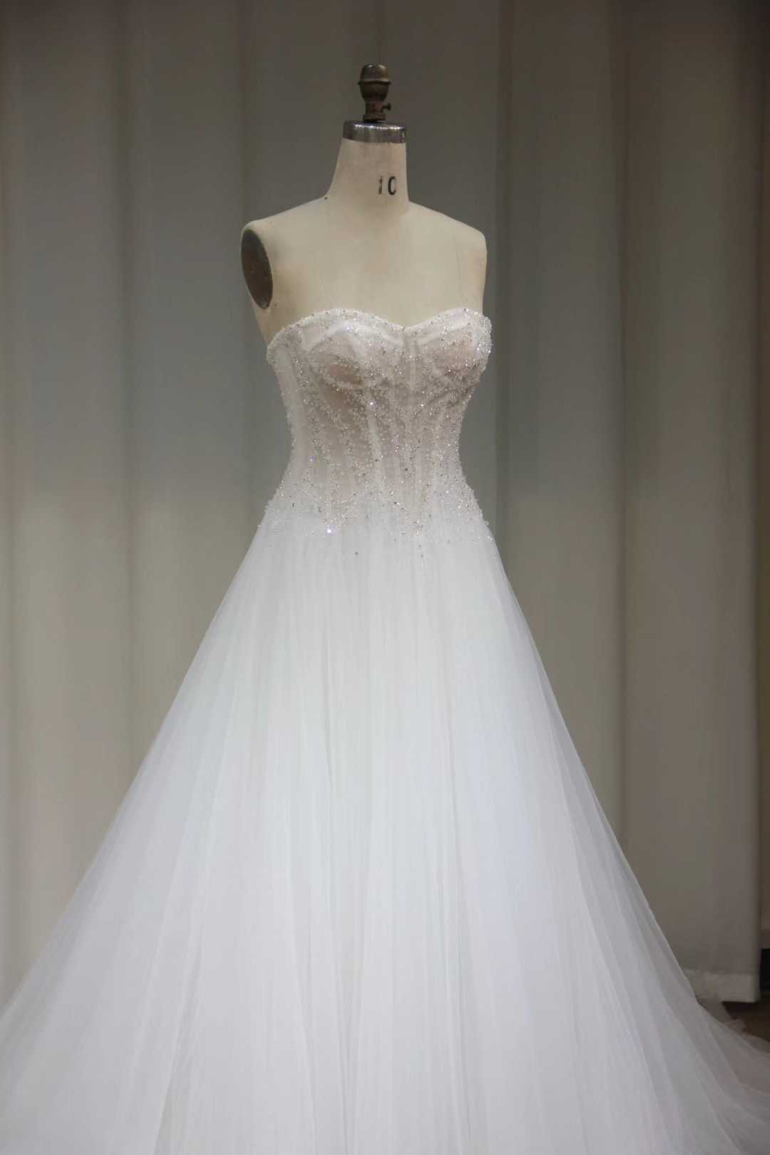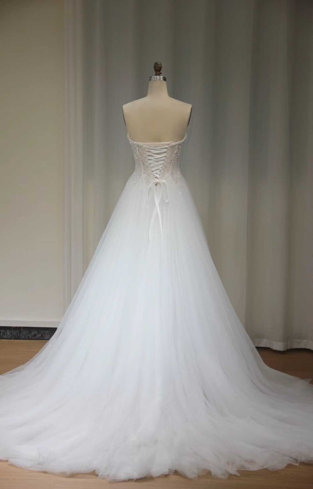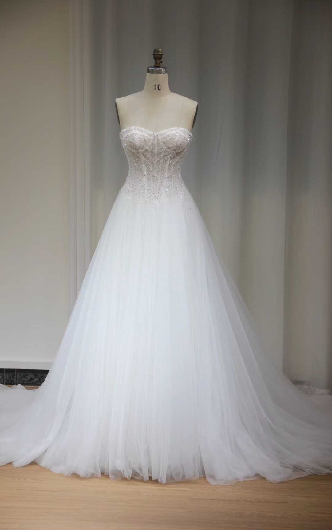 ウエディングドレス ベアトップ ビジュードレス 柔らかく重ねたチュールスカート ビスチェドレス ブライダル