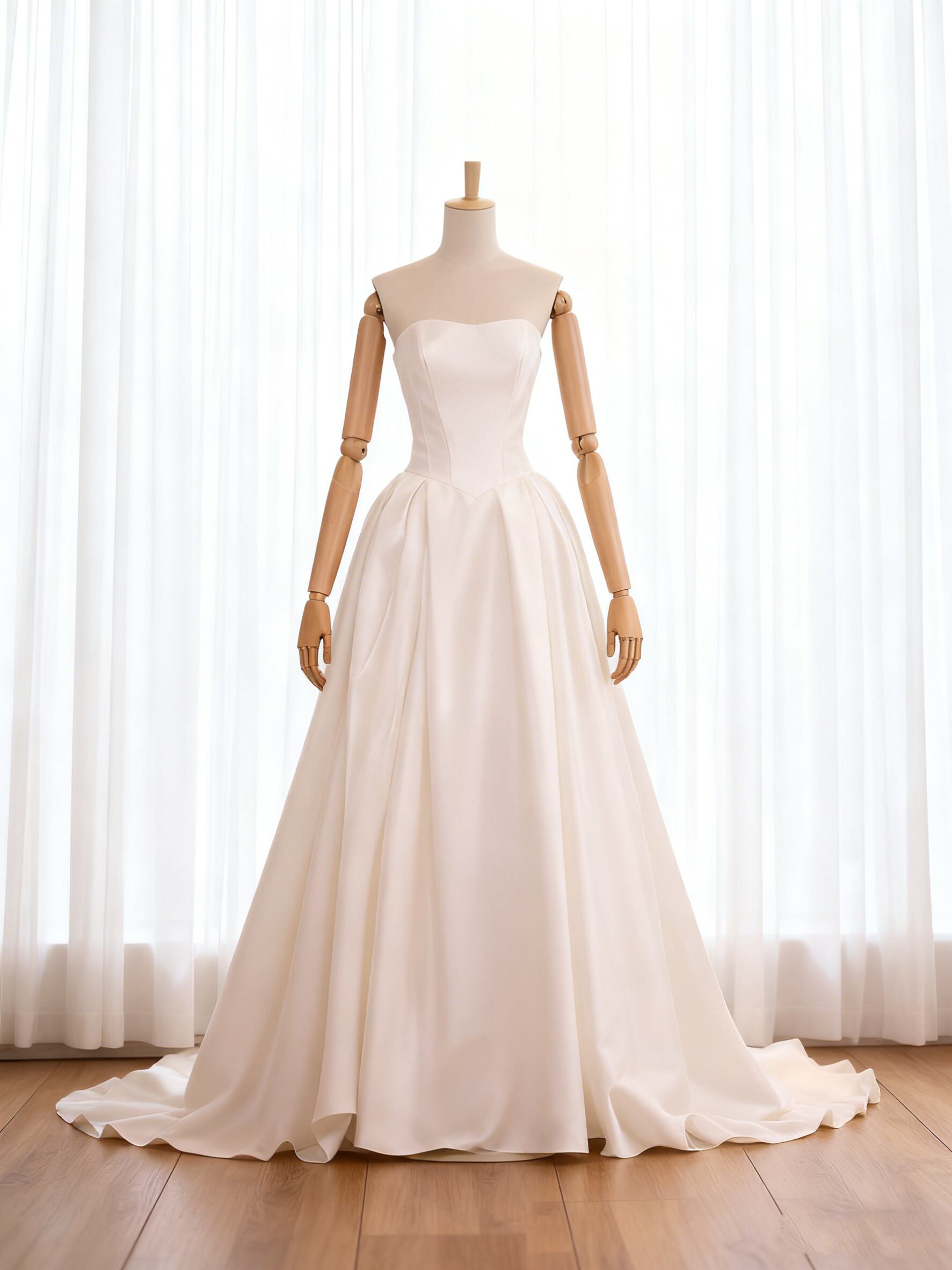 ウェディングドレス ビスチェドレス Aライン 光沢サテン 優雅なシルエット スレンダーライン 結婚式