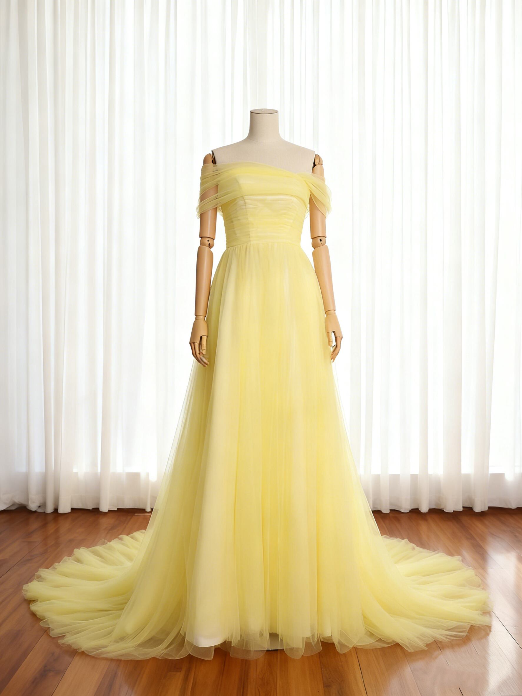 華やか! カラードレス オフショルダー イエロー Aライン オートクチュール ハンドドレープ 前撮り 二次会