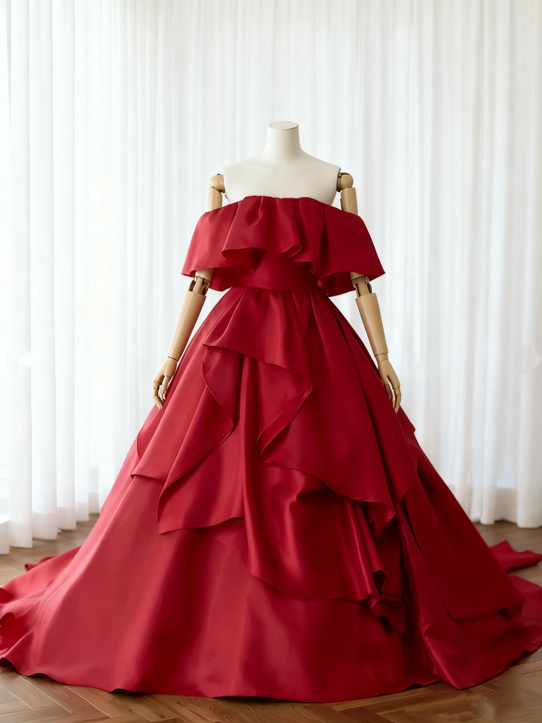 カラードレス ボルドー色 ボルドー色 アシンメトリードレス 結婚式 アンティークなドレス フリルドレス
