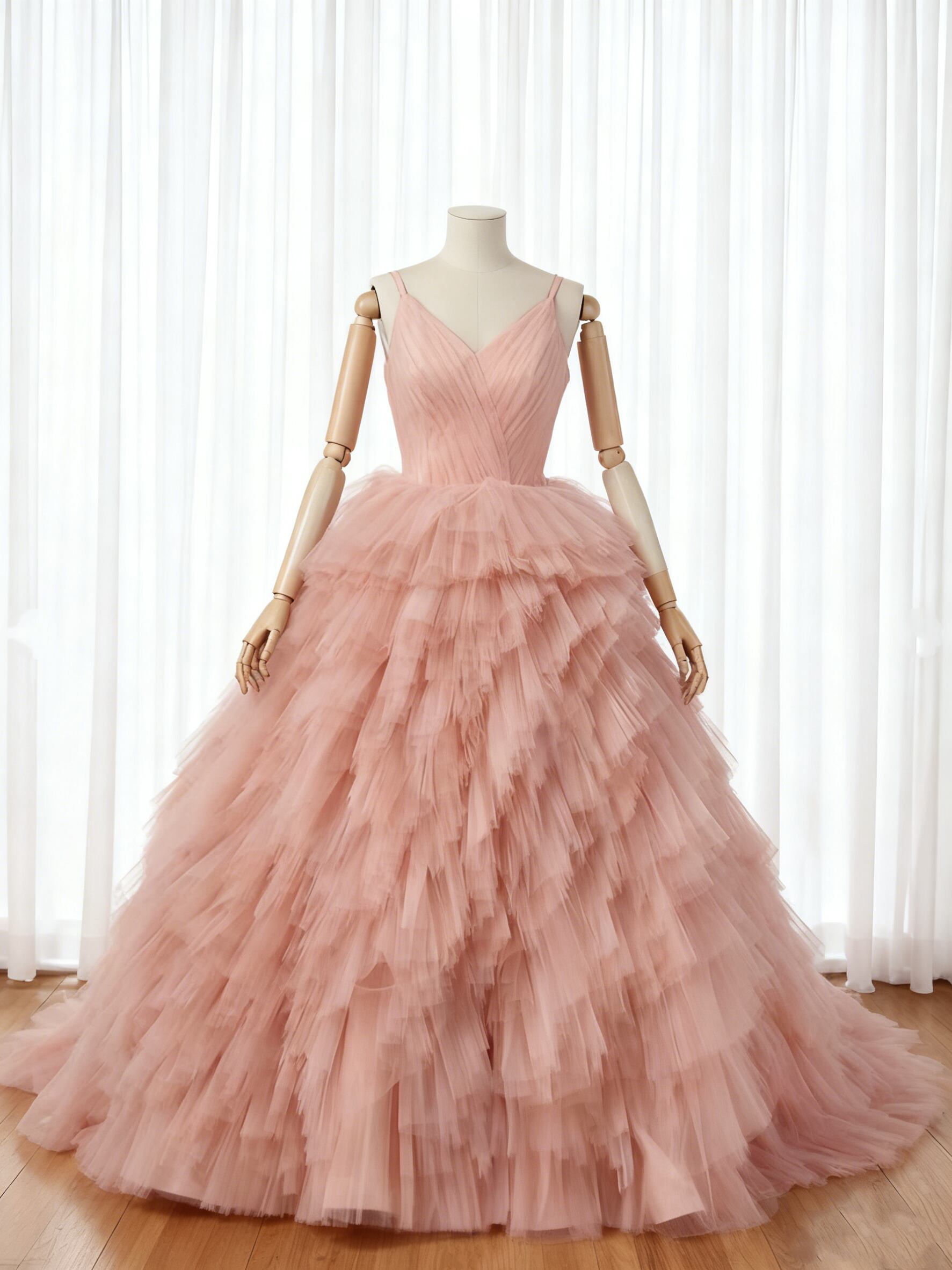カラードレス コーラルピンク キャミソール もこもこドレス 結婚式 プリンセスライン ふわふわドレス
