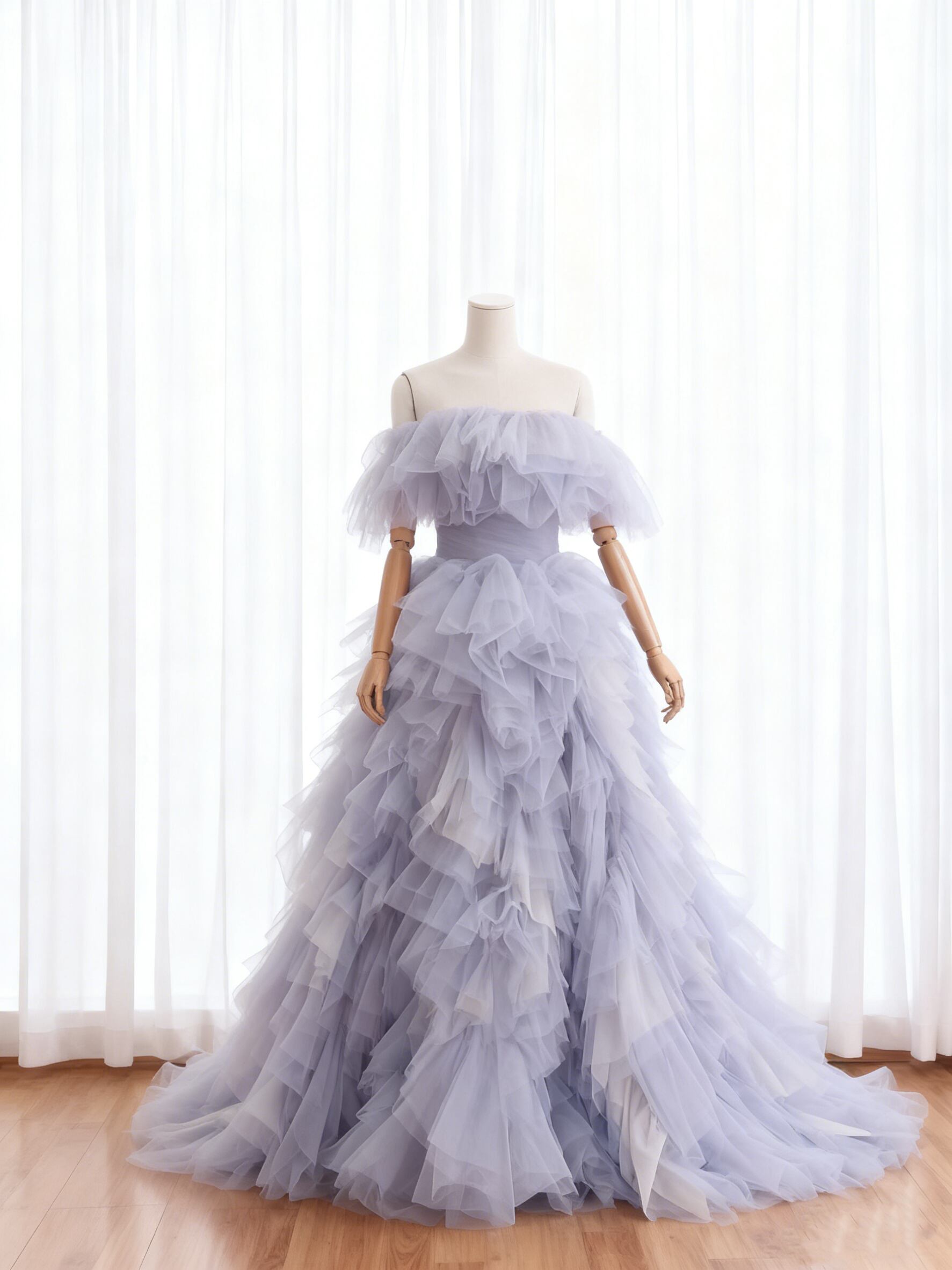 カラードレス パープル オフショルダー もこもこドレス プリンセスライン 花嫁/ウェディングドレス